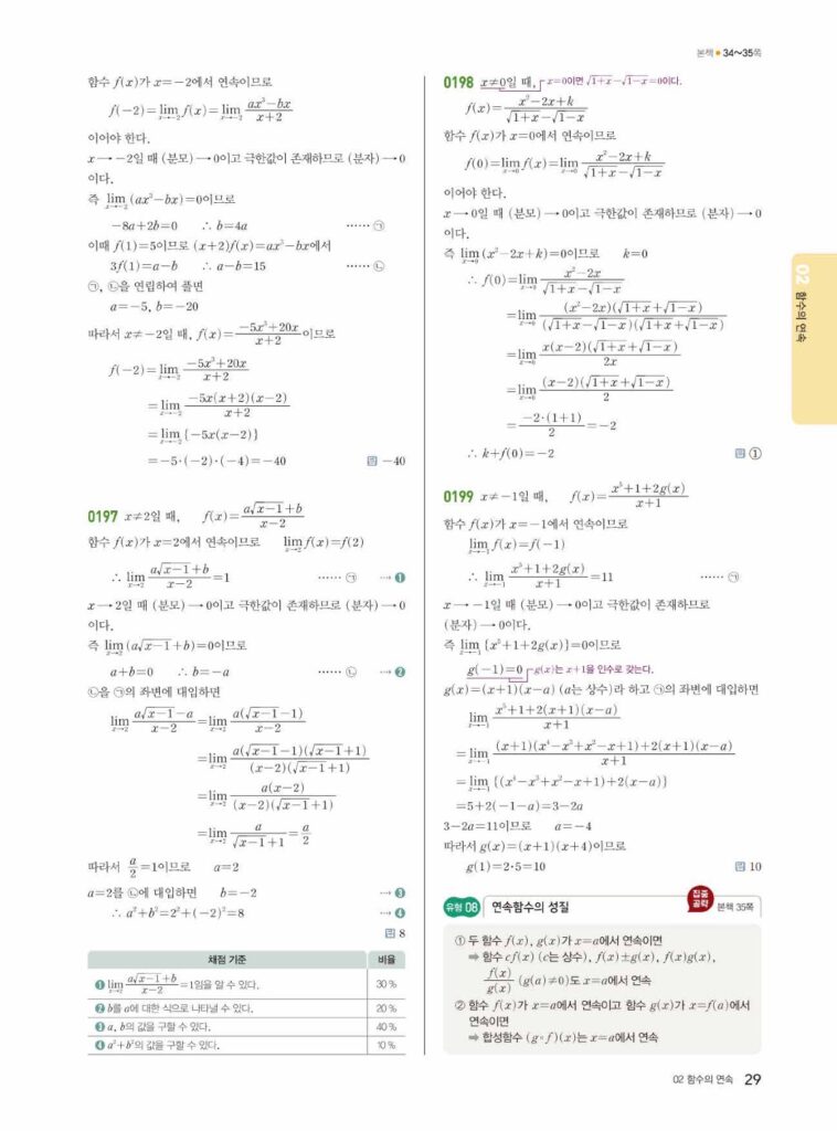 안녕하세요. **쎈 미적분1** **1-2 함수의 연속** 정답 및 해설입니다.