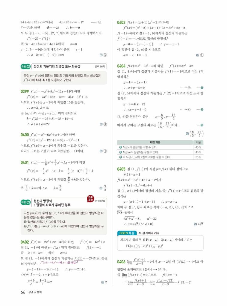 쎈 미적분1 1-4 도함수의 활용 (1) 답지