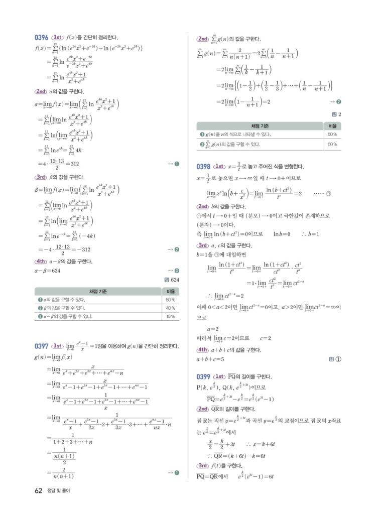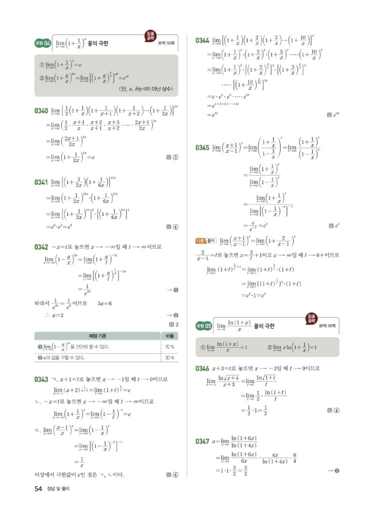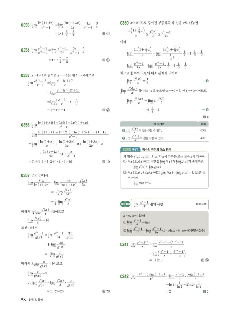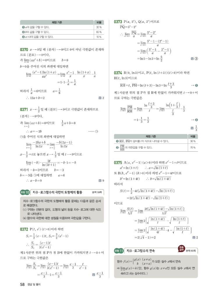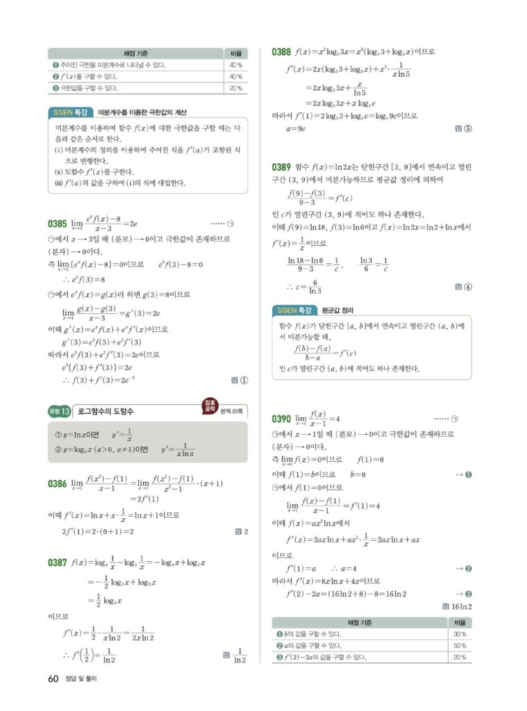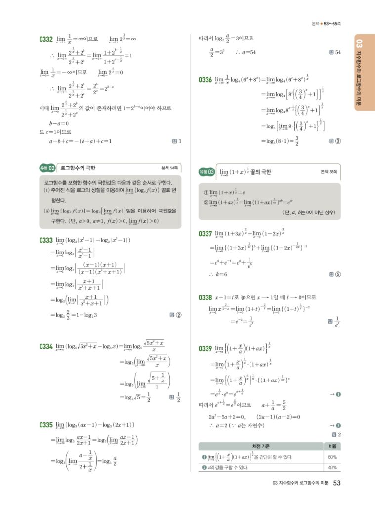 안녕하세요. **쎈 미적분2** **03단원 지수함수와 로그함수의 미분** 정답 및 해설입니다.