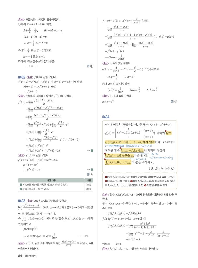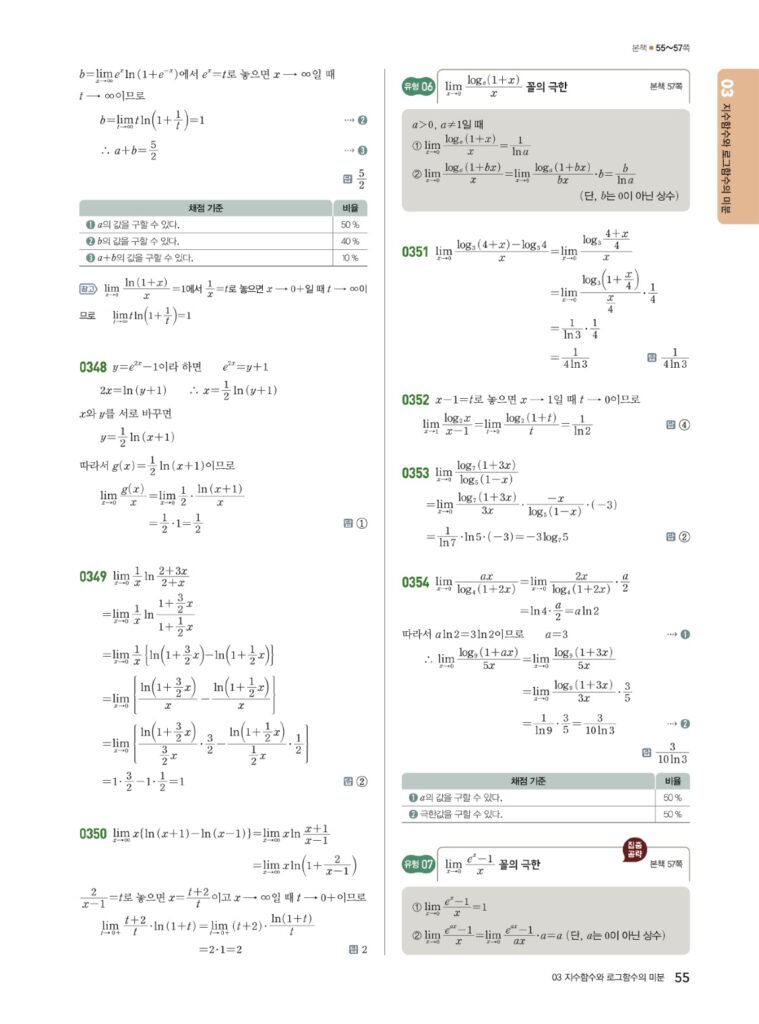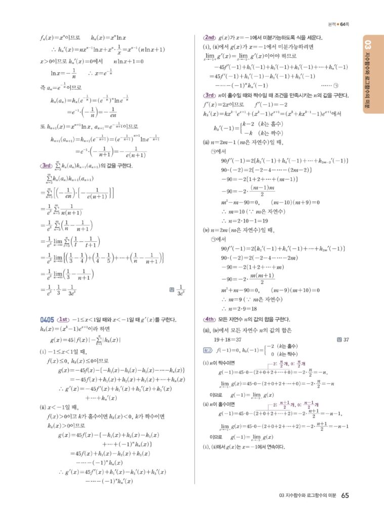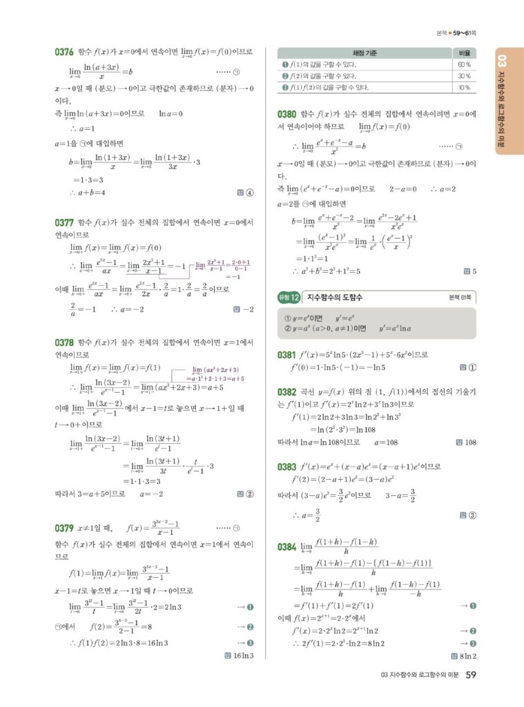 쎈 미적분2 03. 지수함수와 로그함수의 미분 답지