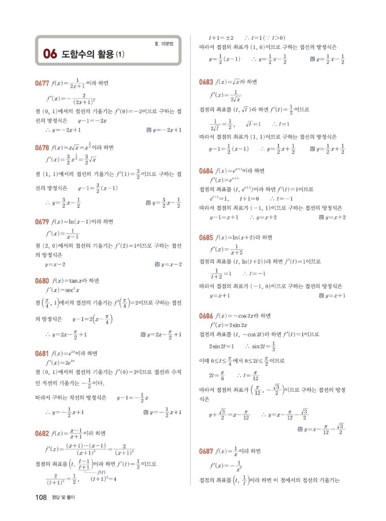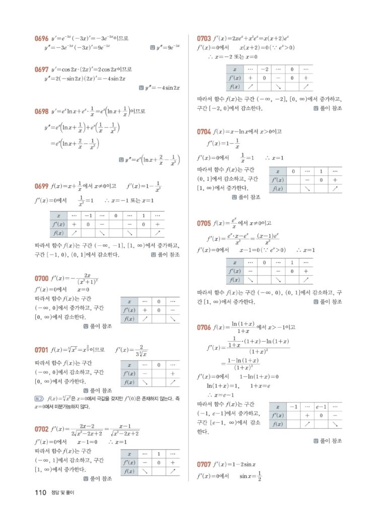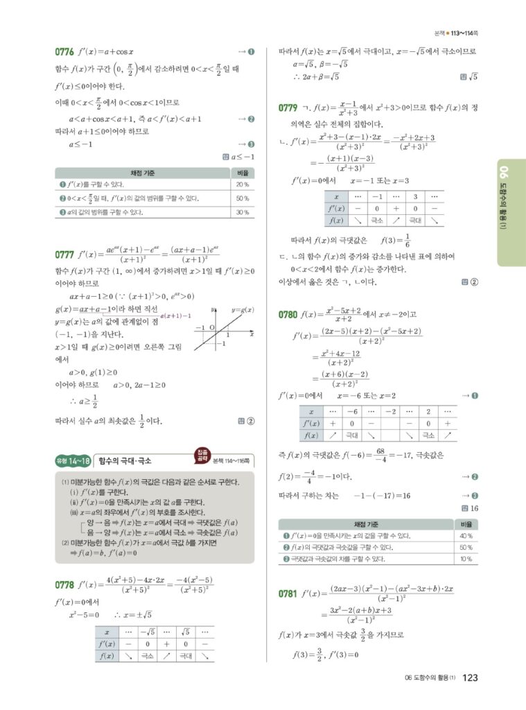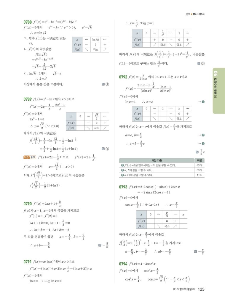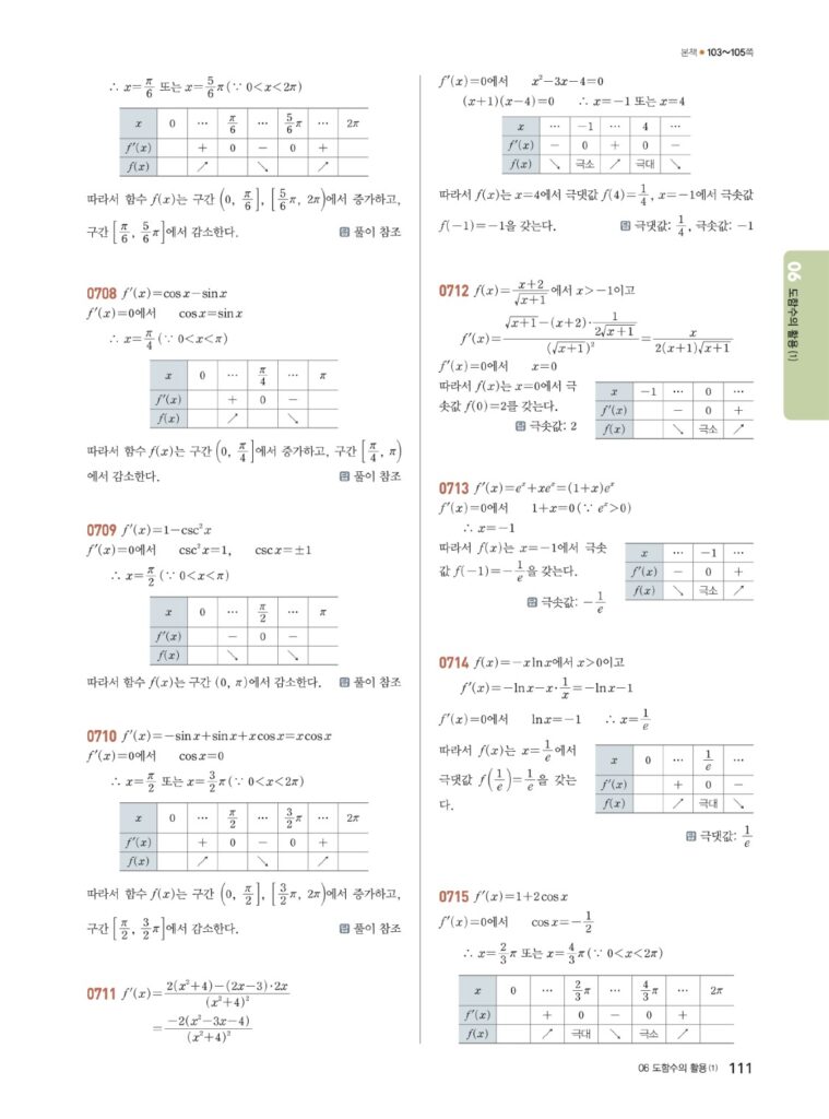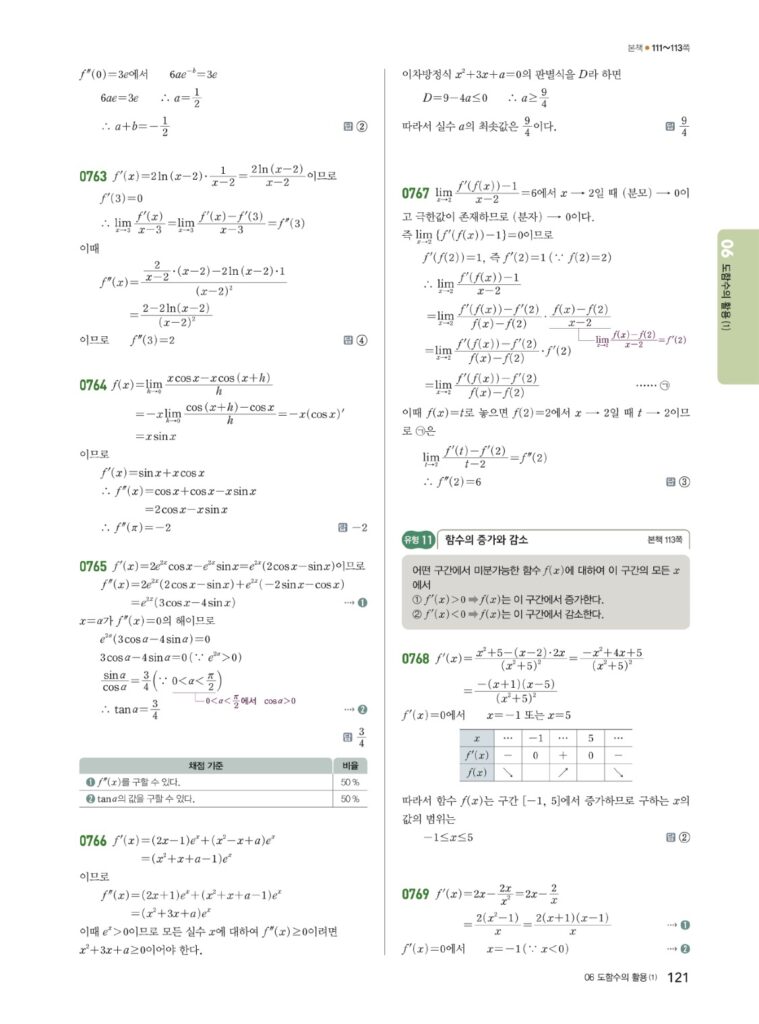 안녕하세요. **쎈 미적분2** **06단원 도함수의 활용 (1)** 정답 및 해설입니다.