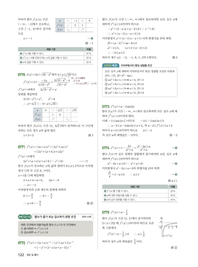 📖 도함수의 활용 (1) 정답 및 해설