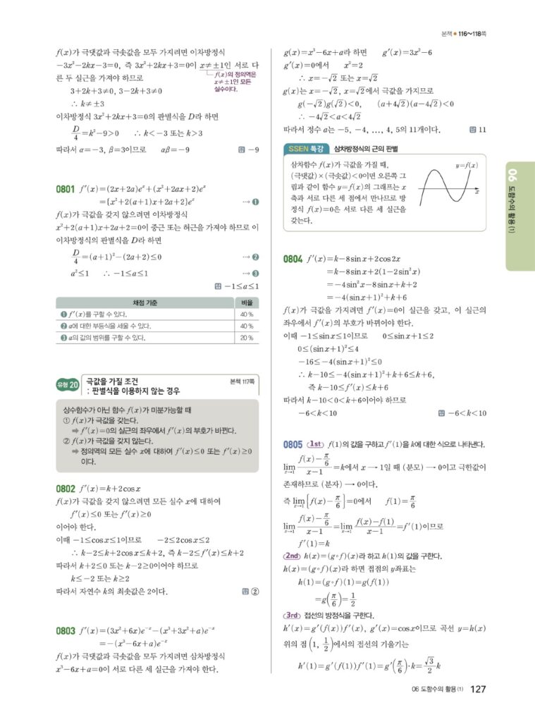 쎈 미적분2 06. 도함수의 활용 (1) 답지