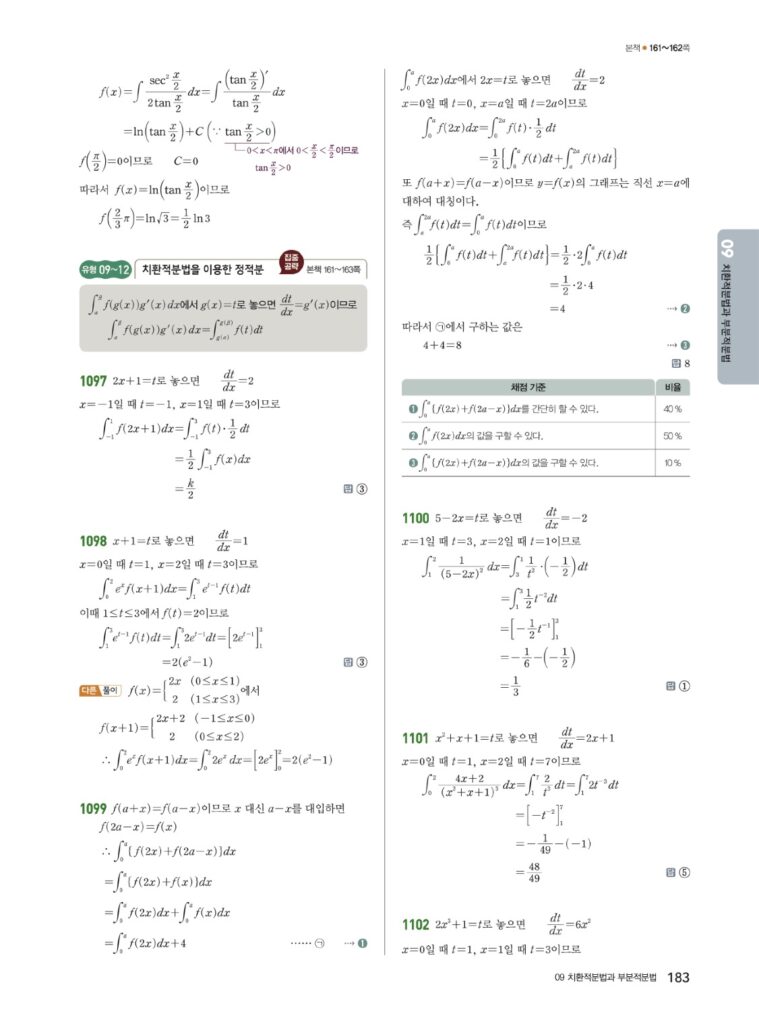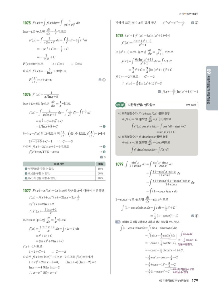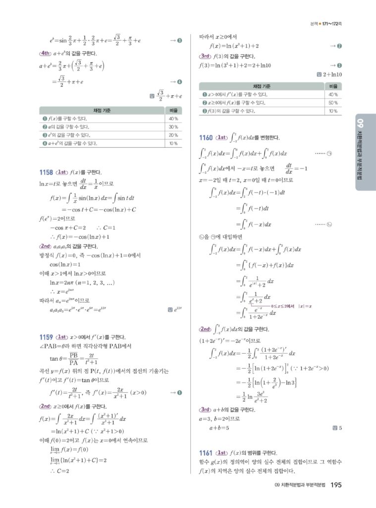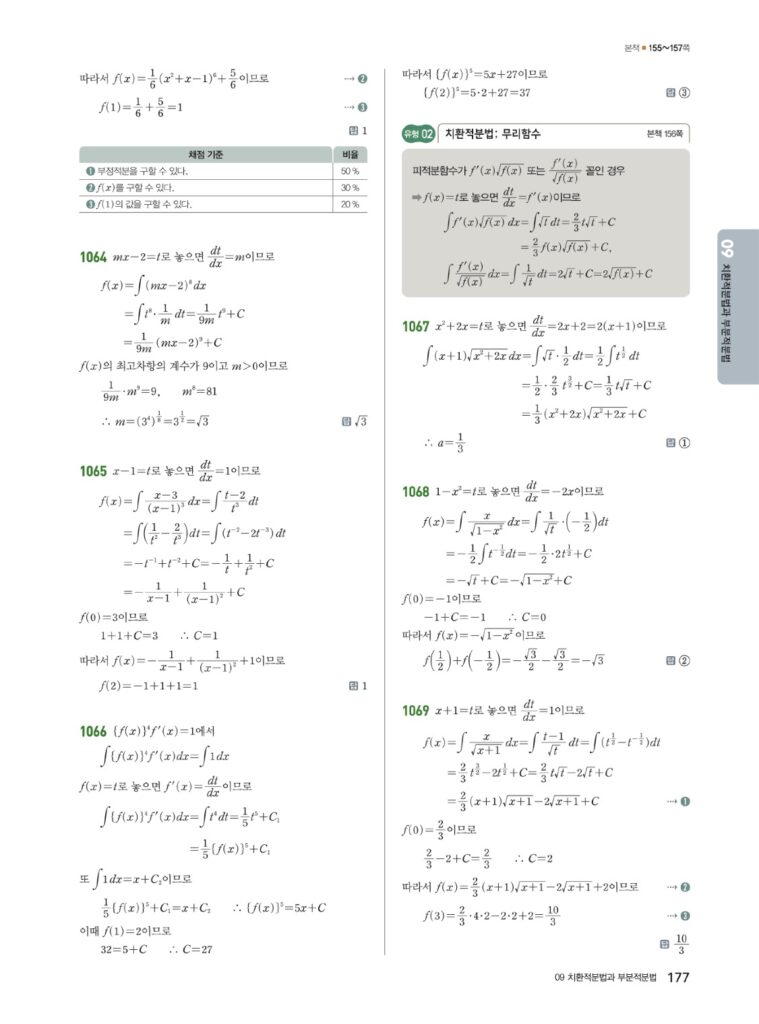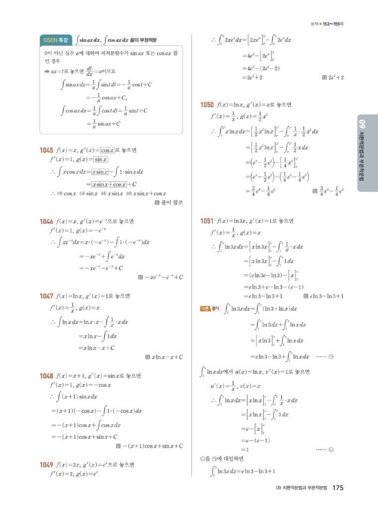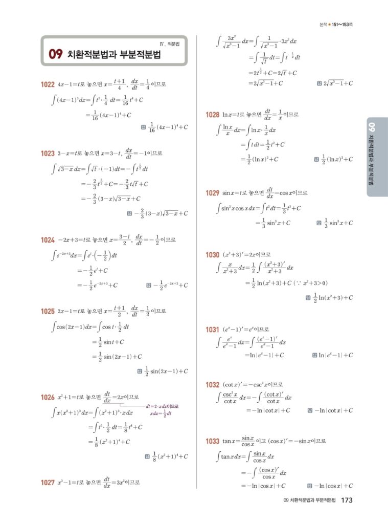 안녕하세요. **쎈 미적분2** **09단원 치환적분법과 부분적분법** 정답 및 해설입니다.
