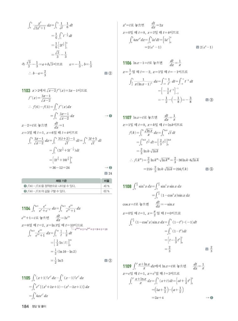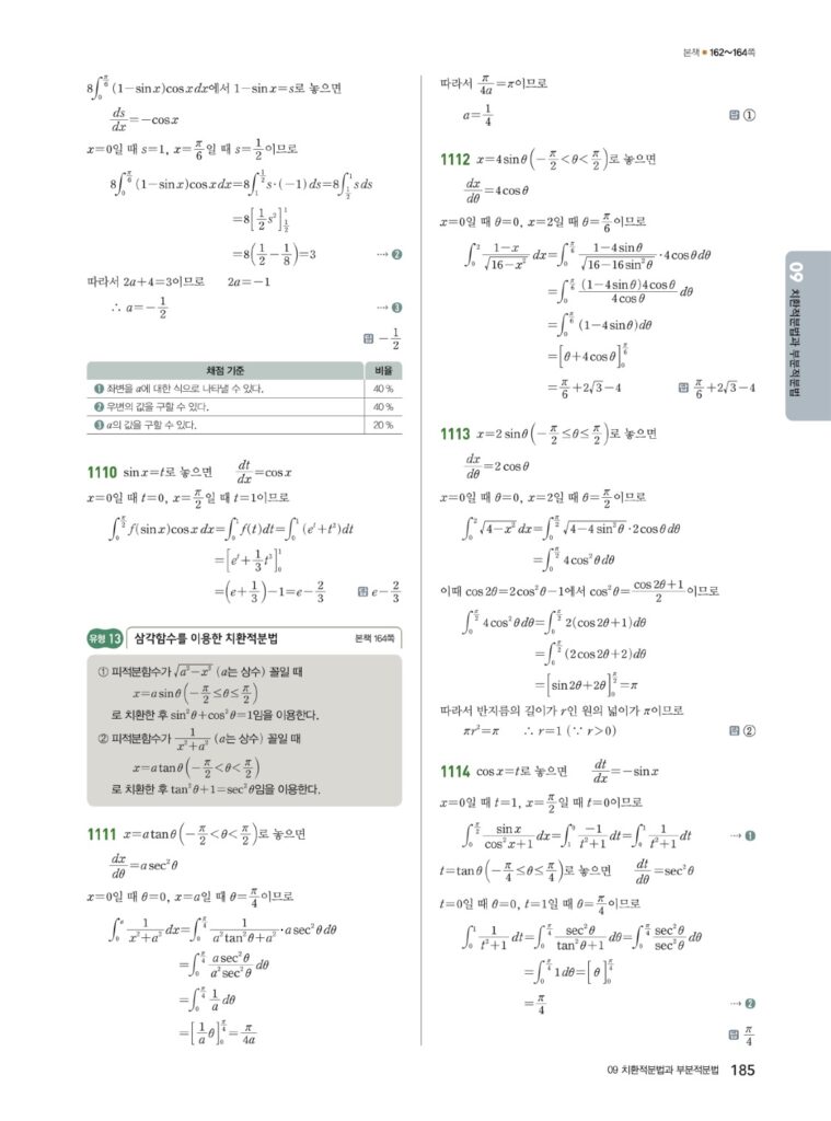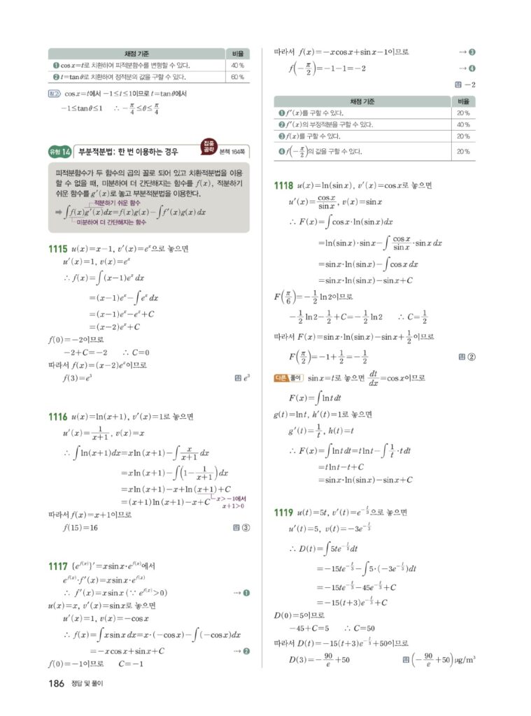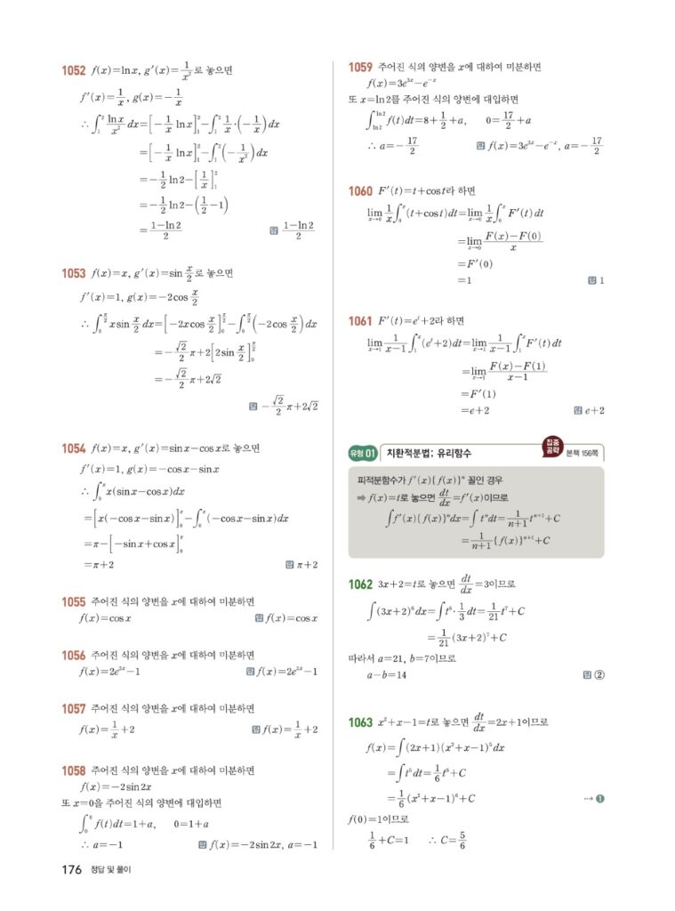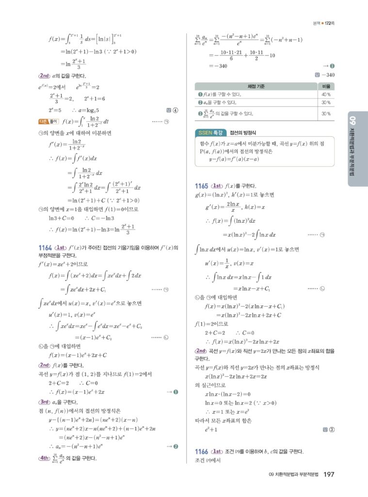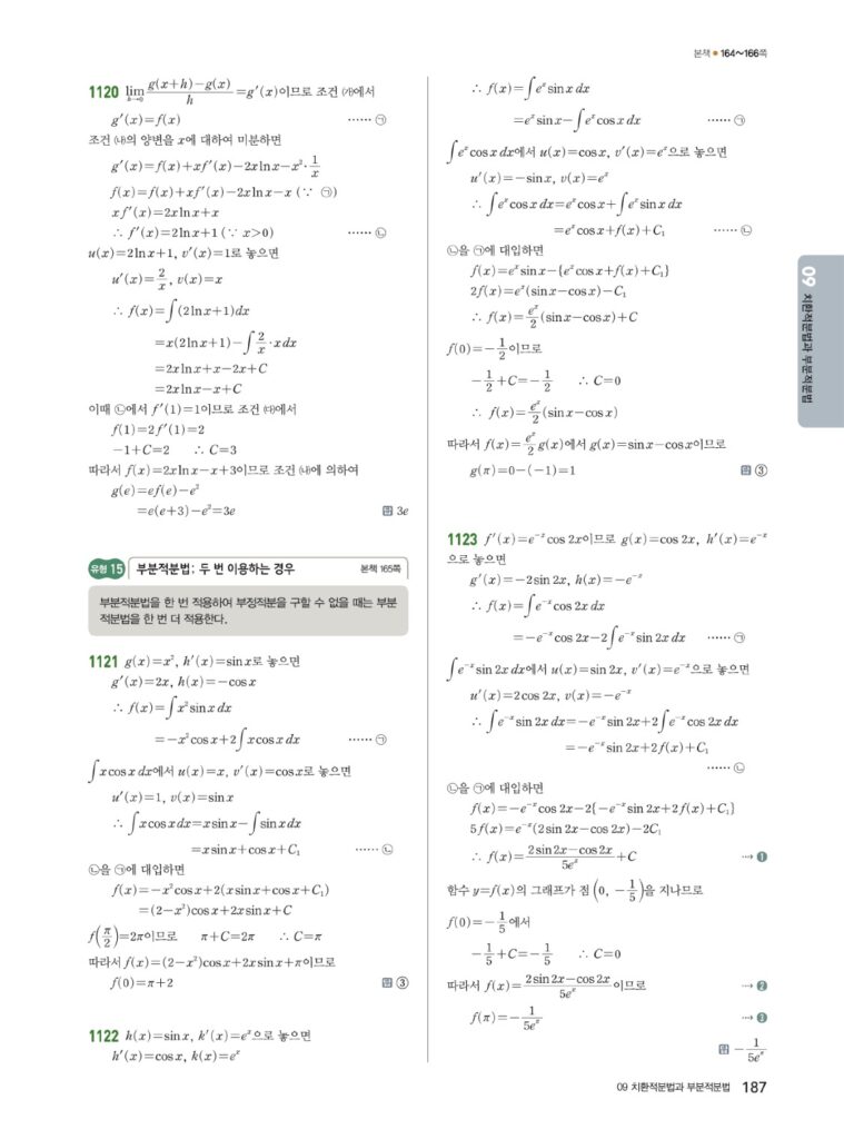 안녕하세요. **쎈 미적분2** **09단원 치환적분법과 부분적분법** 정답 및 해설입니다.