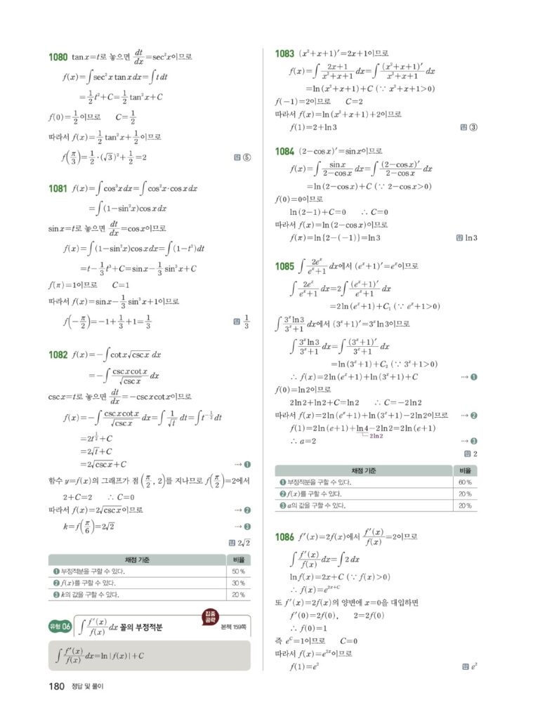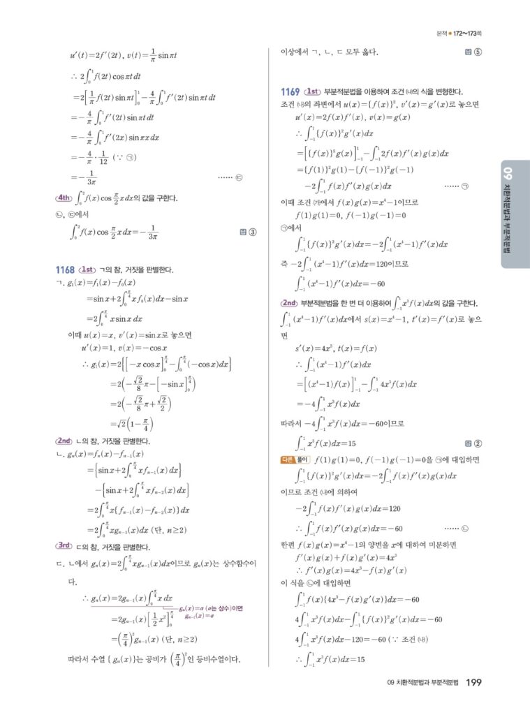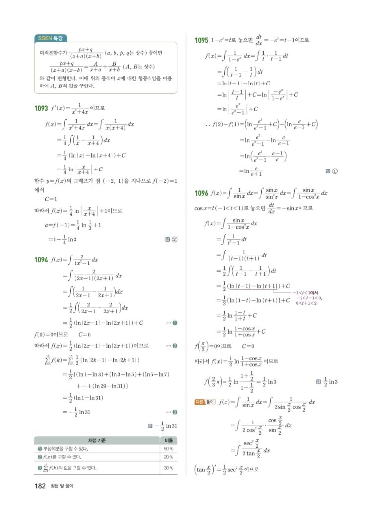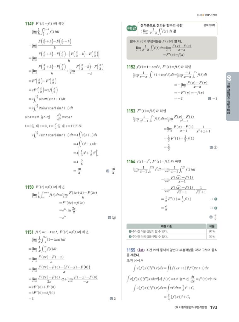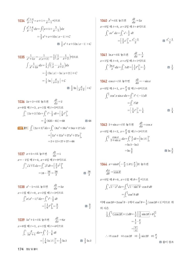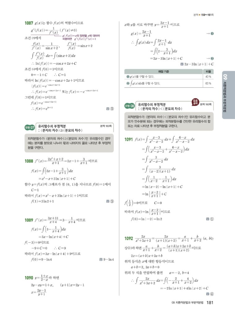 안녕하세요. **쎈 미적분2** **09단원 치환적분법과 부분적분법** 정답 및 해설입니다.