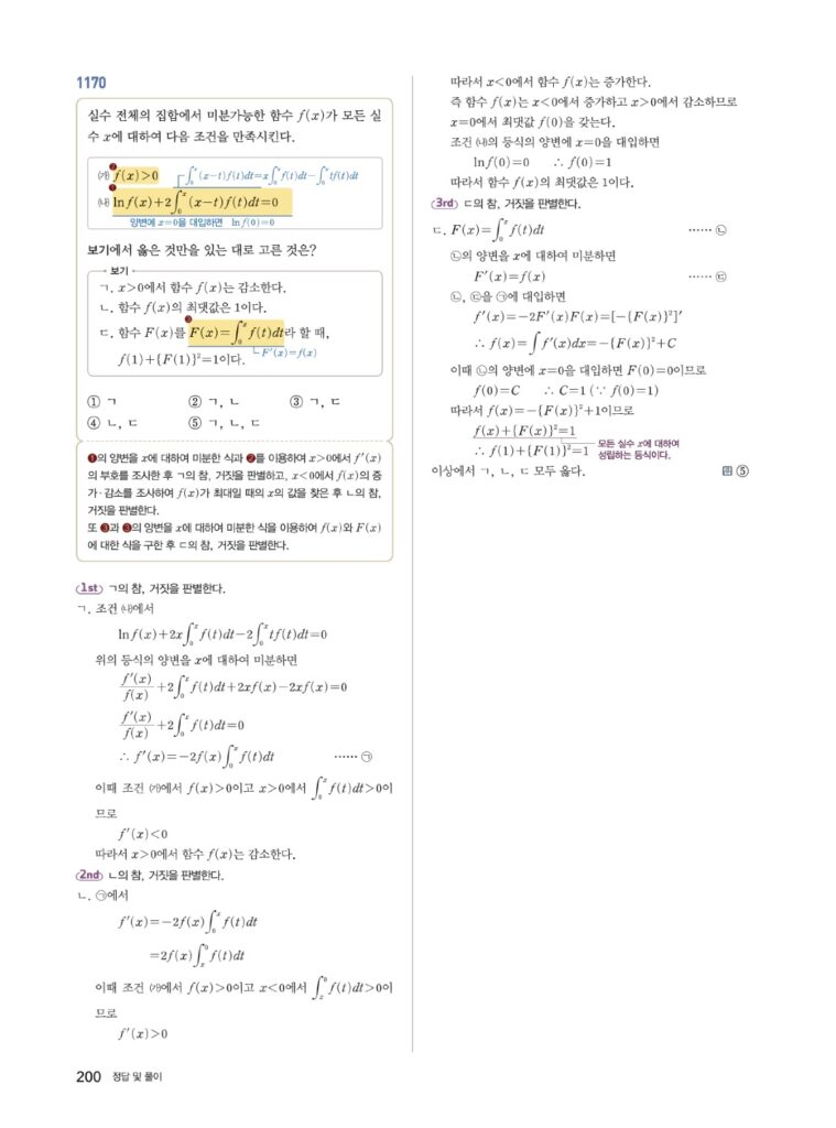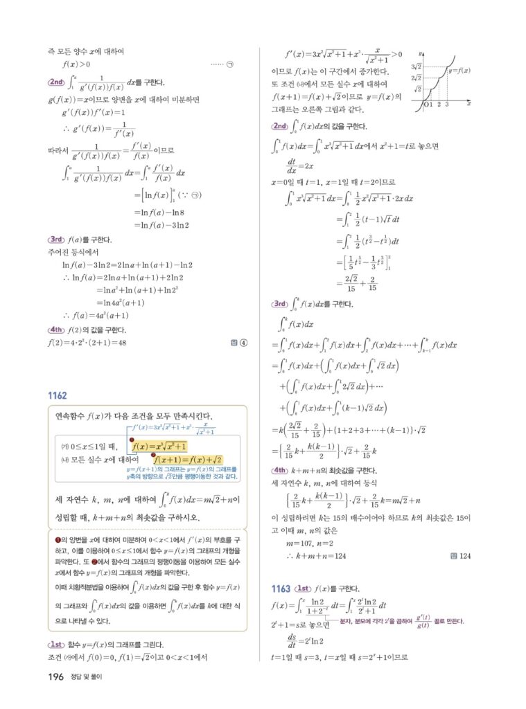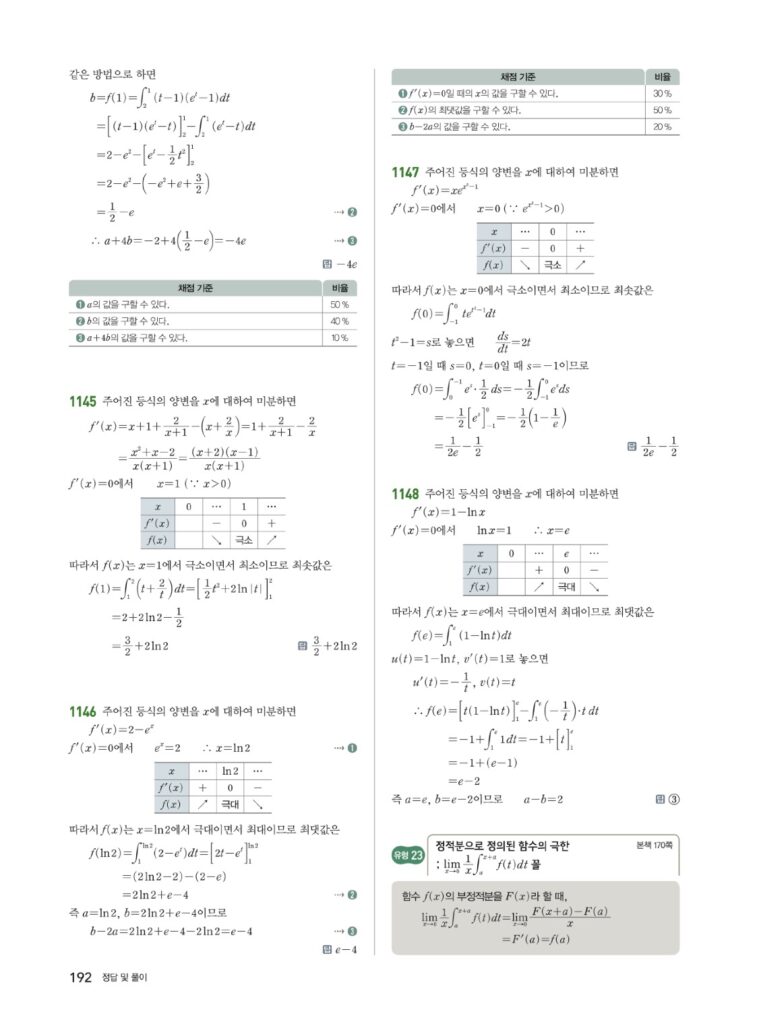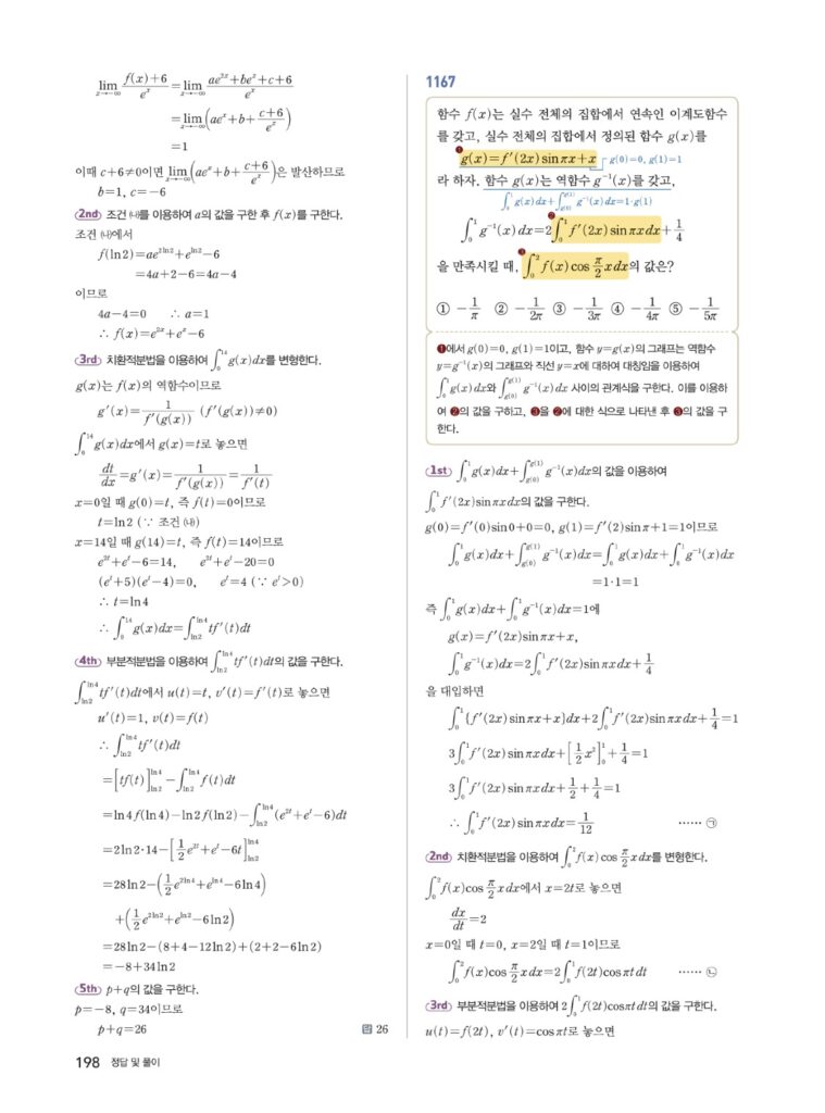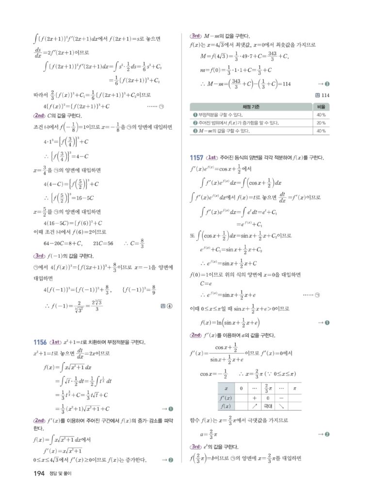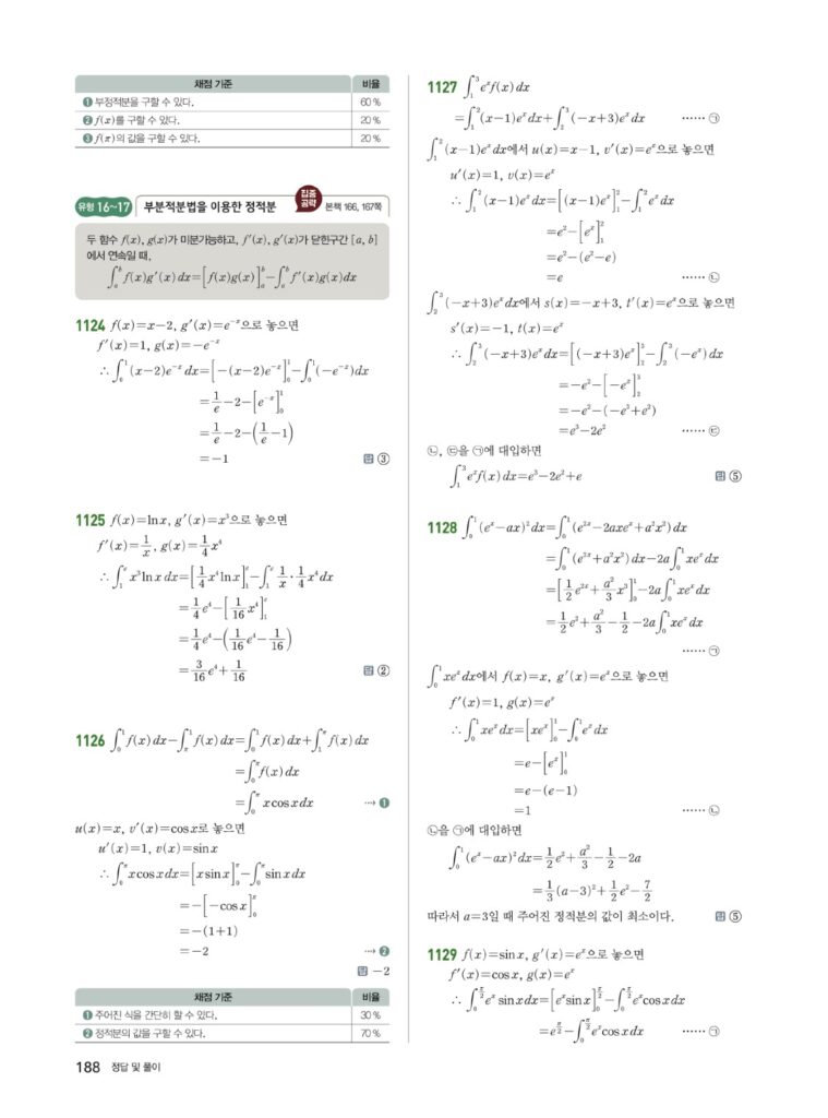 안녕하세요. **쎈 미적분2** **09단원 치환적분법과 부분적분법** 정답 및 해설입니다.