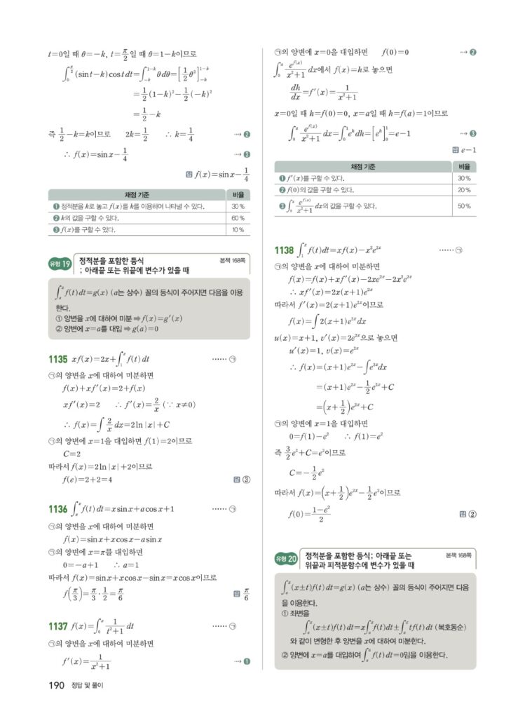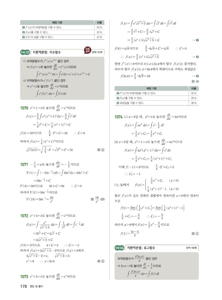 쎈 미적분2 09. 치환적분법과 부분적분법 답지