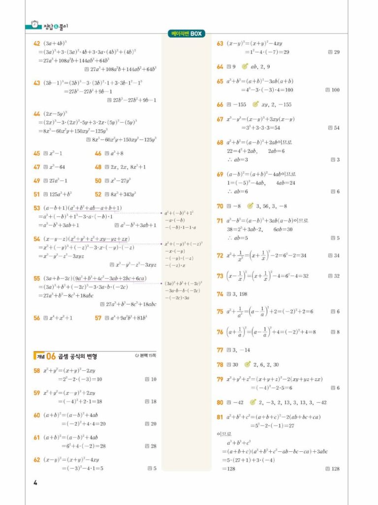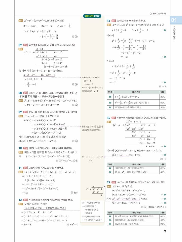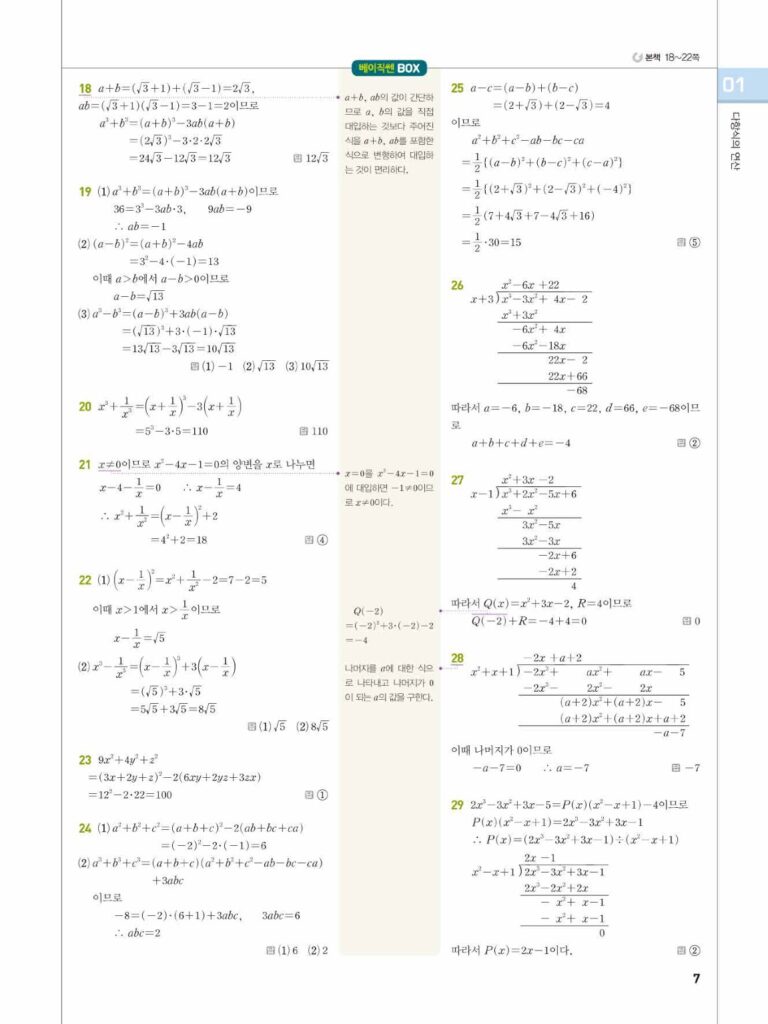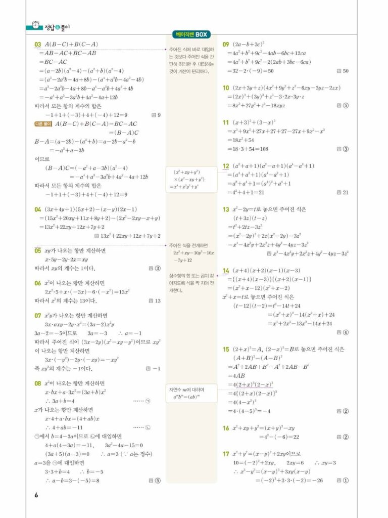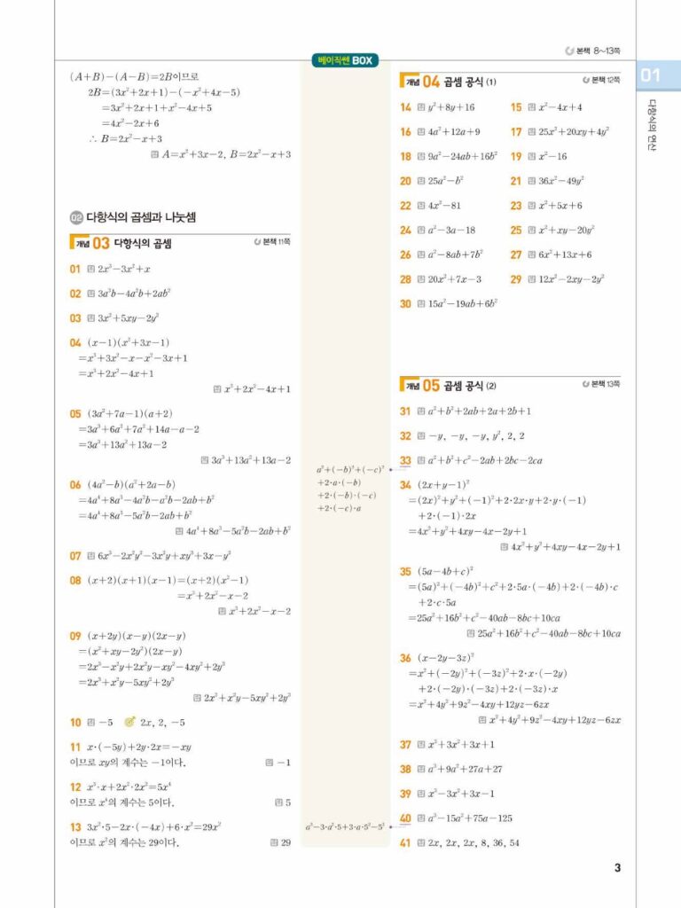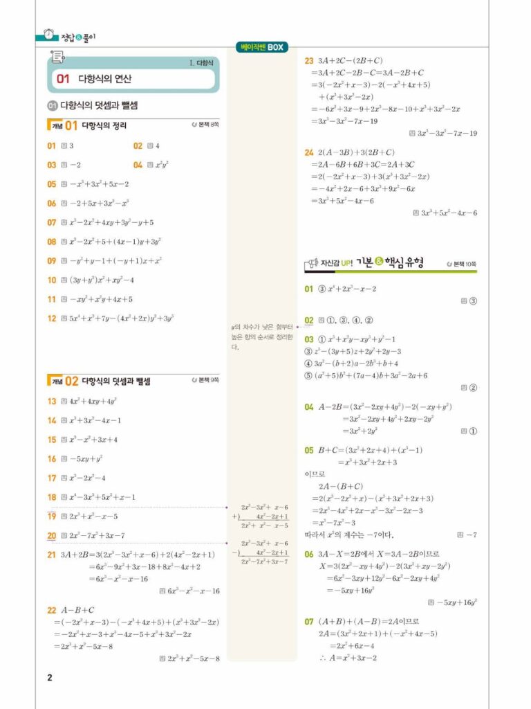 베이직쎈공수1답지01다항식의연산