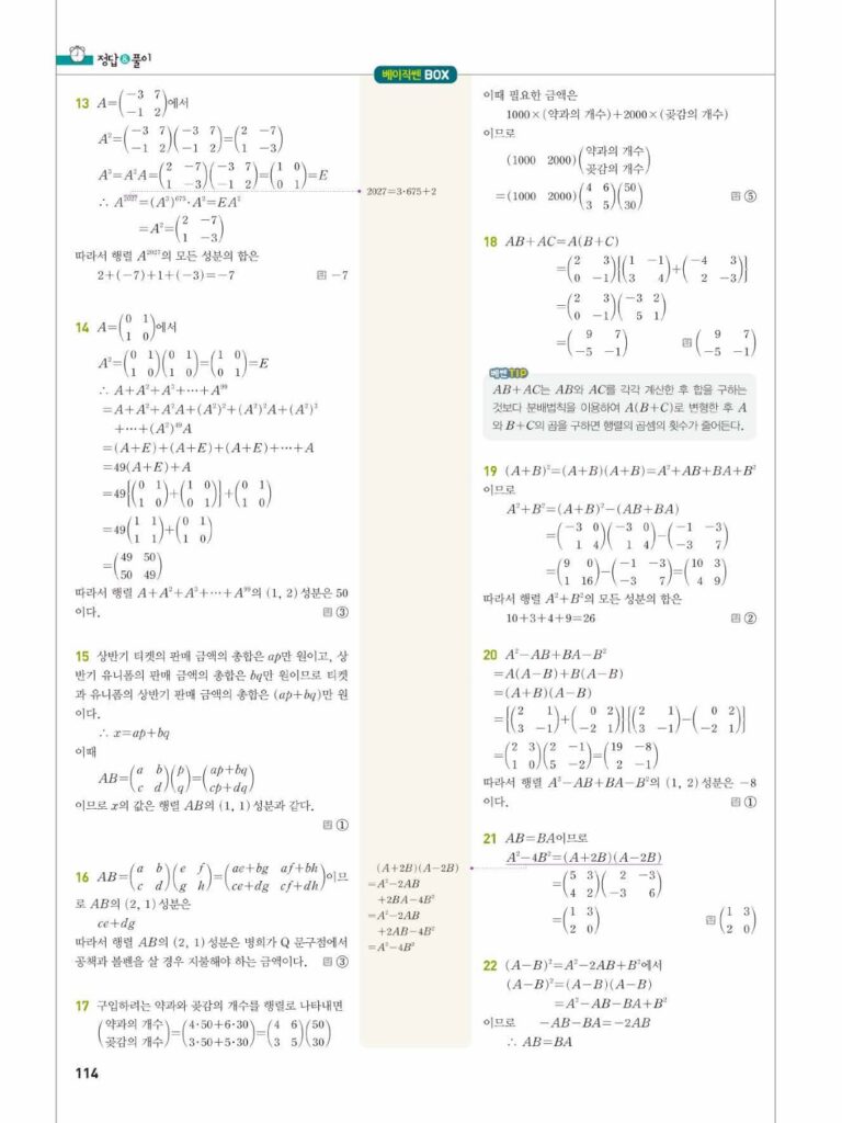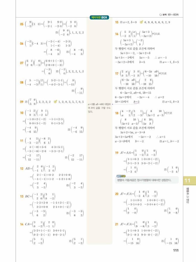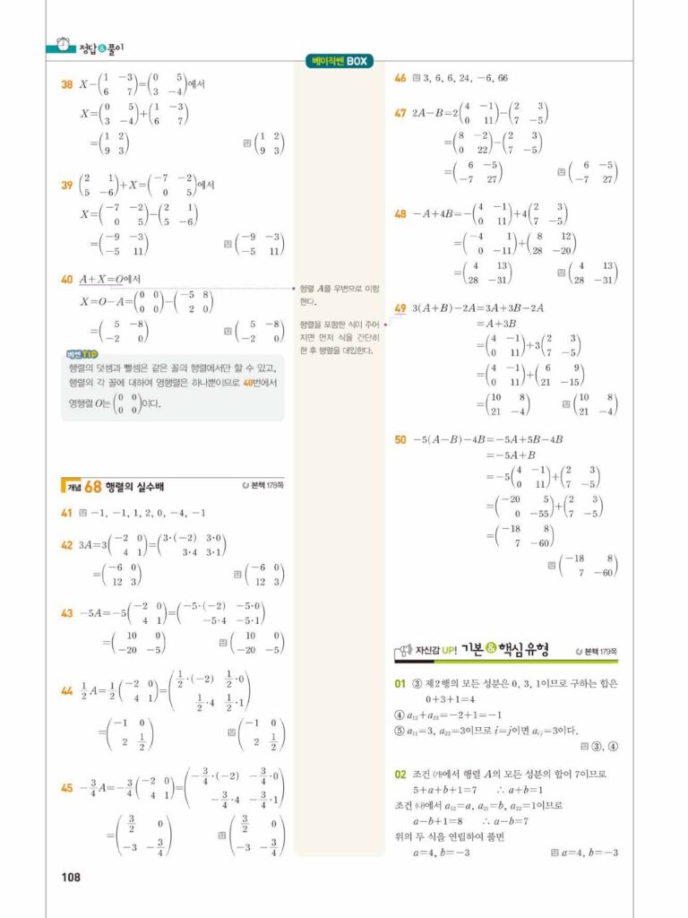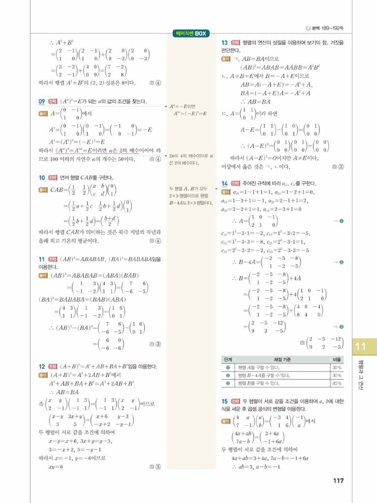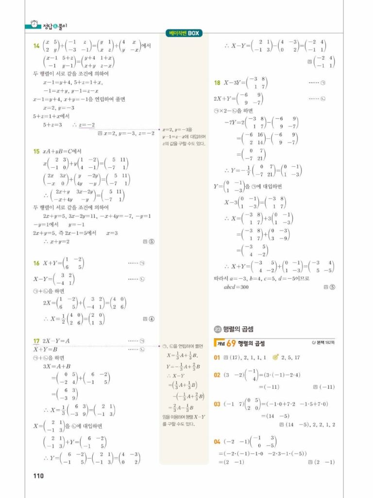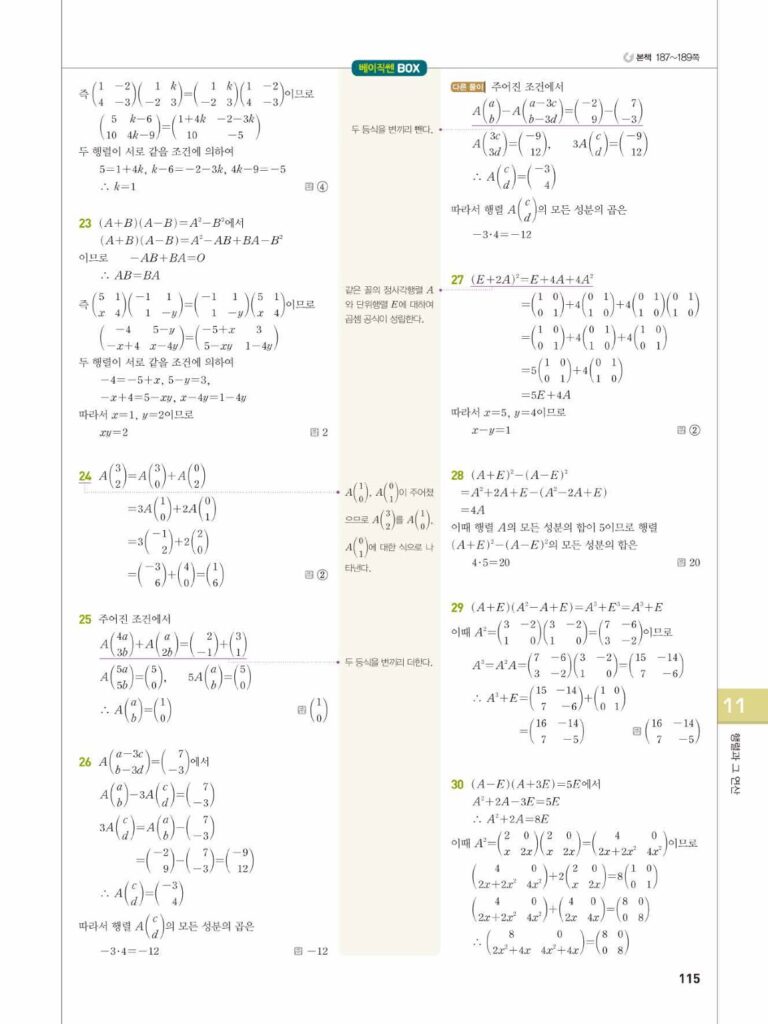 베이직쎈 공통수학1 11. 행렬과 그 연산 답지