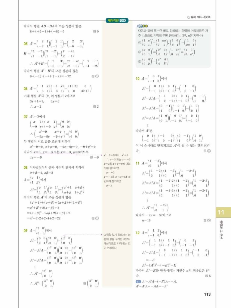 📂 베이직쎈 공통수학1 답지 전체 모음 & 행렬 개념 강의 (클릭)