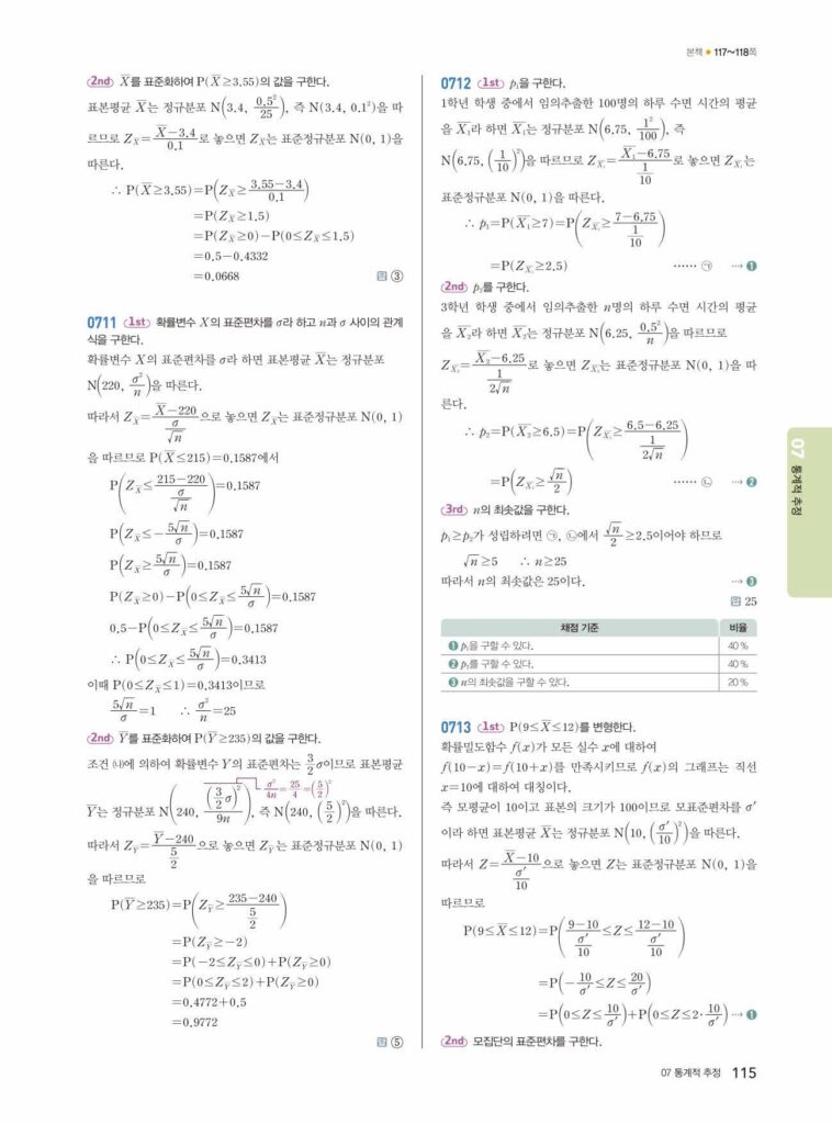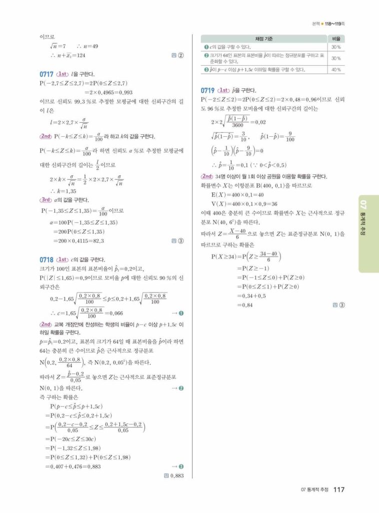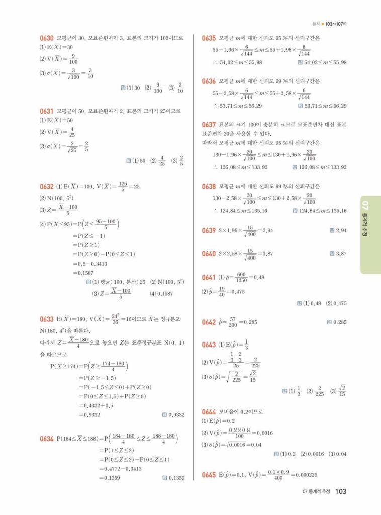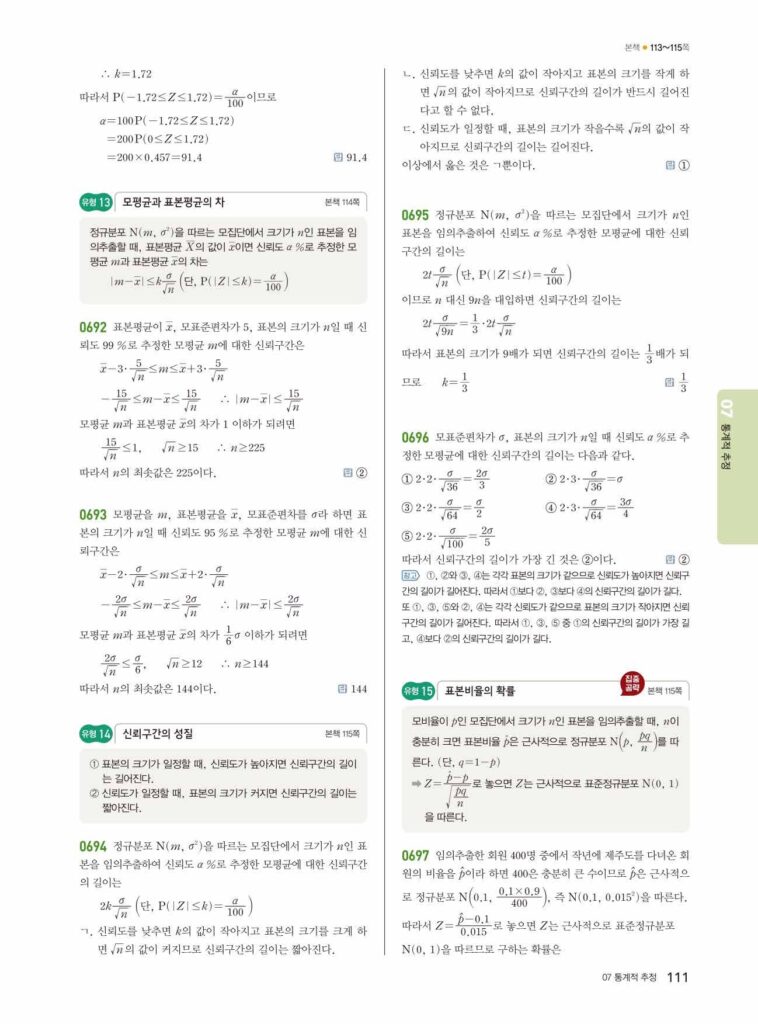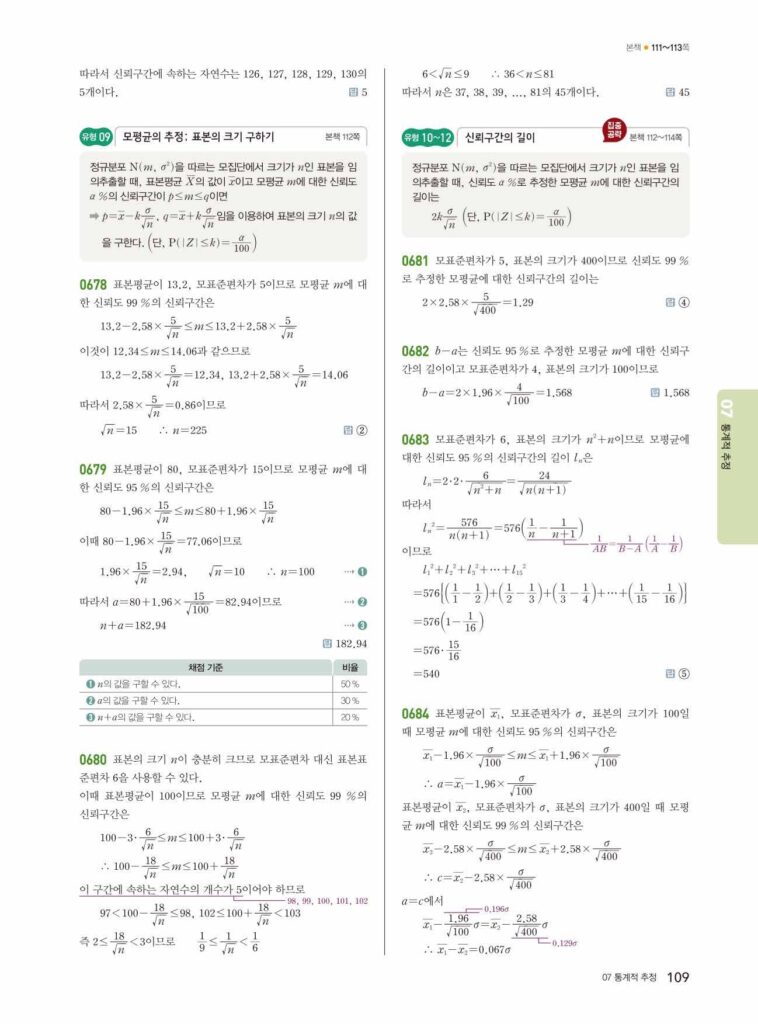 수고하셨습니다! **쎈 확률과 통계** **07단원 통계적 추정** 정답 및 해설입니다.