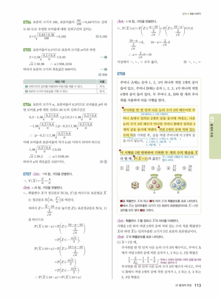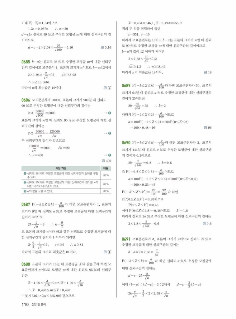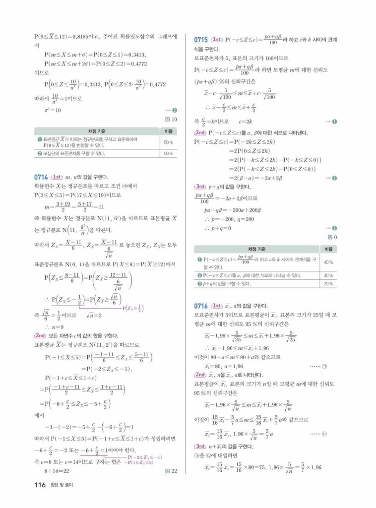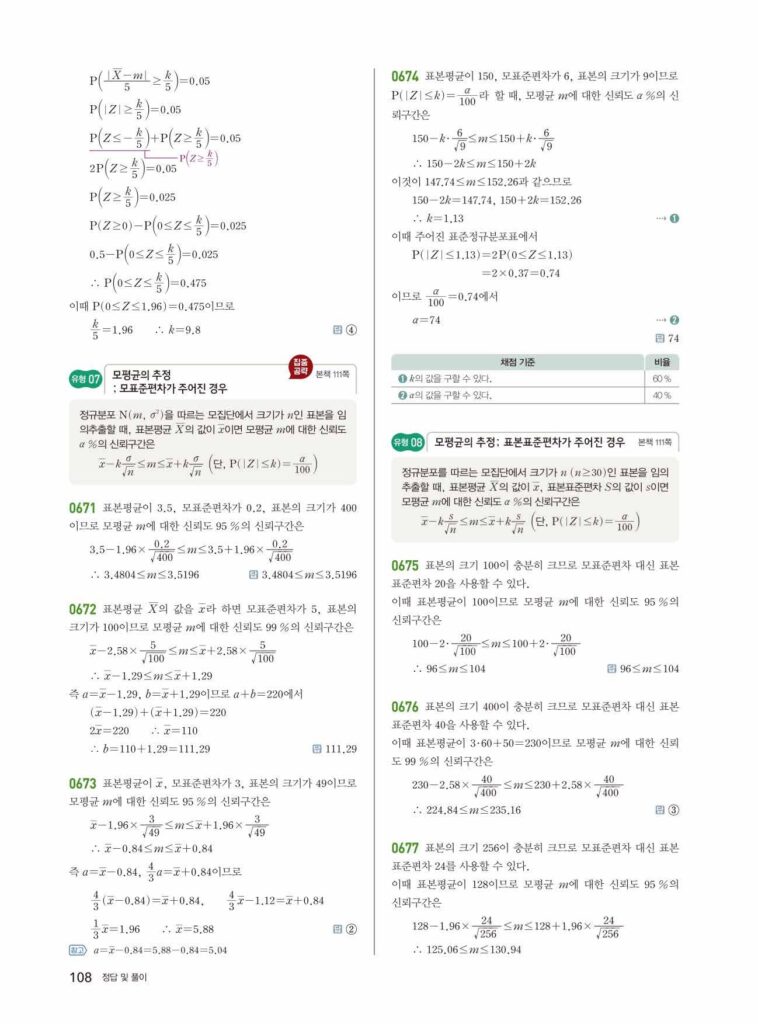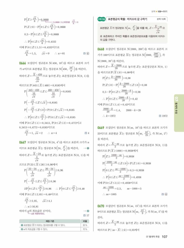 수고하셨습니다! **쎈 확률과 통계** **07단원 통계적 추정** 정답 및 해설입니다.