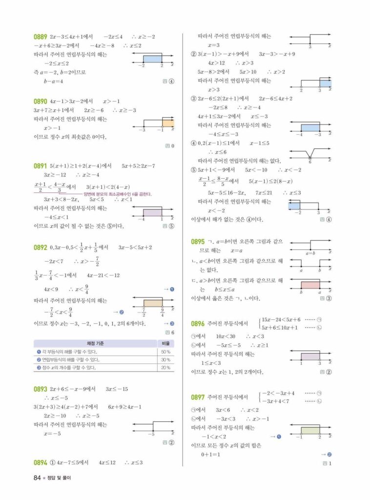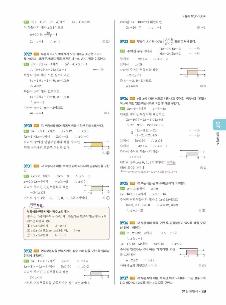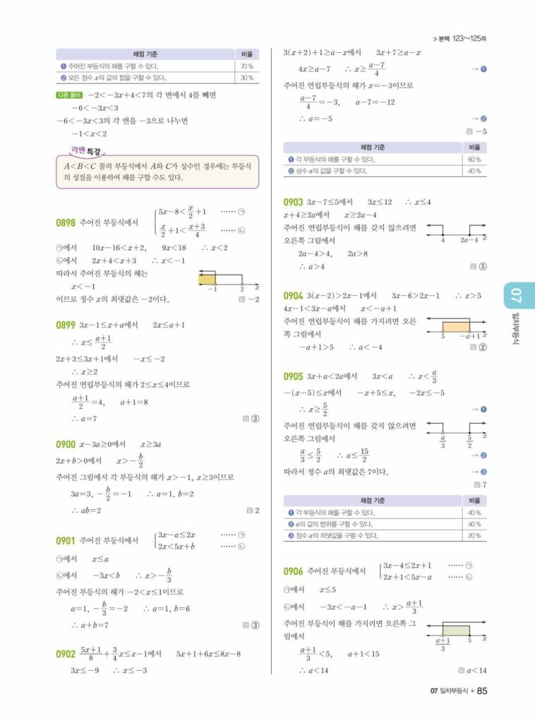 안녕하세요. **라이트쎈 공통수학1** **07단원 일차부등식** 정답 및 해설입니다.