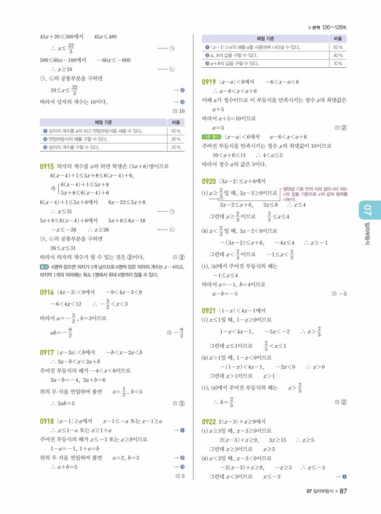 라이트쎈 공통수학1 07. 일차부등식 답지