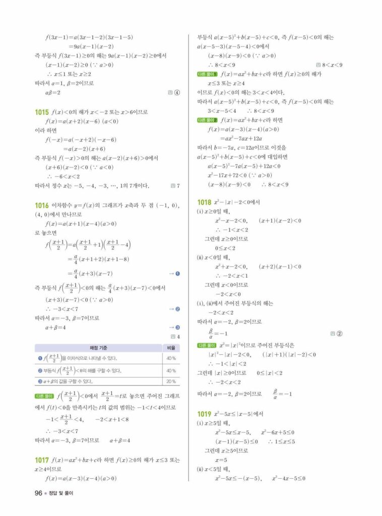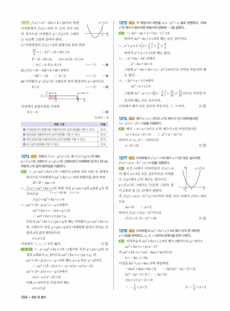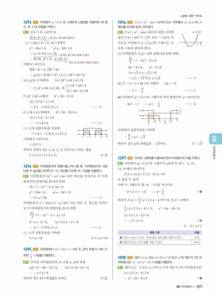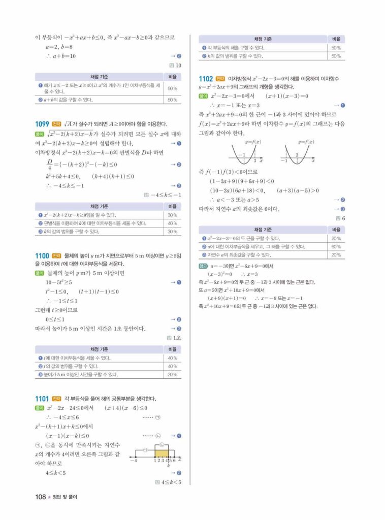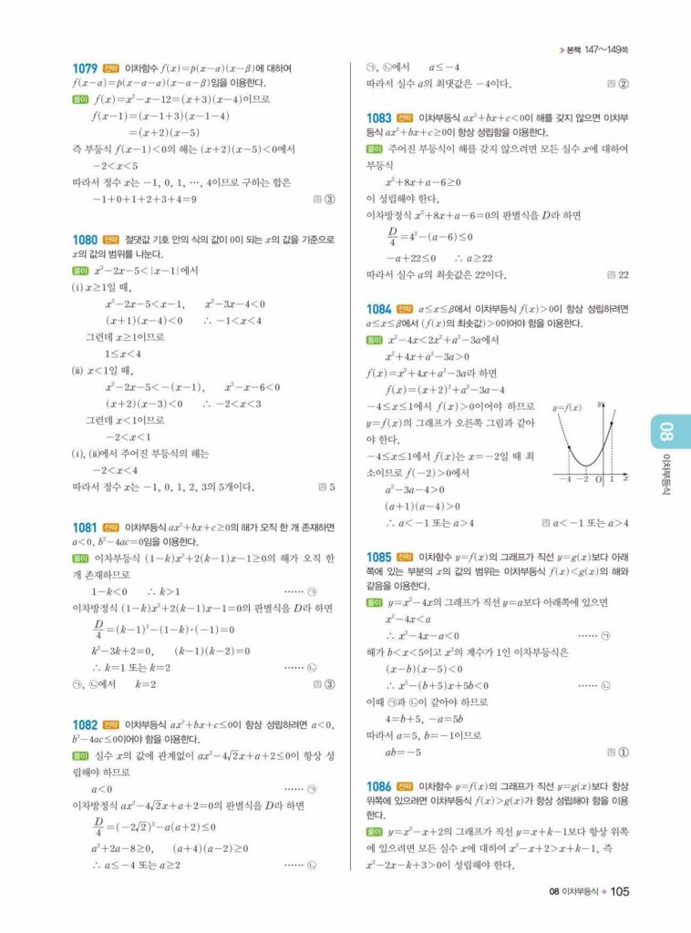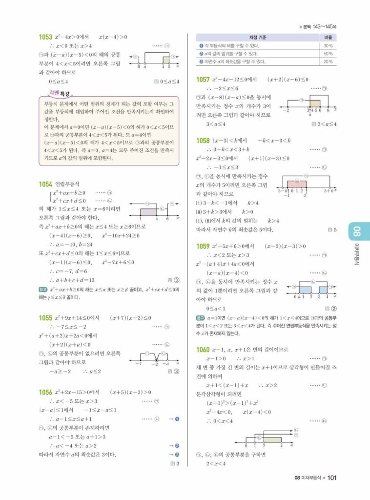 안녕하세요. **라이트쎈 공통수학1** **08단원 이차부등식** 정답 및 해설입니다.