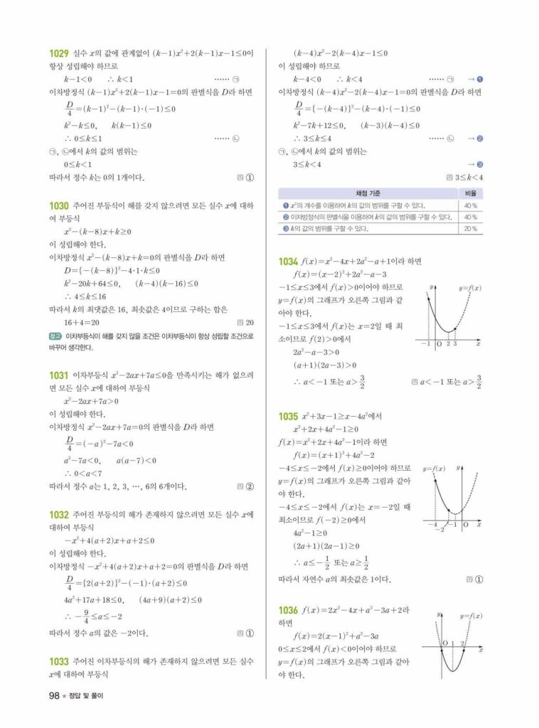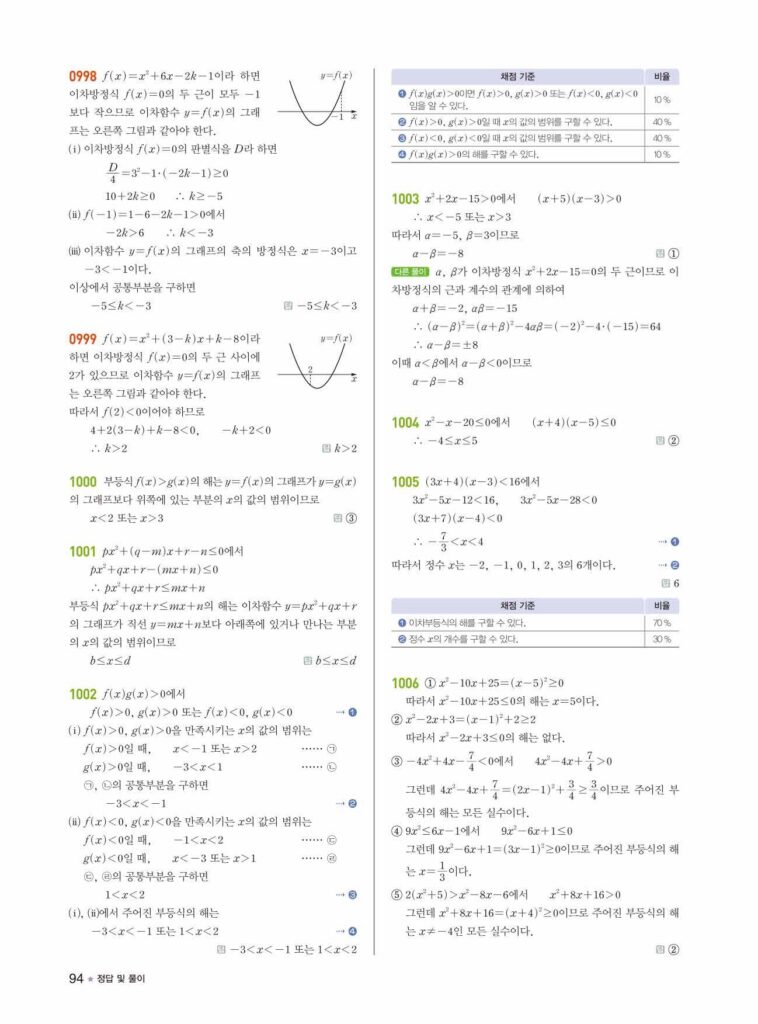 라이트쎈 공통수학1 08. 이차부등식 답지