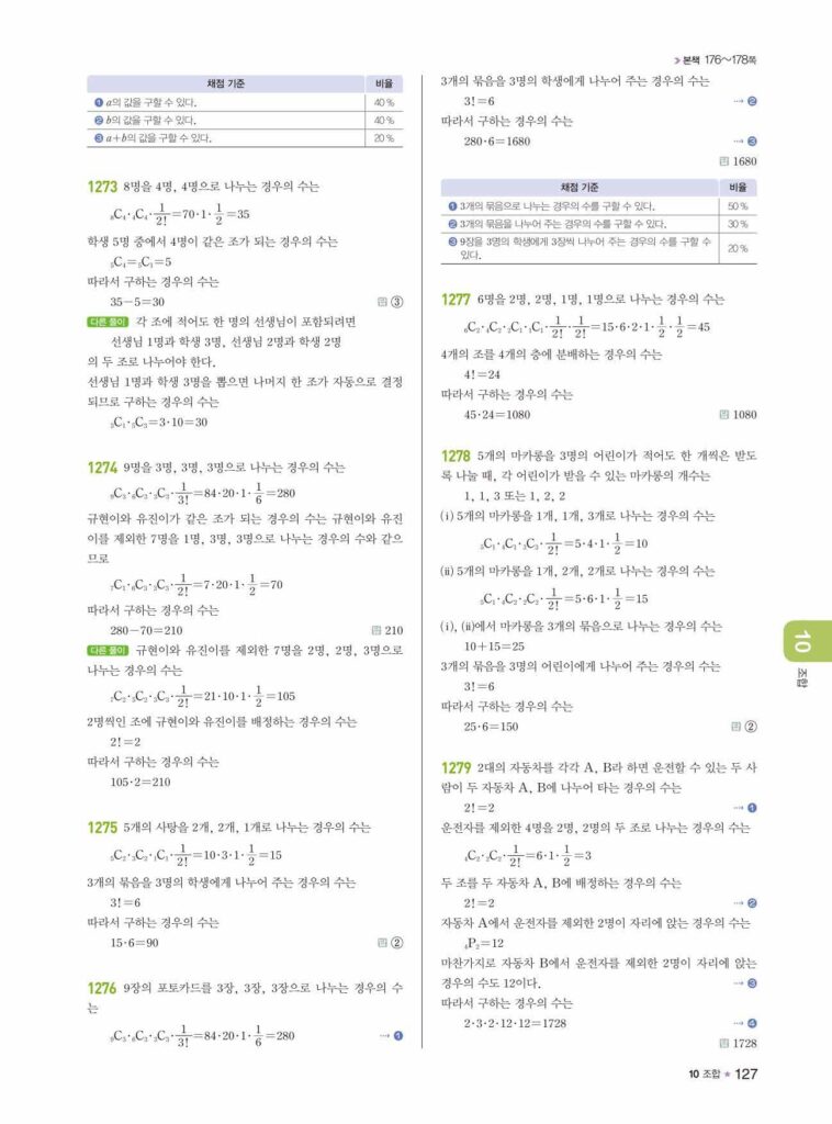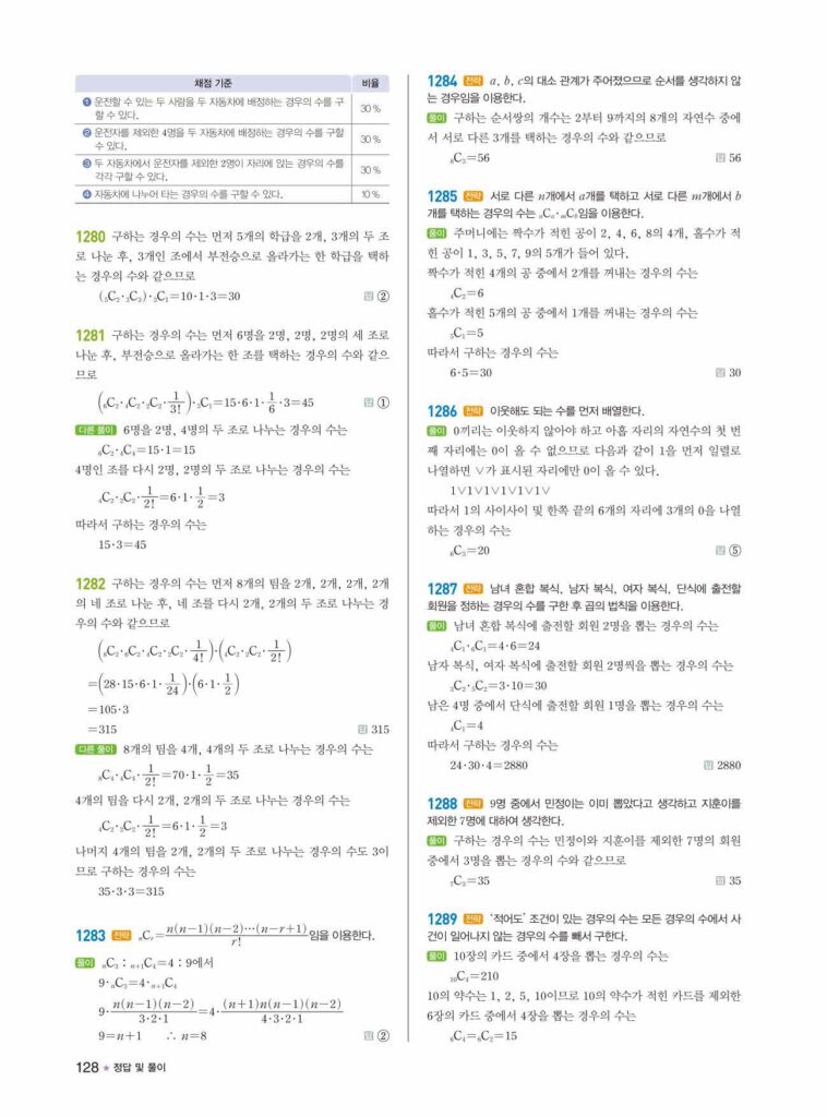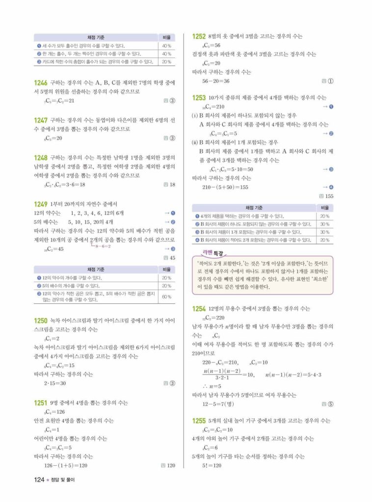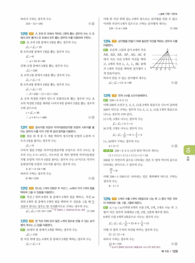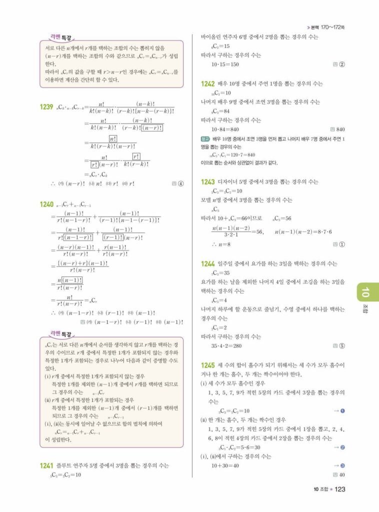 안녕하세요. **라이트쎈 공통수학1** **10단원 조합** 정답 및 해설입니다.