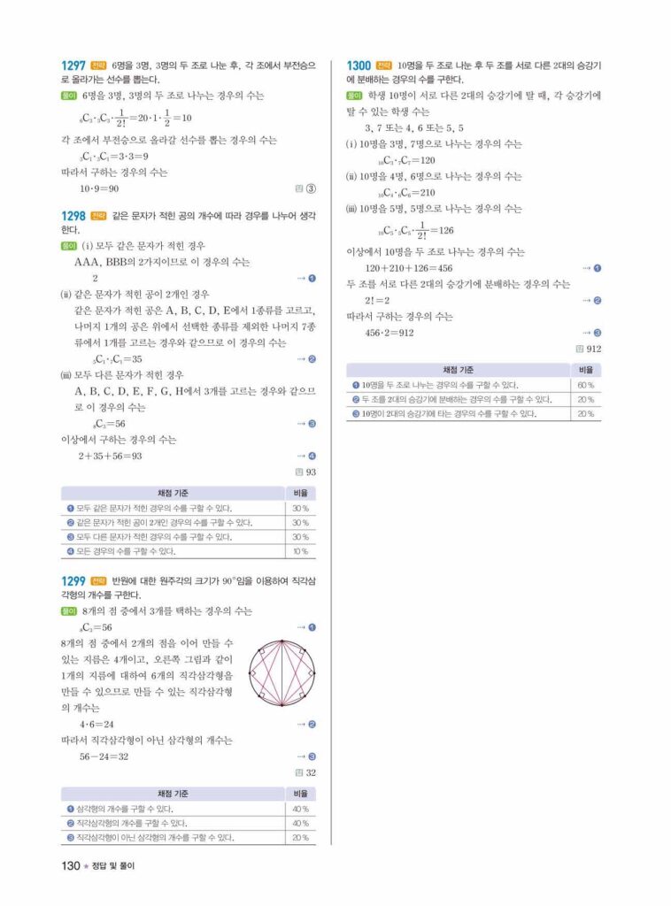 라이트쎈 공통수학1 10. 조합 답지