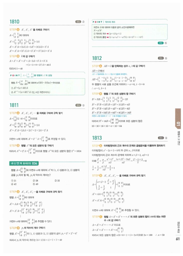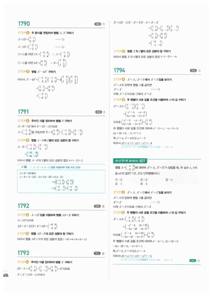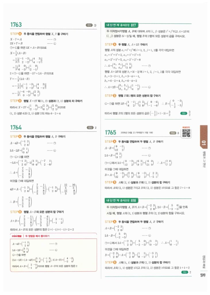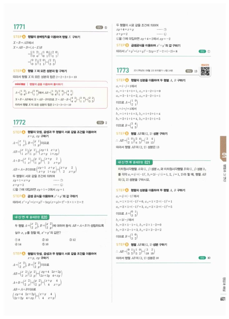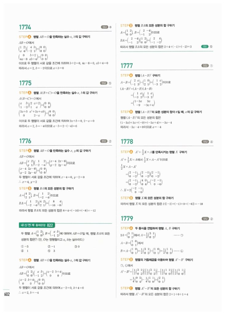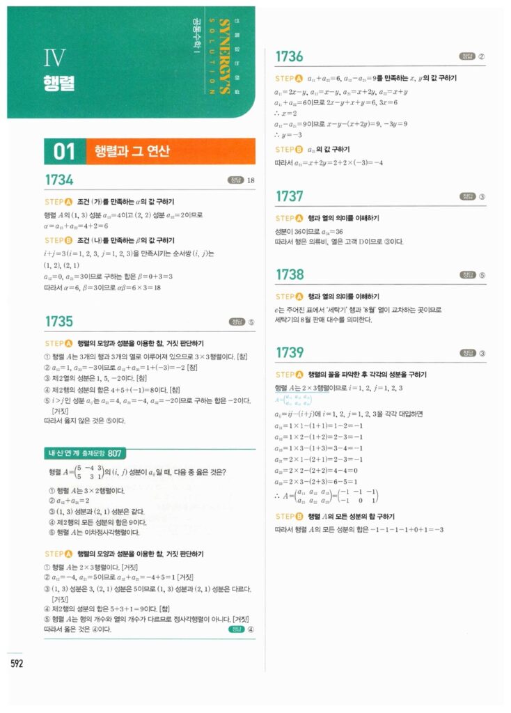 안녕하세요. **마플시너지 공통수학1** **4-1 행렬과 그 연산** 첫 번째 파트(1/2) 정답 및 해설입니다.
