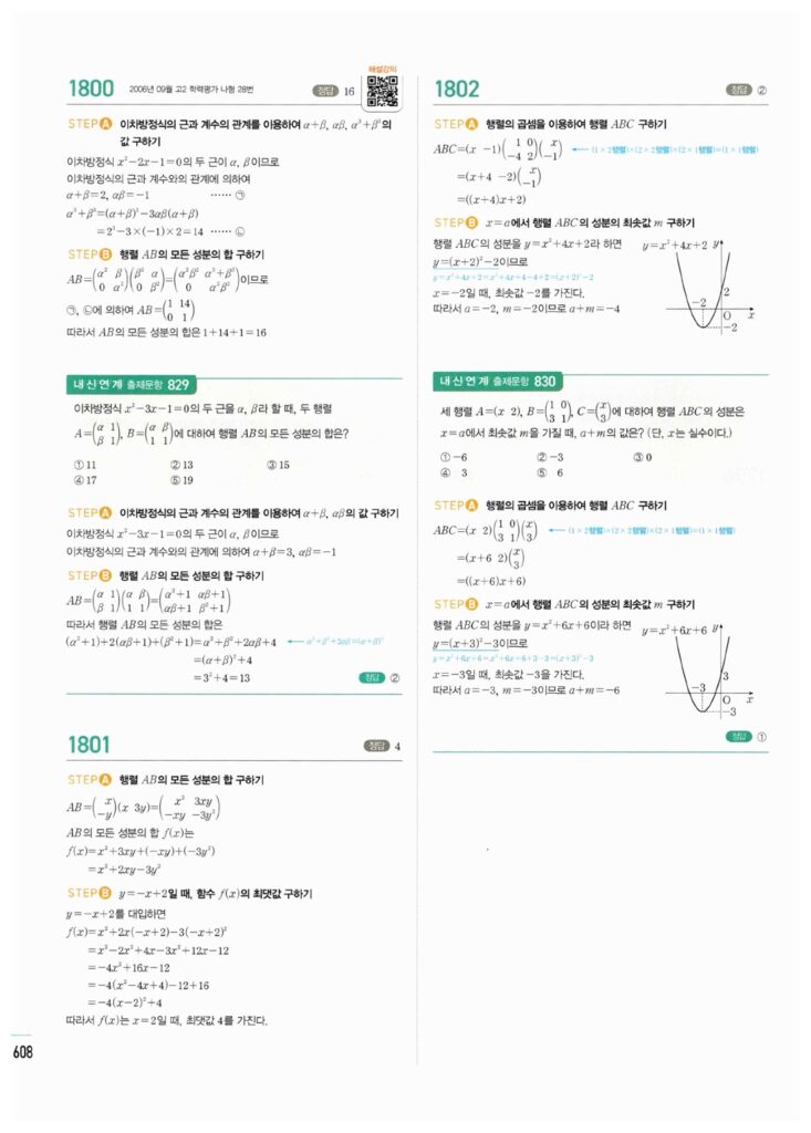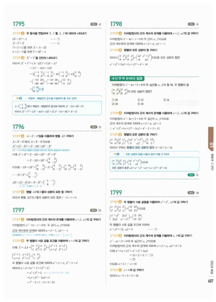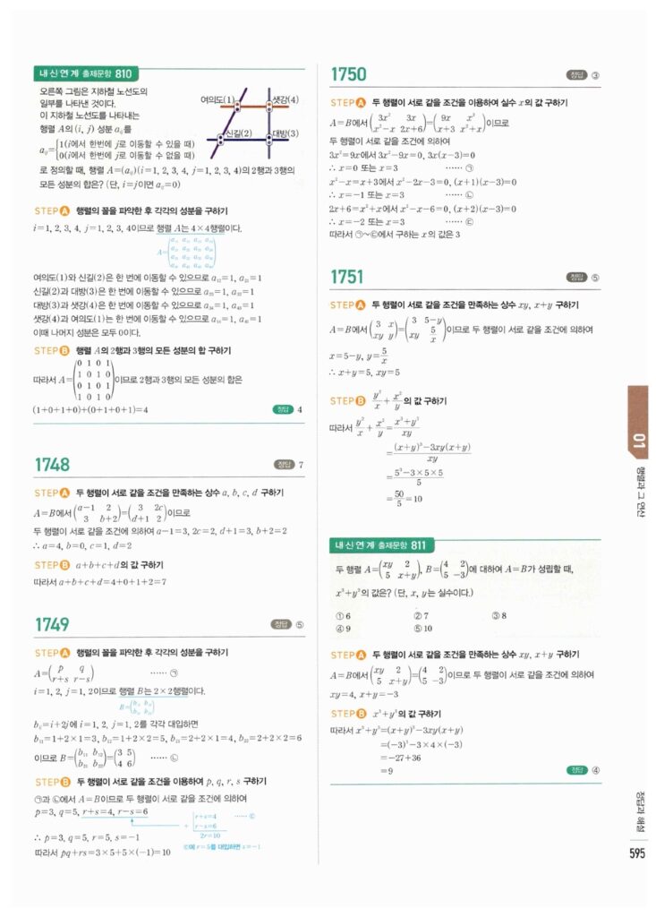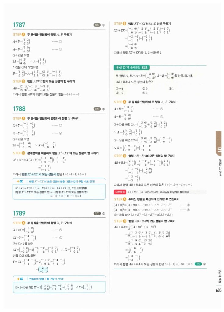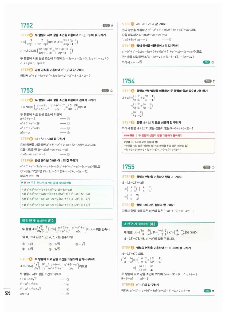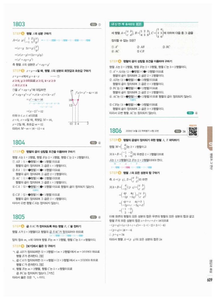 안녕하세요. **마플시너지 공통수학1** **4-1 행렬과 그 연산** 첫 번째 파트(1/2) 정답 및 해설입니다.