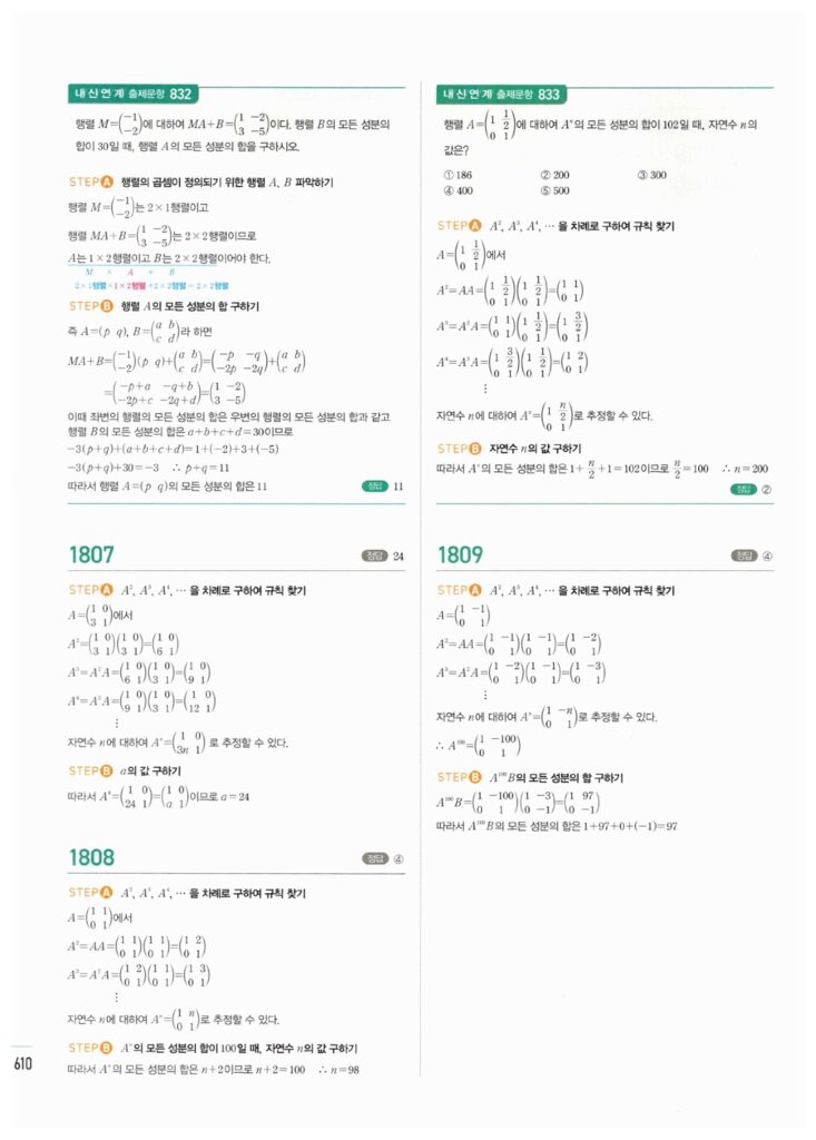 마플시너지 공통수학1 4-1 행렬과 그 연산 (1) 답지