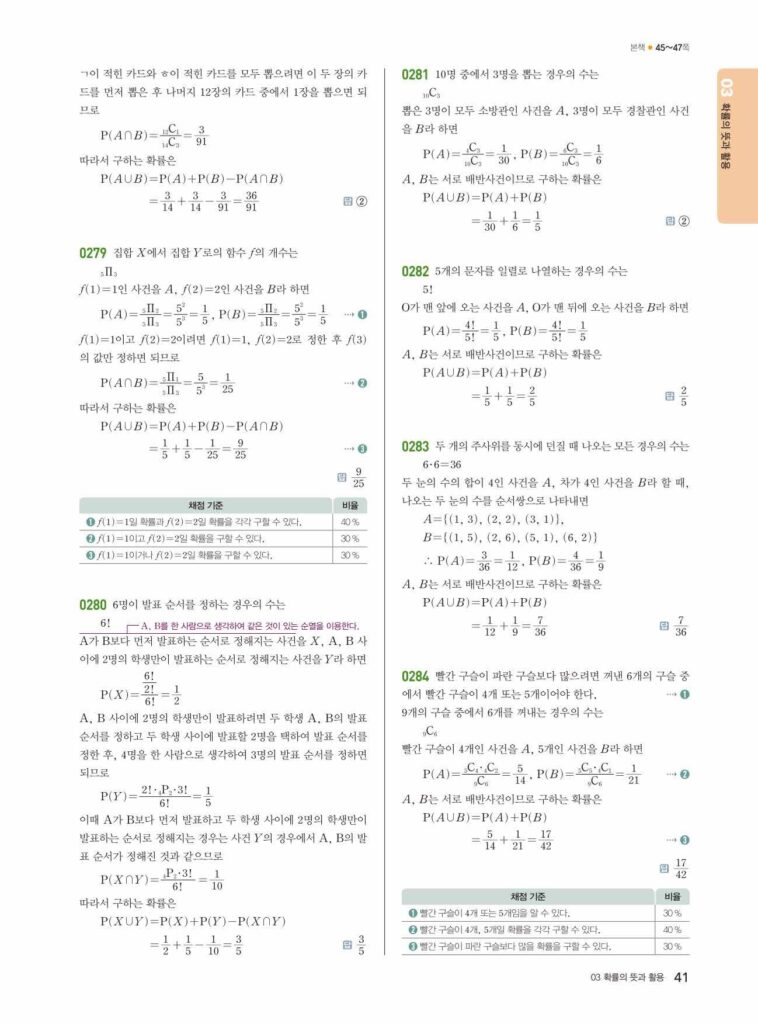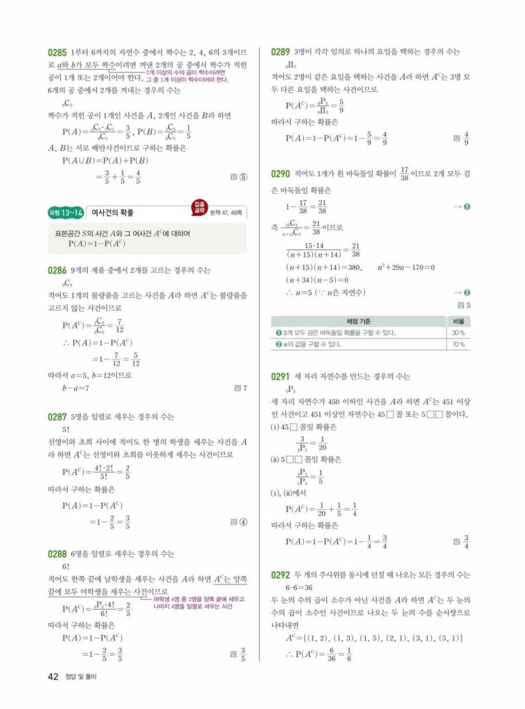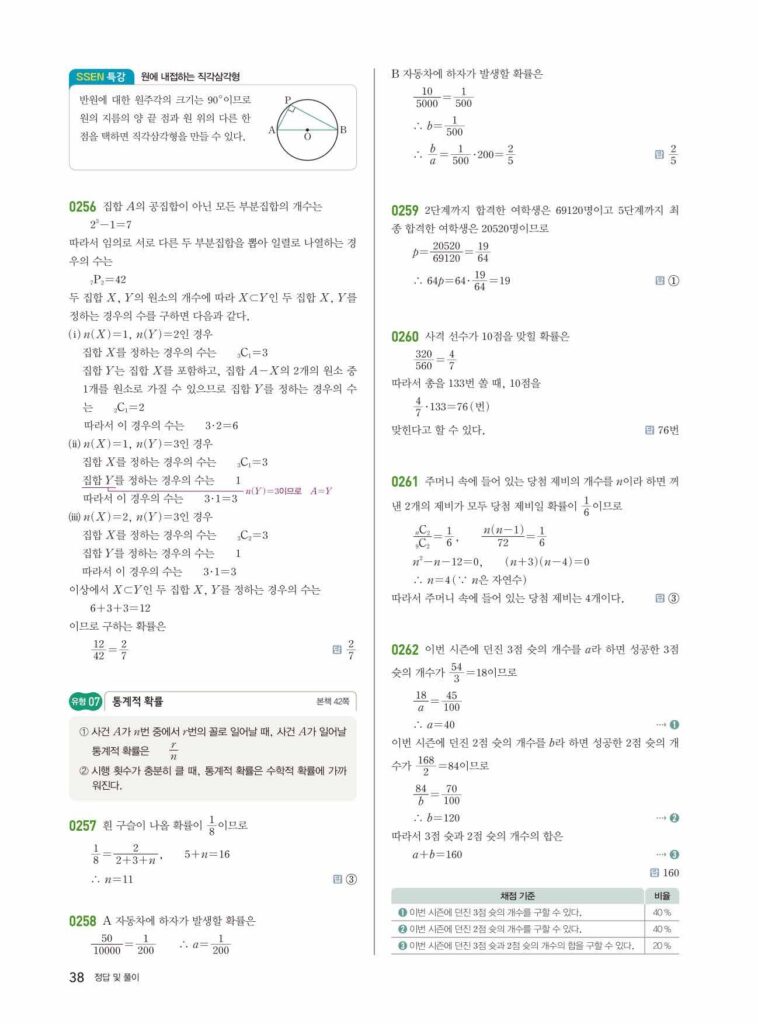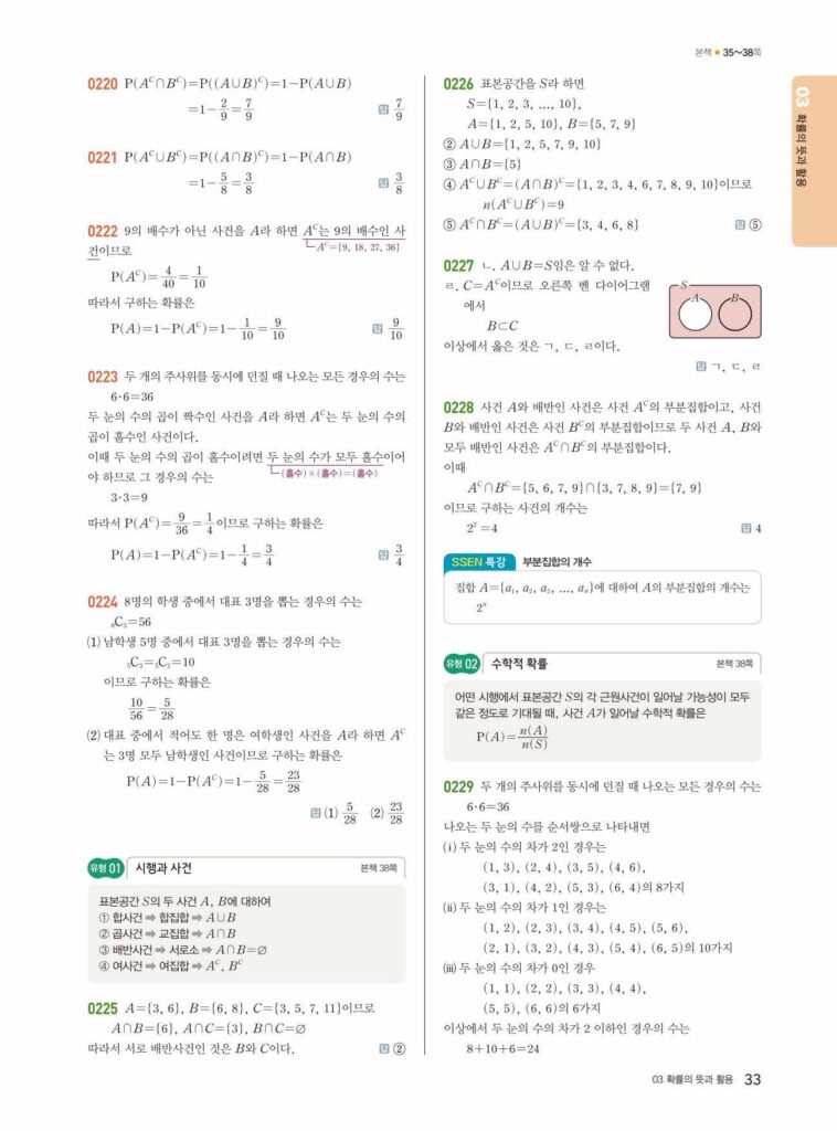 안녕하세요. **쎈 확률과 통계** **03단원 확률의 뜻과 활용** 정답 및 해설입니다.