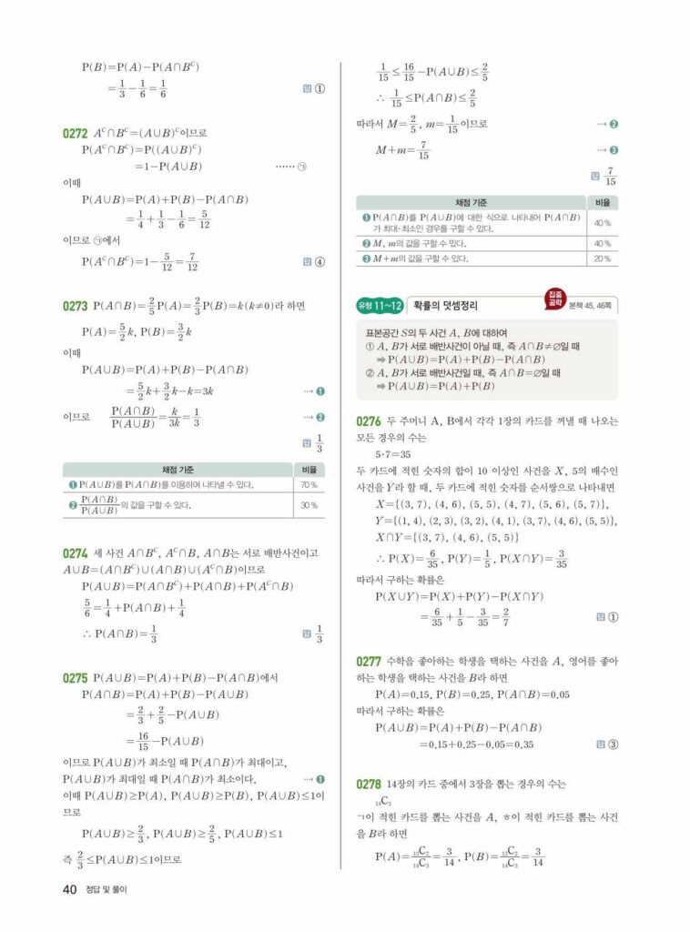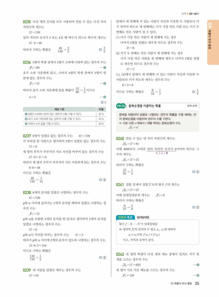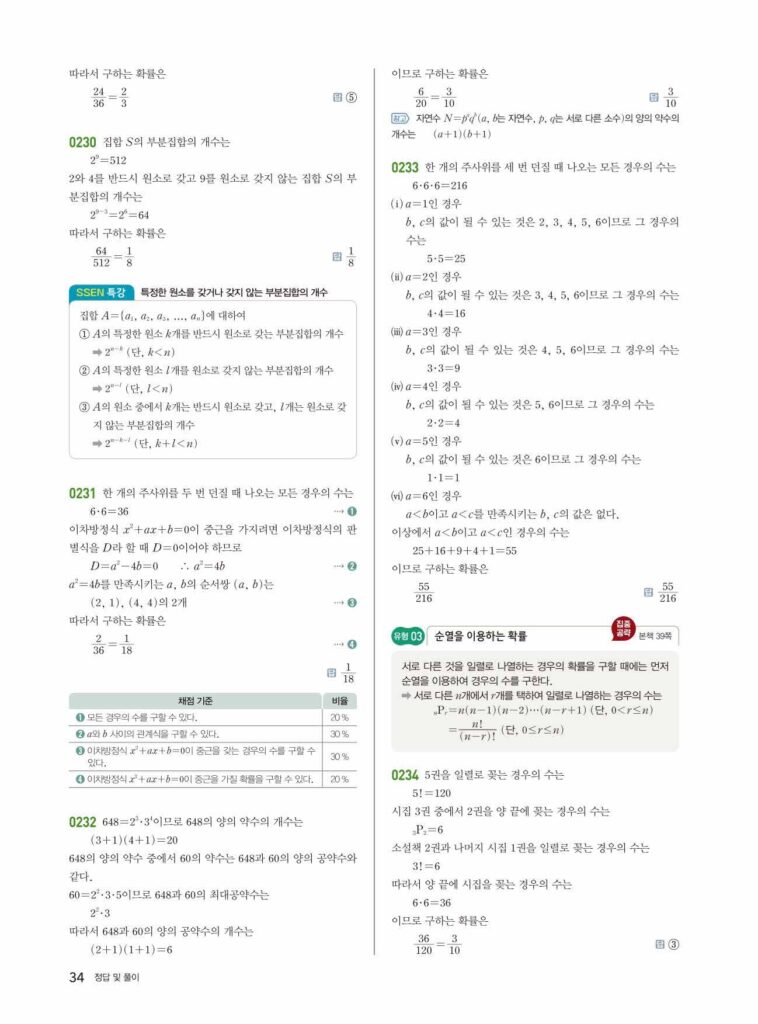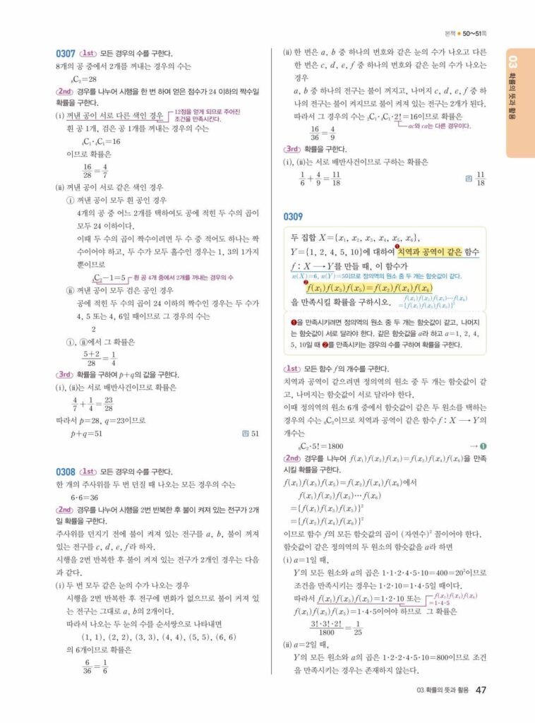 안녕하세요. **쎈 확률과 통계** **03단원 확률의 뜻과 활용** 정답 및 해설입니다.
