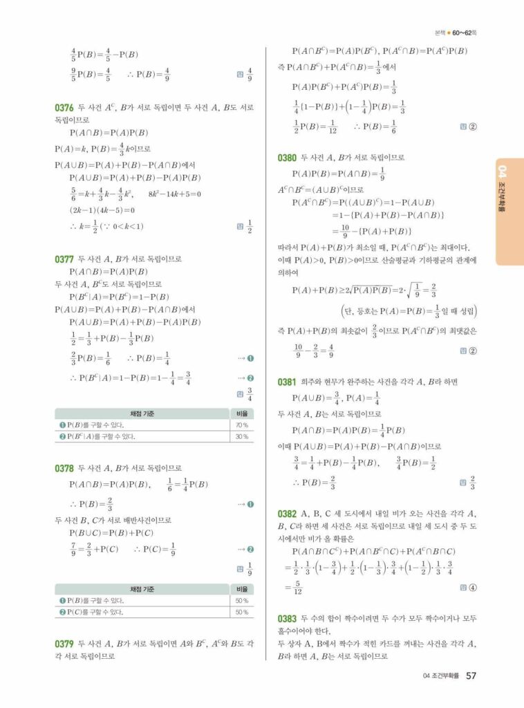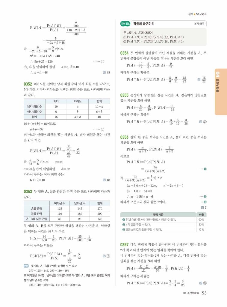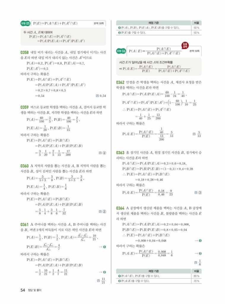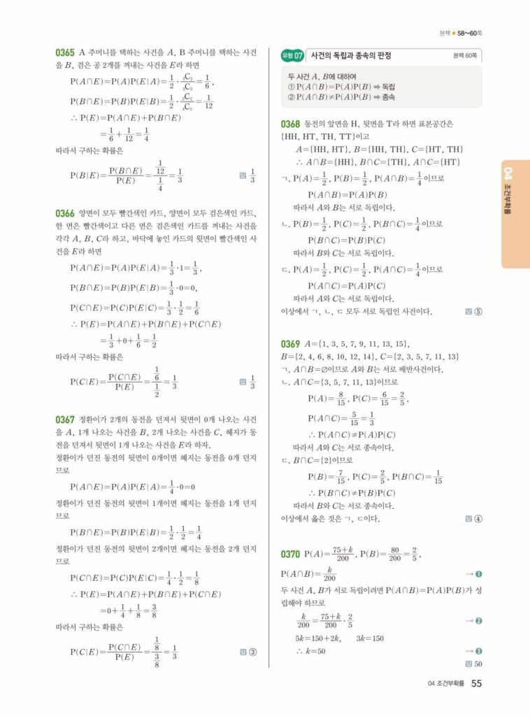 안녕하세요. **쎈 확률과 통계** **04단원 조건부 확률** 정답 및 해설입니다.