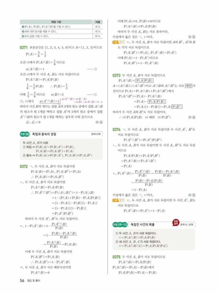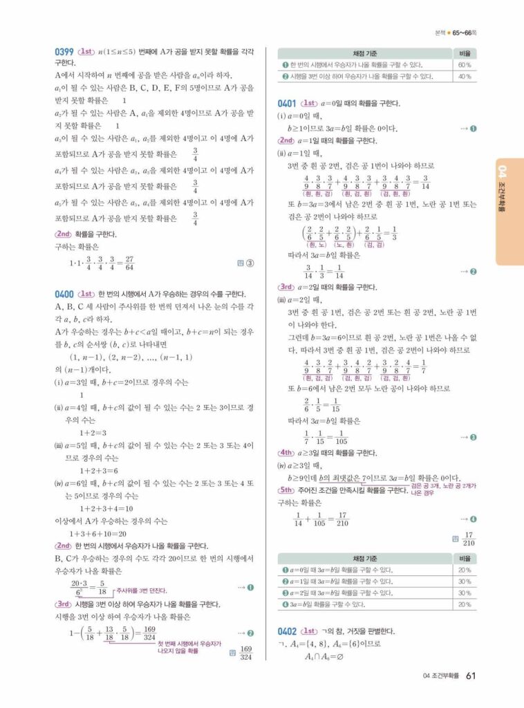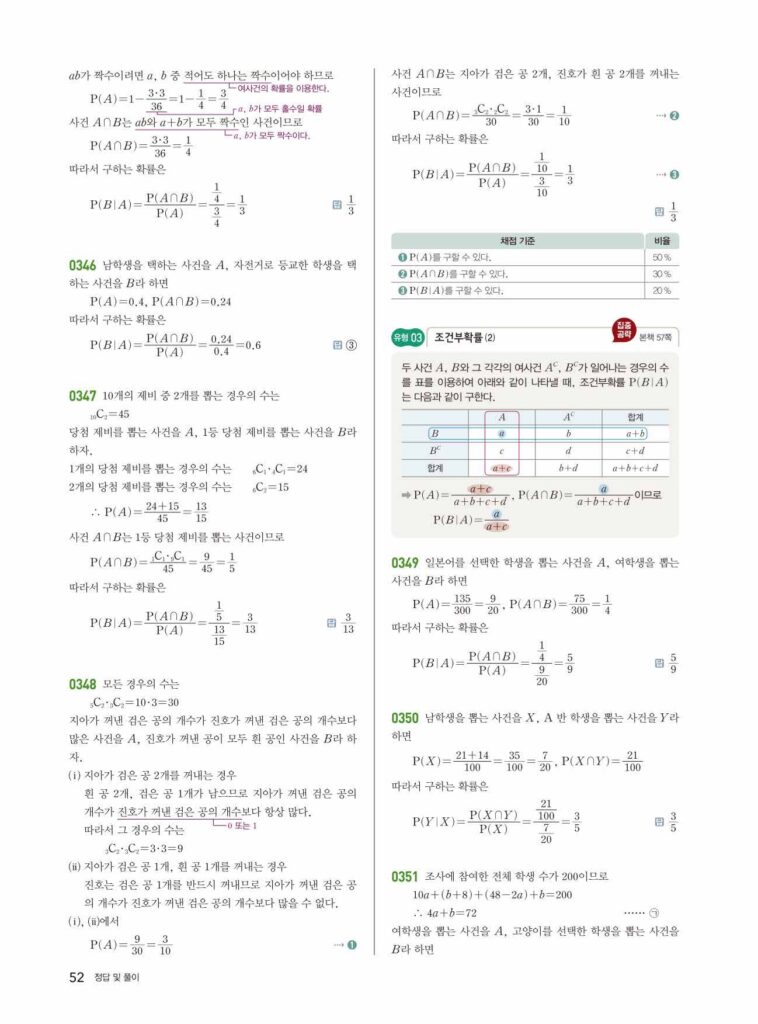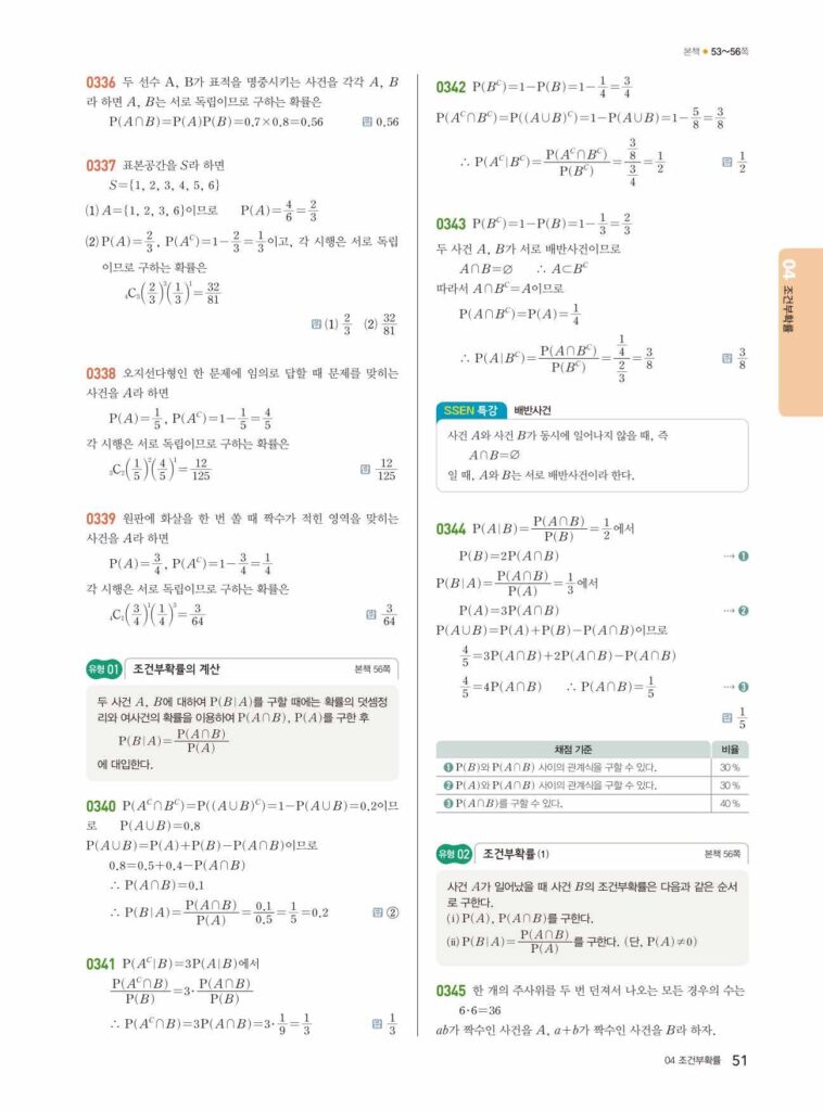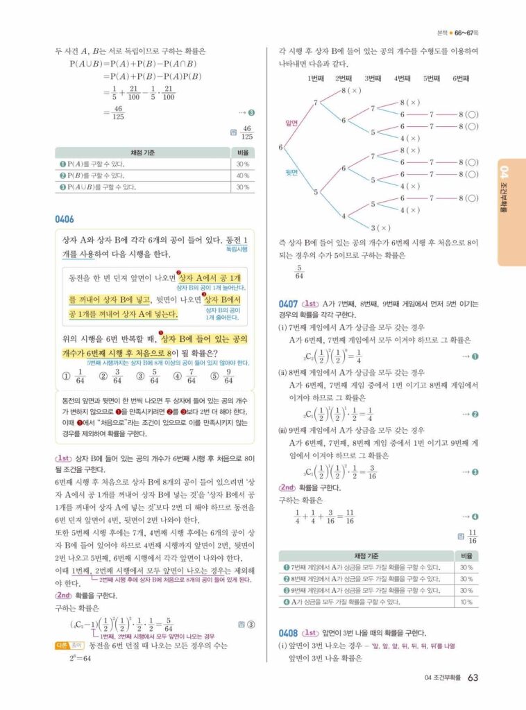 안녕하세요. **쎈 확률과 통계** **04단원 조건부 확률** 정답 및 해설입니다.