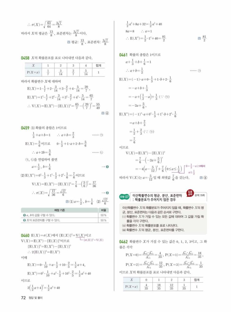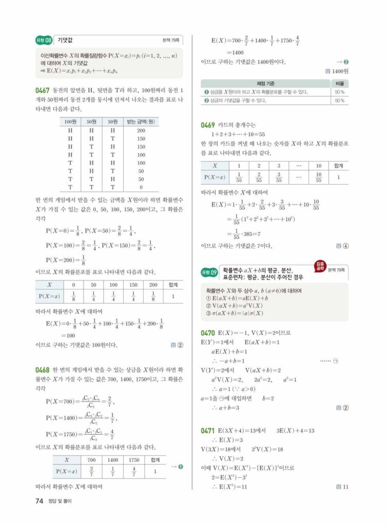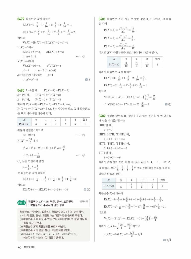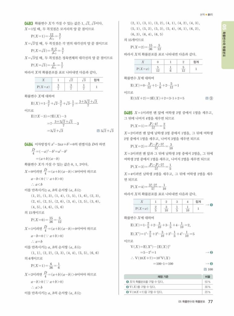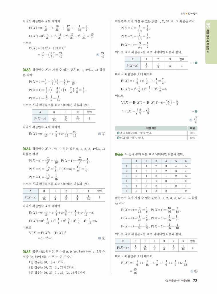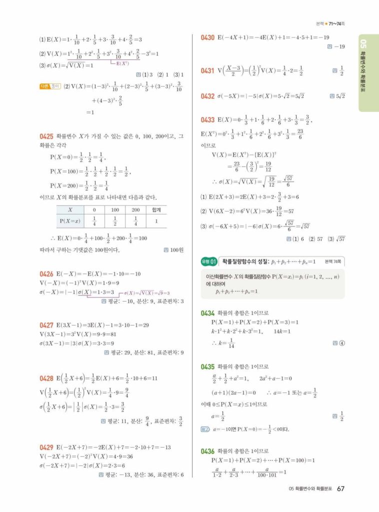 안녕하세요. **쎈 확률과 통계** **05단원 확률변수와 확률분포** 정답 및 해설입니다.