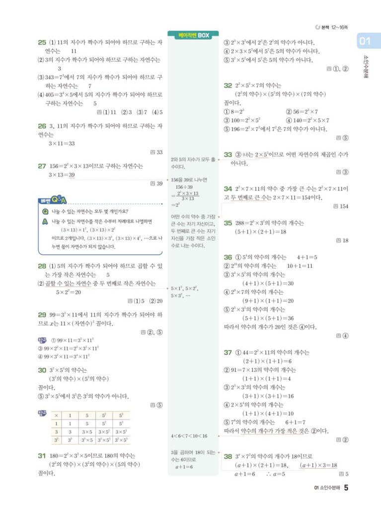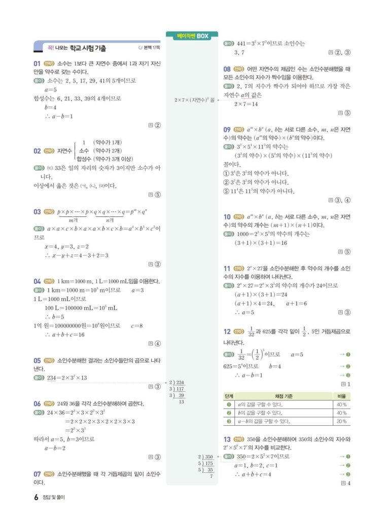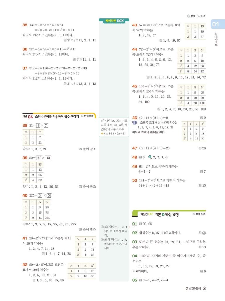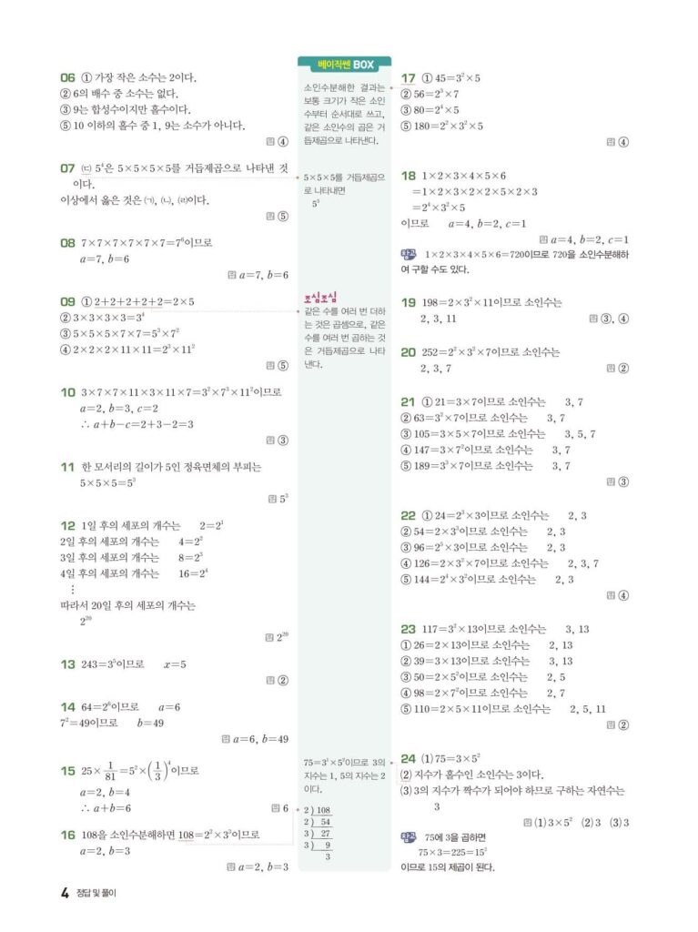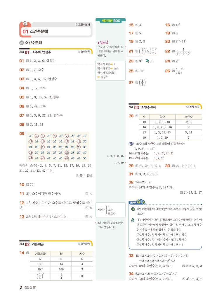 안녕하세요. **베이직쎈 중1-1** **01단원 소인수분해** 정답 및 해설입니다.