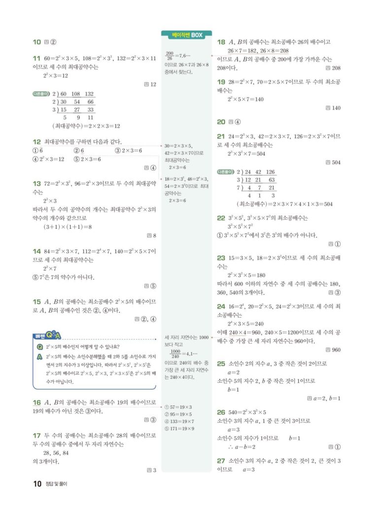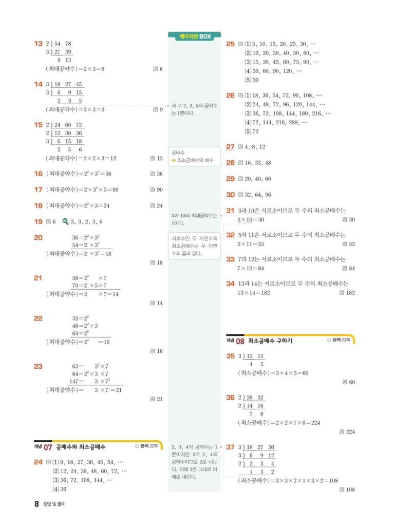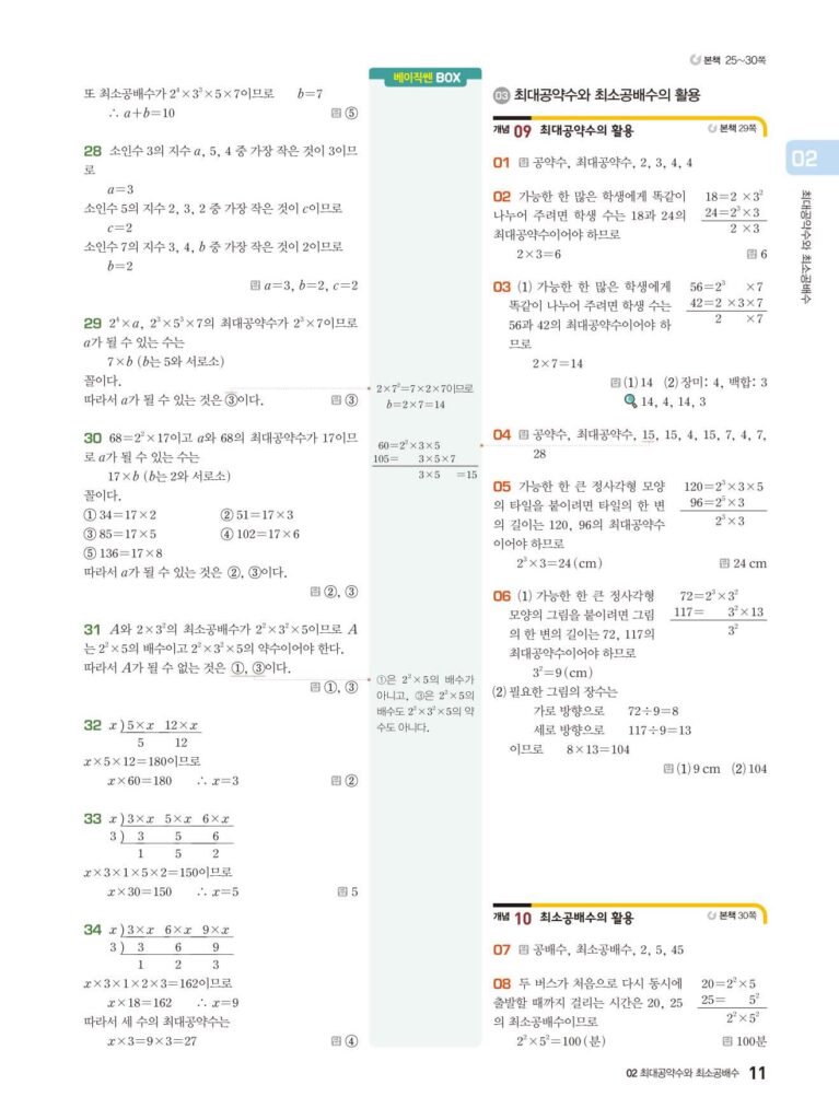 베이직쎈 중1-1 02. 최대공약수와 최소공배수 답지