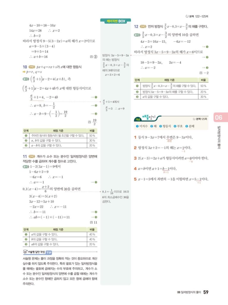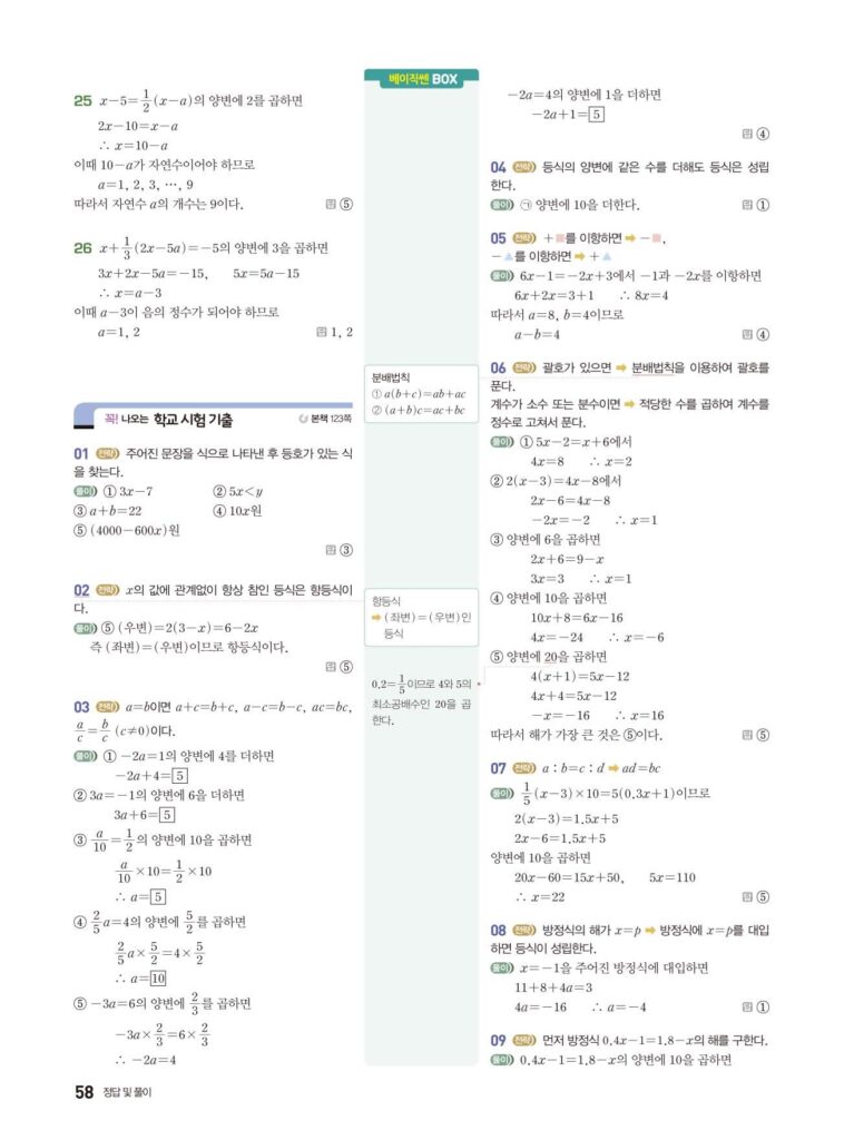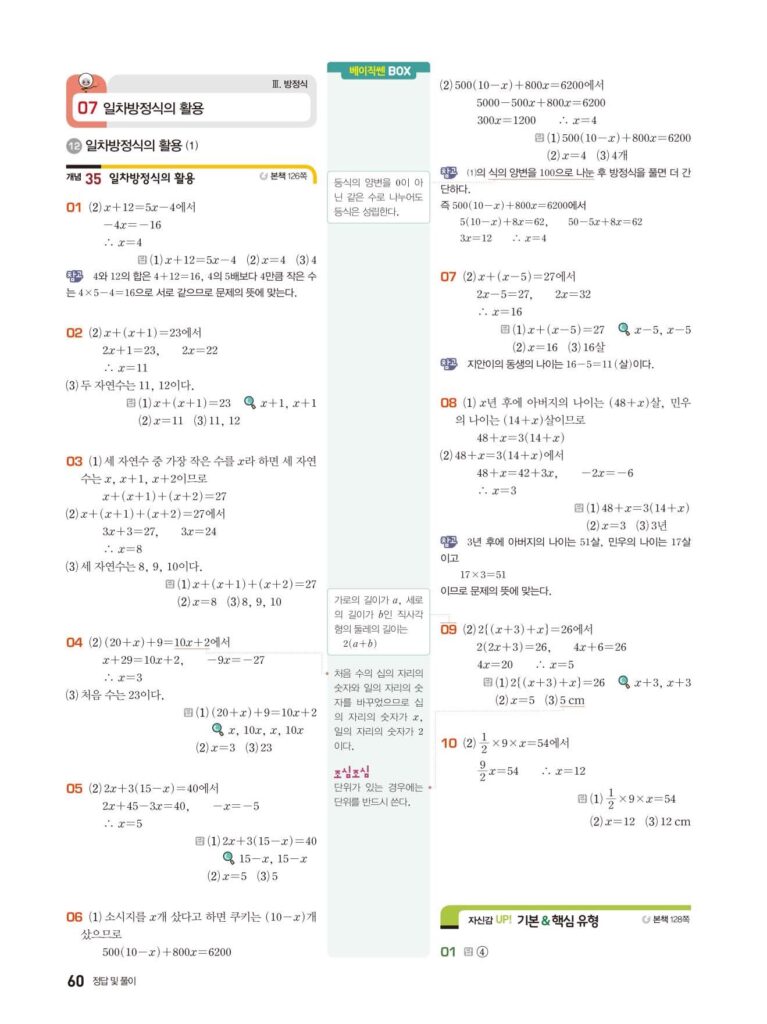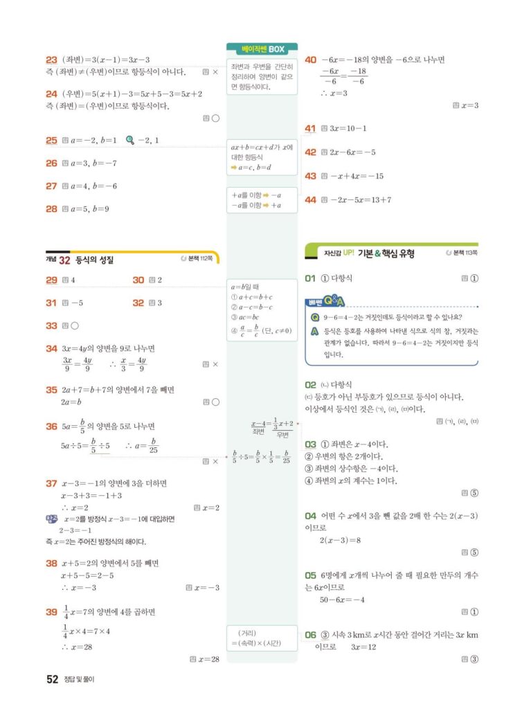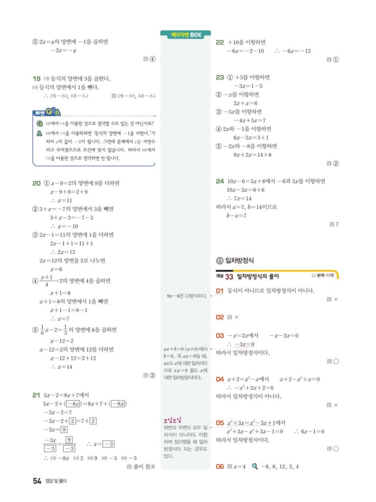 베이직쎈중1-1답지 06 일차방정식의 풀이