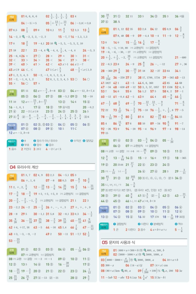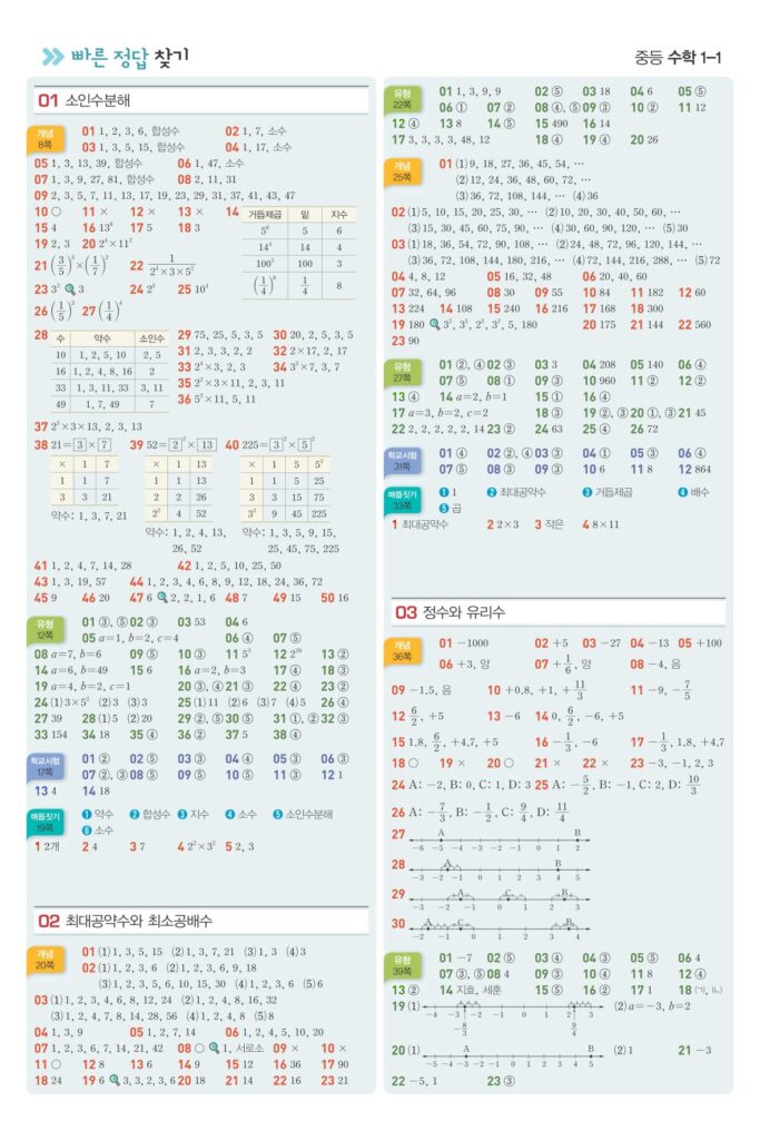 1. 베이직쎈 중1-1 빠른정답 & 전체 PDF