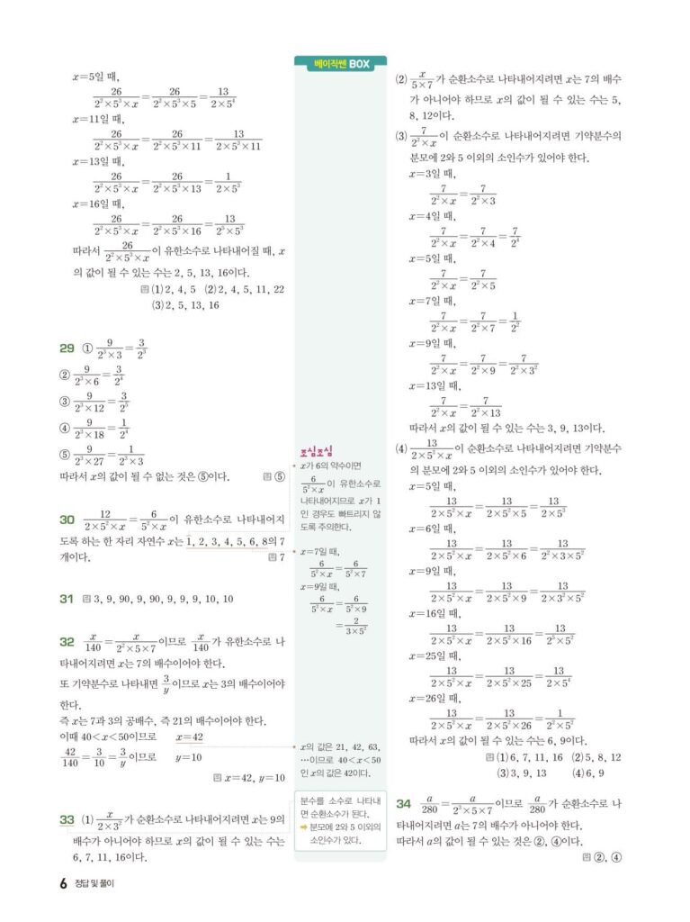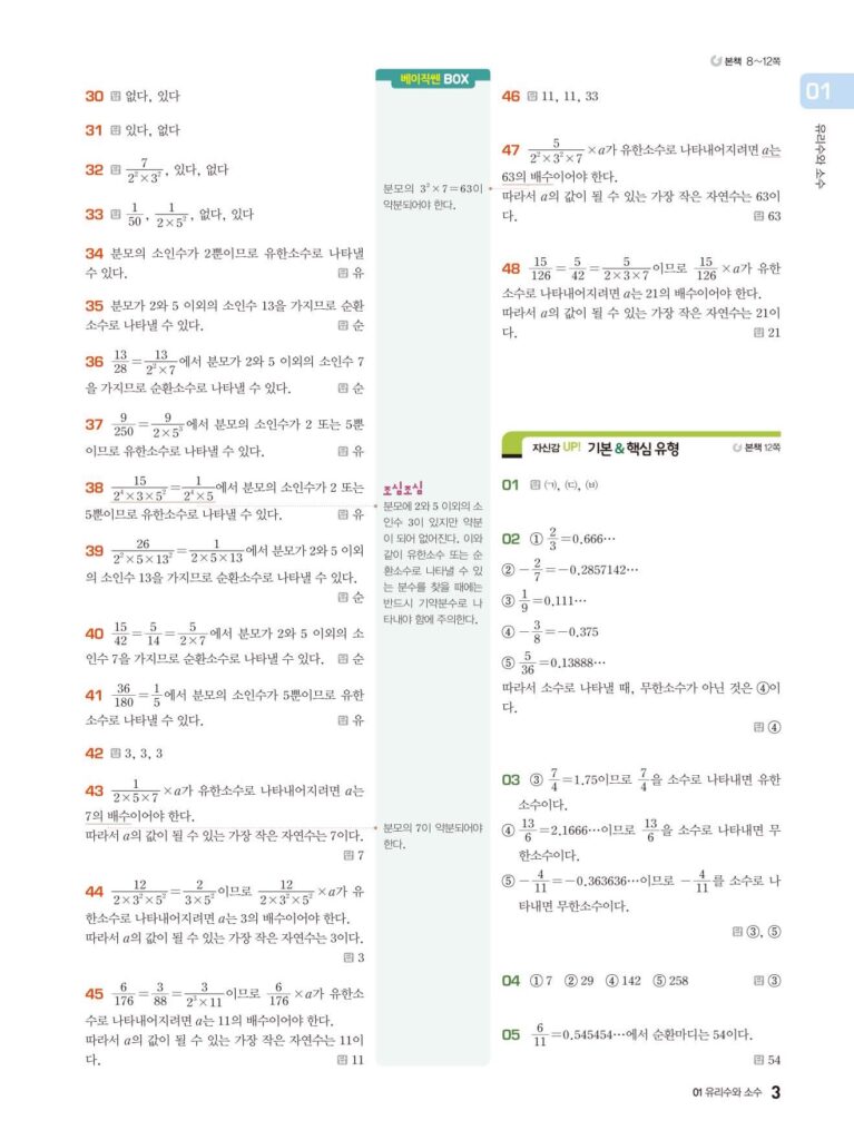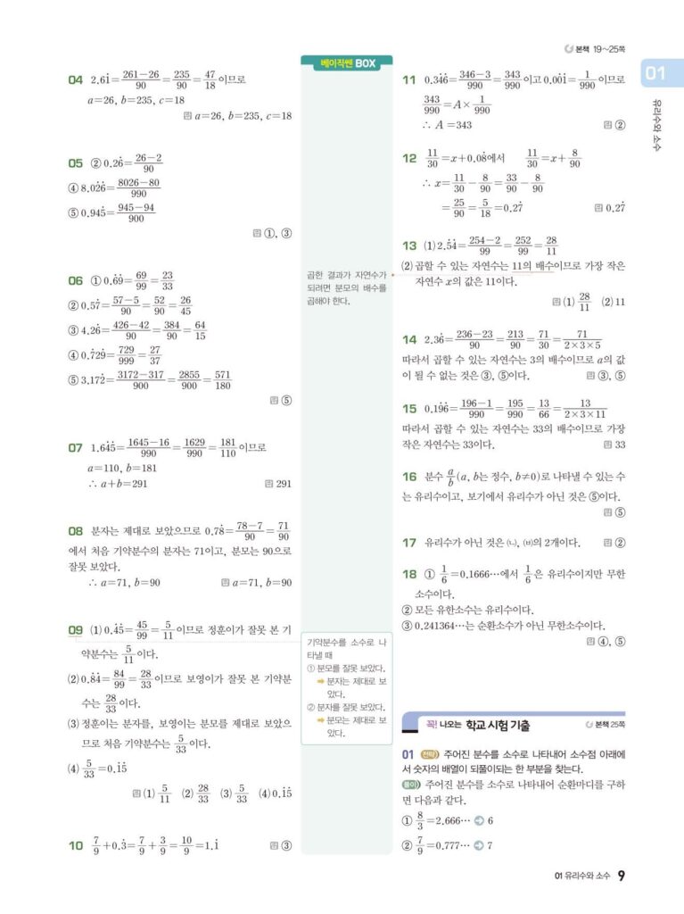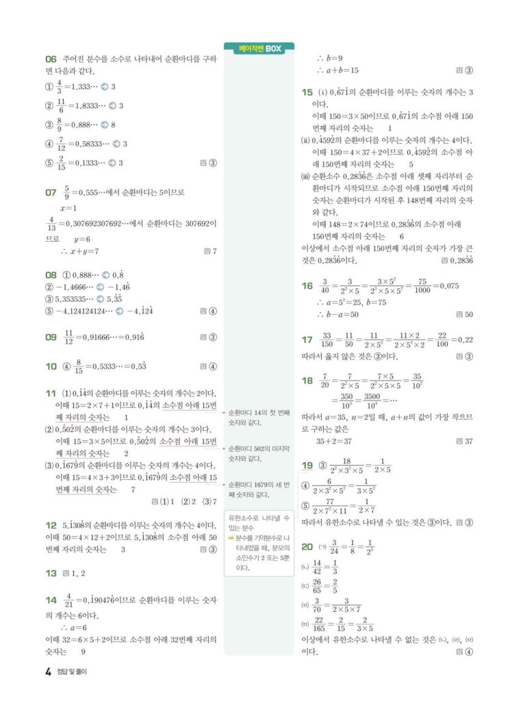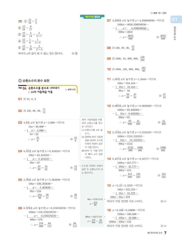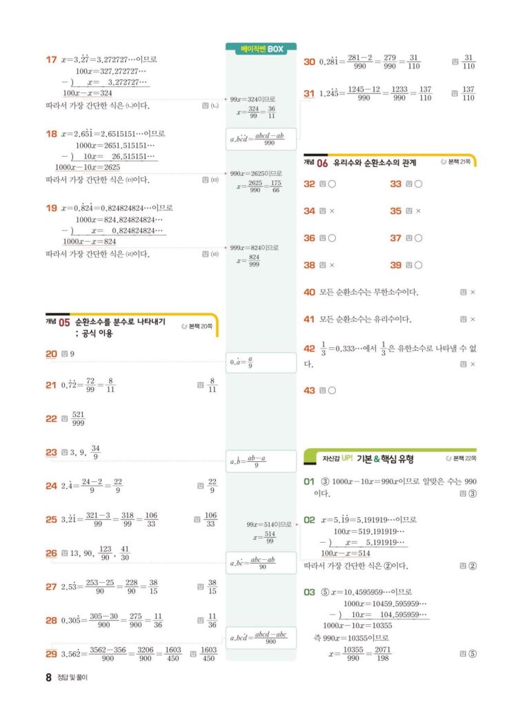 베이직쎈 중2-1 01. 유리수와 소수 답지
