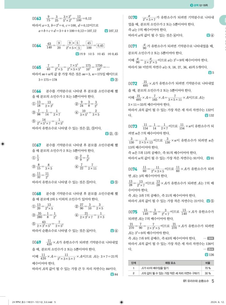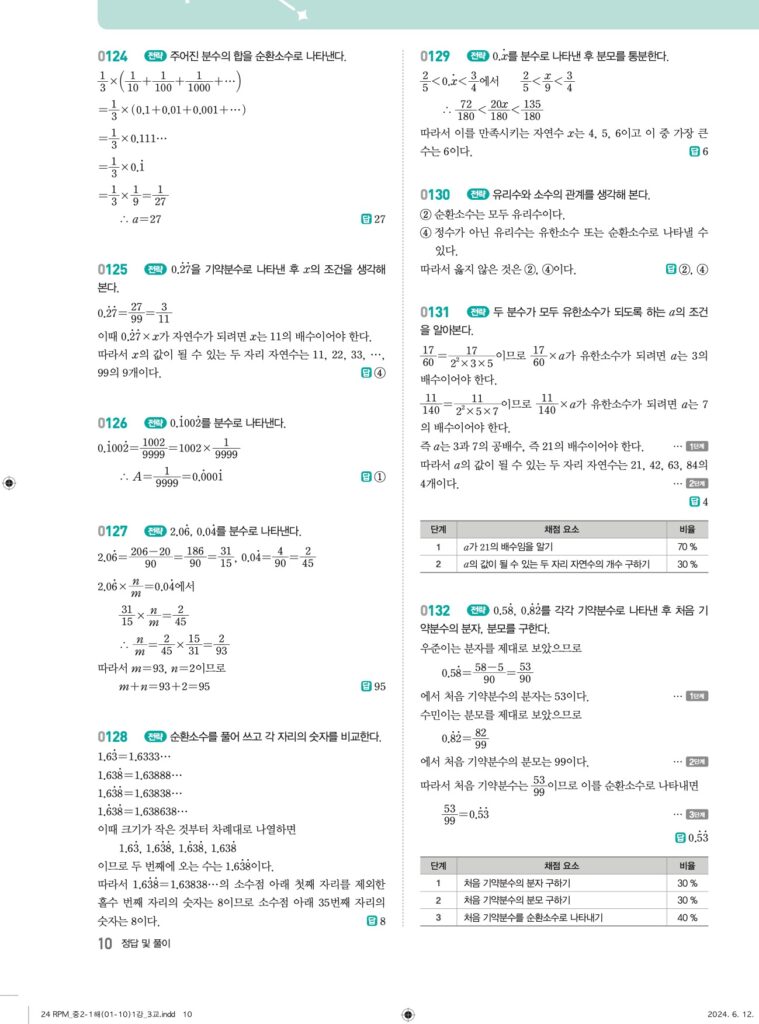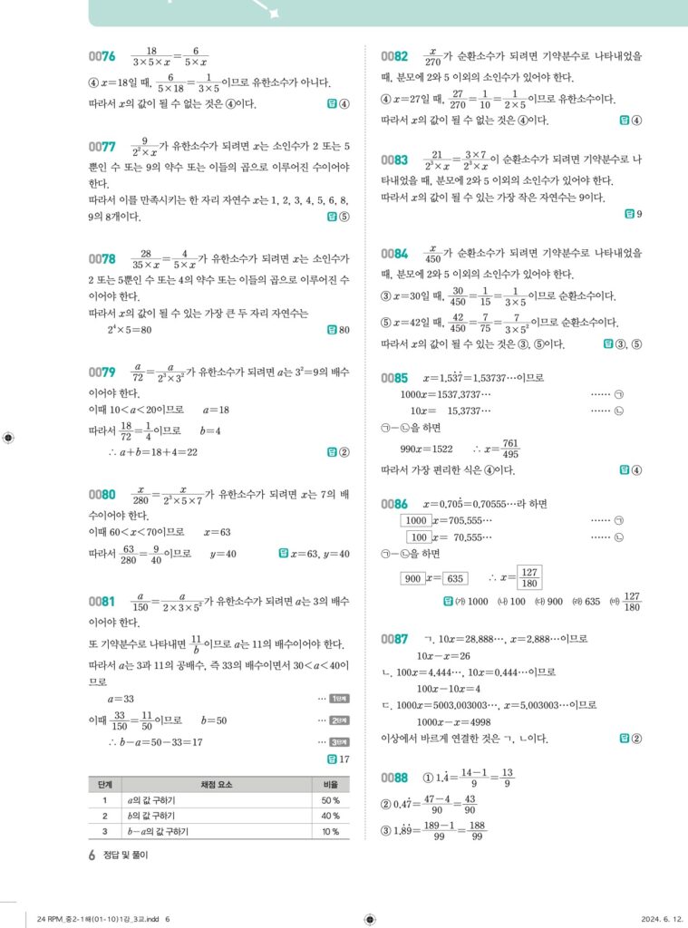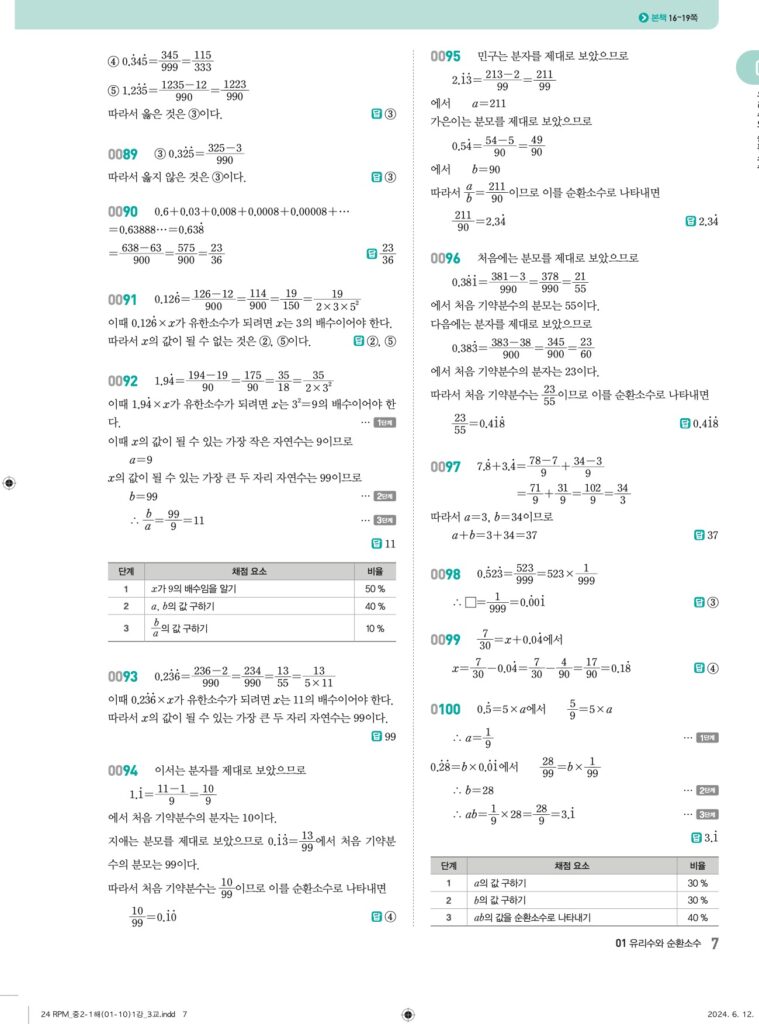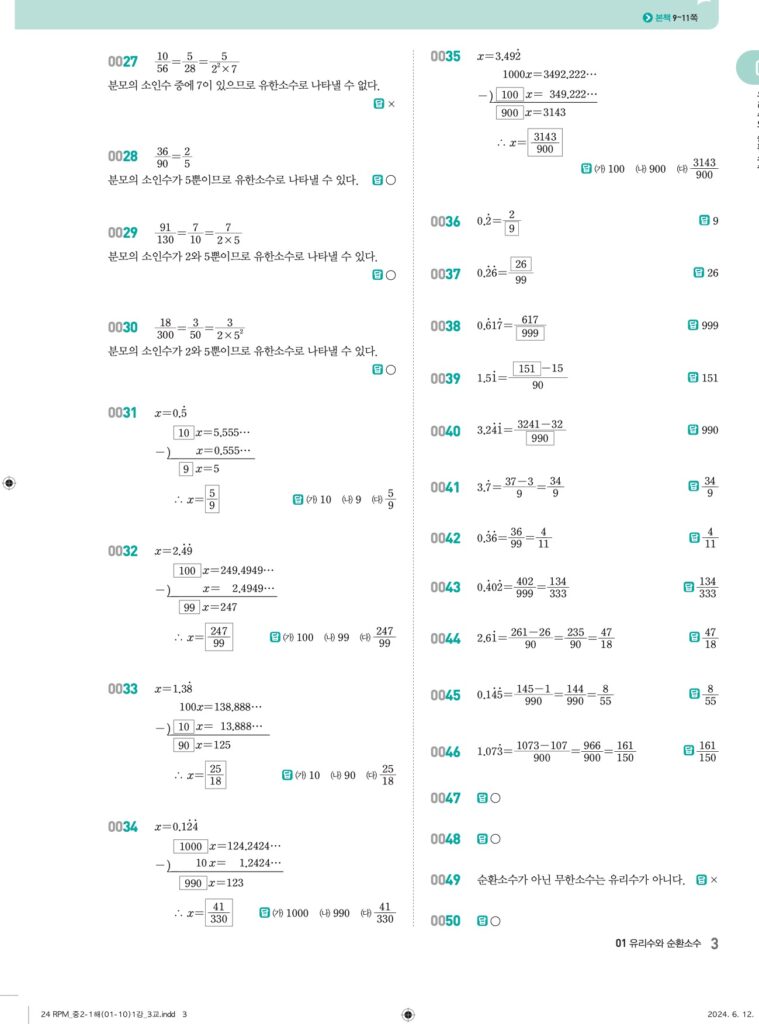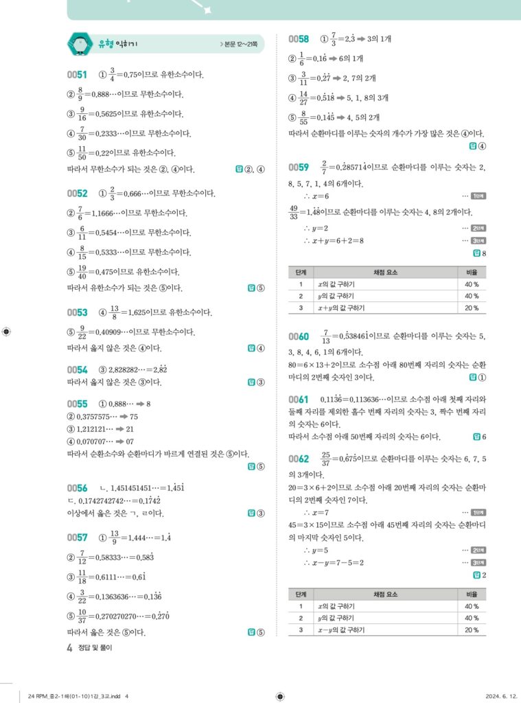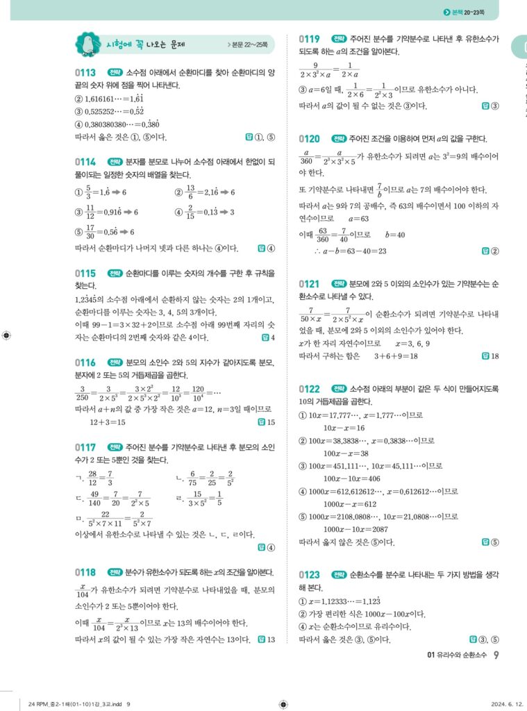 📖 유리수와 순환소수 정답 및 해설