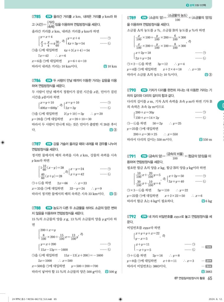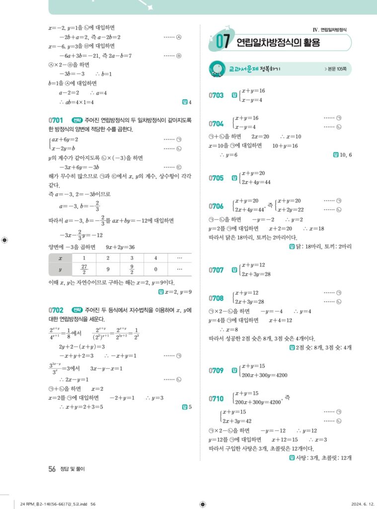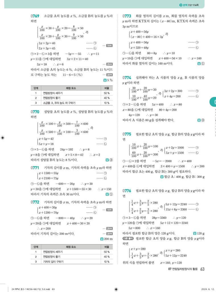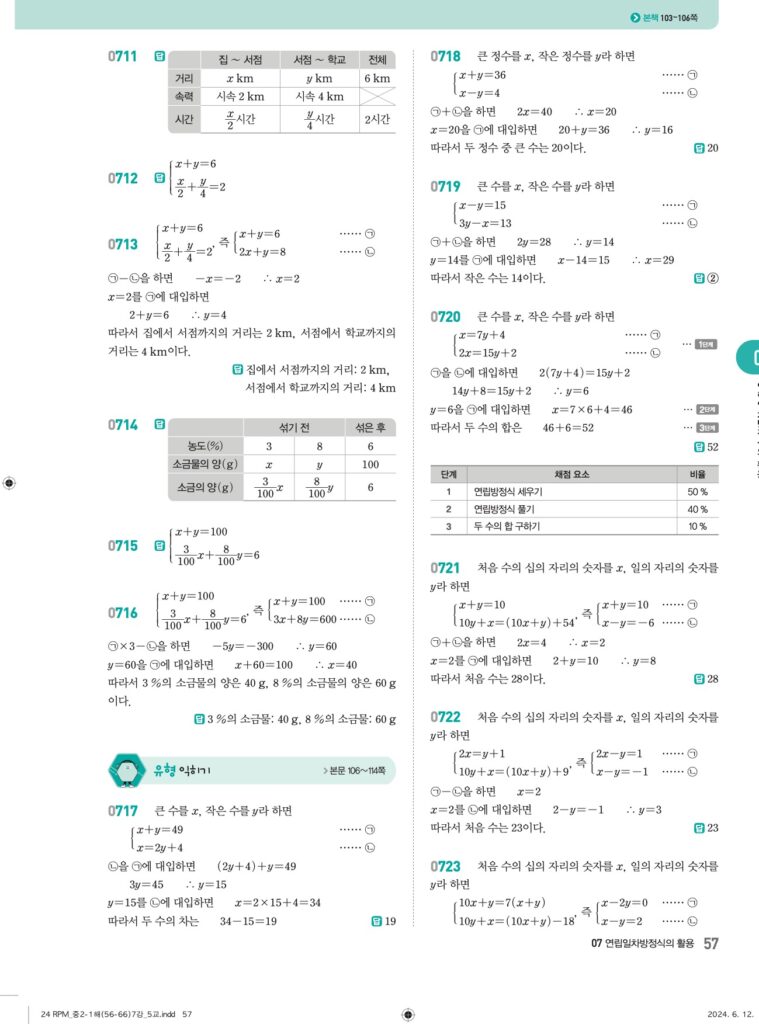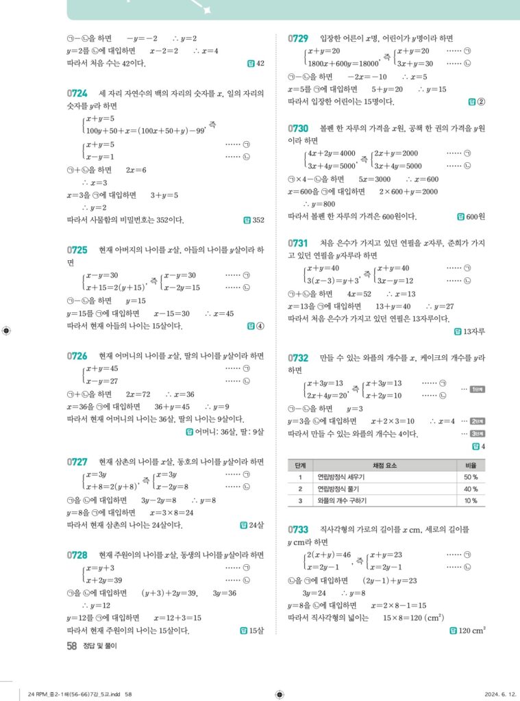 알피엠중2-1답지 07 연립일차방정식의 활용