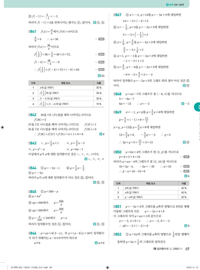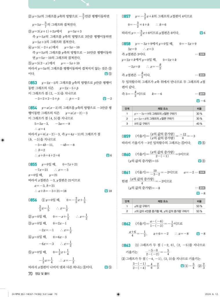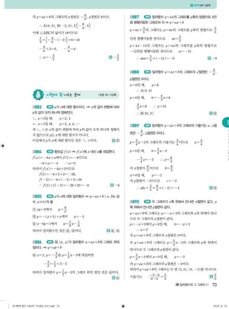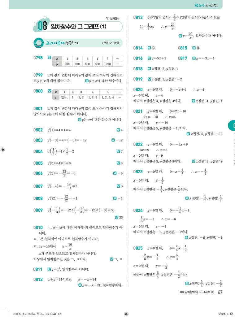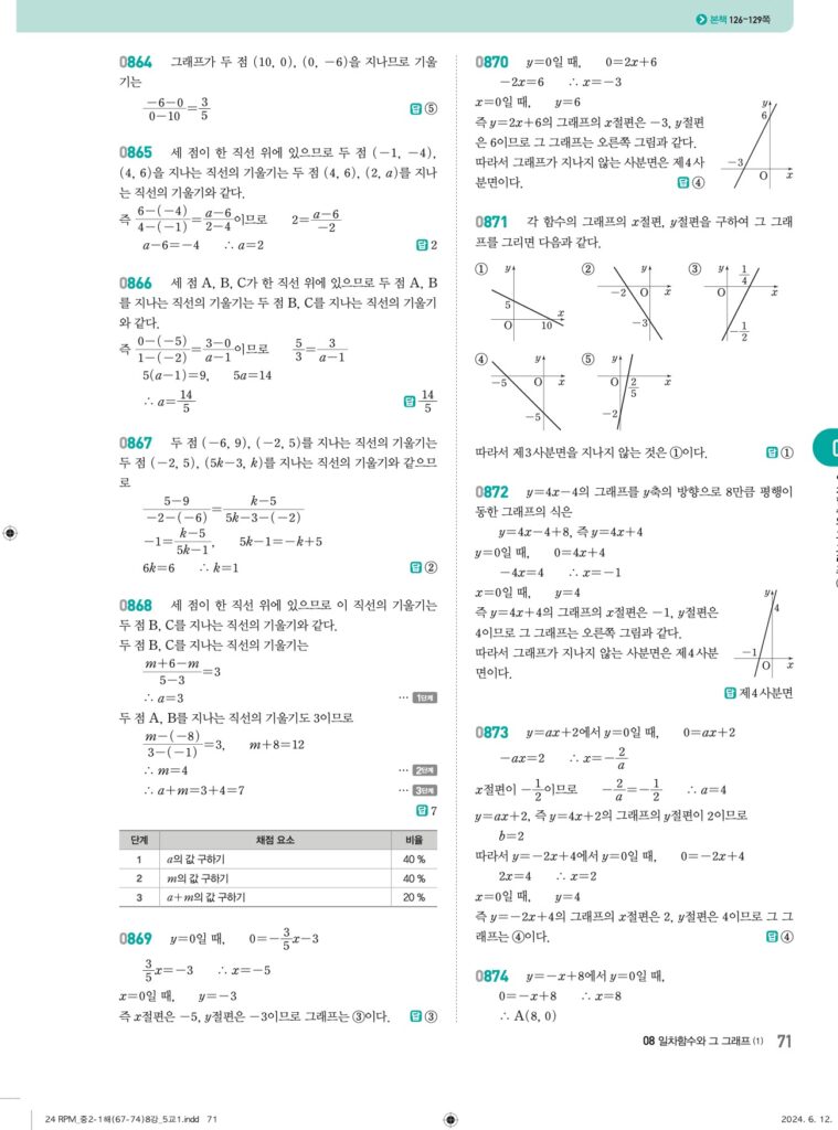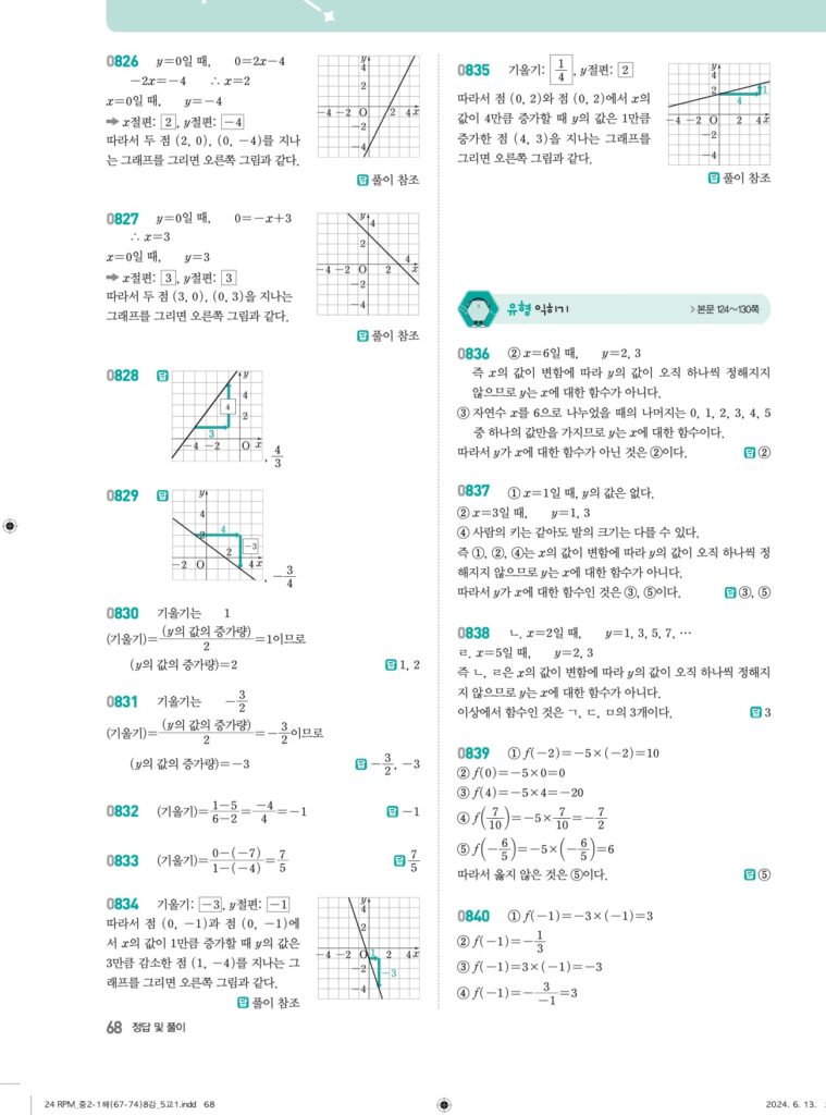 알피엠중2-1답지 08 일차함수와 그래프