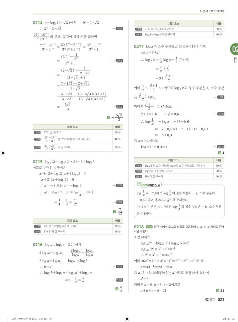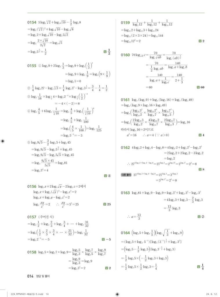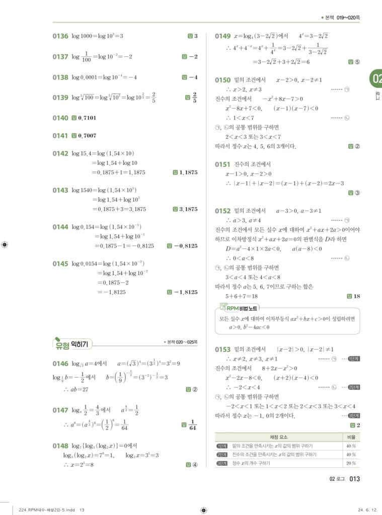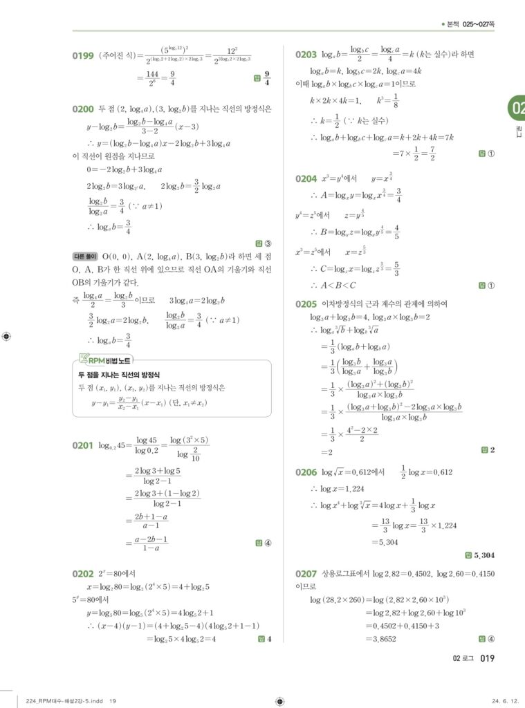 안녕하세요. **RPM 대수** **02단원 로그** 정답 및 해설입니다.