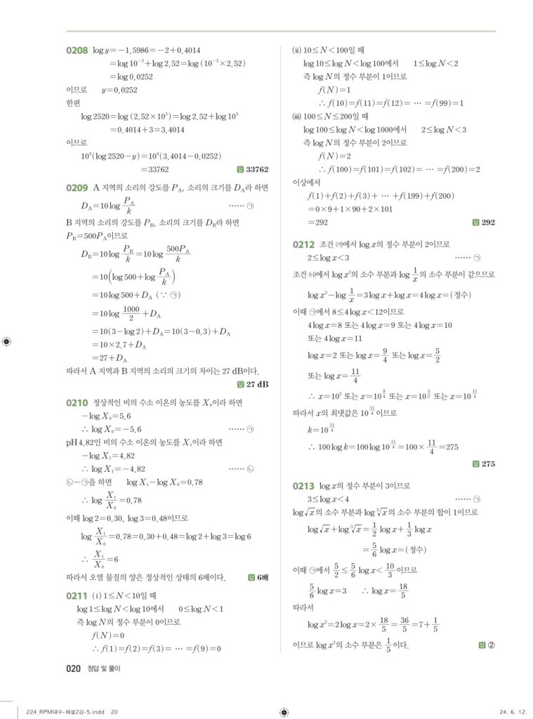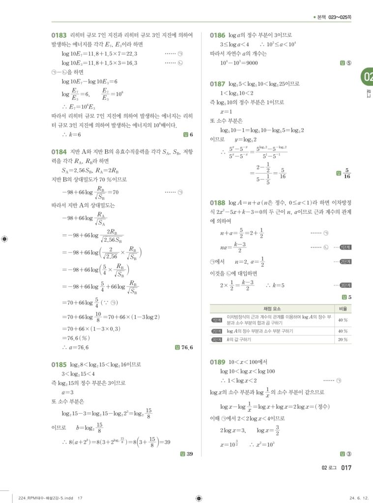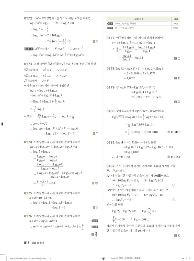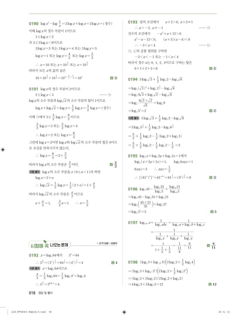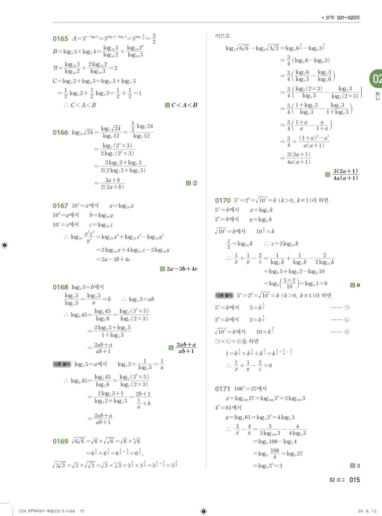 안녕하세요. **RPM 대수** **02단원 로그** 정답 및 해설입니다.