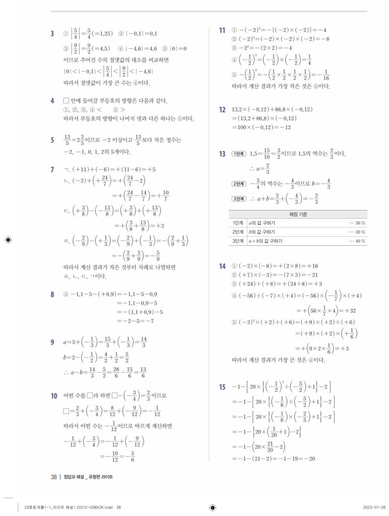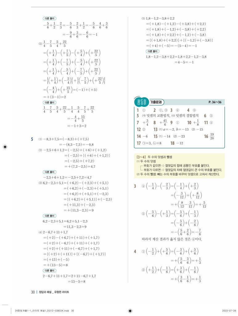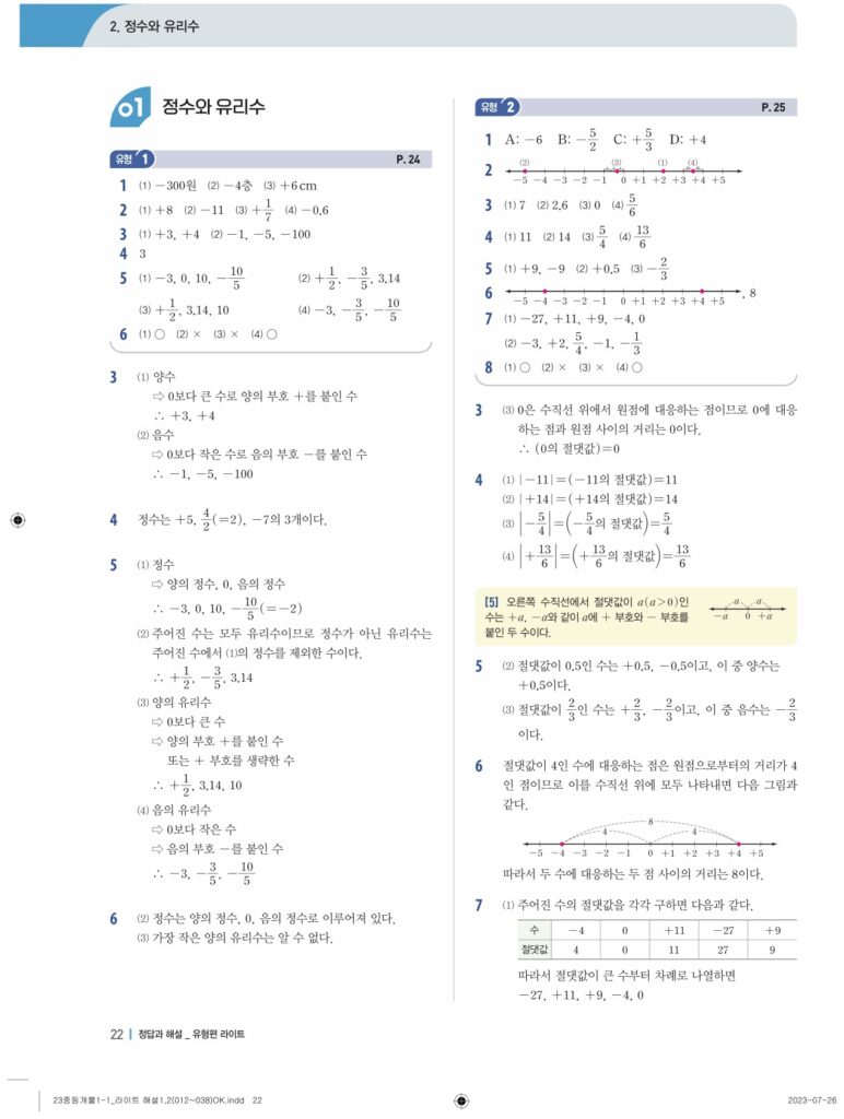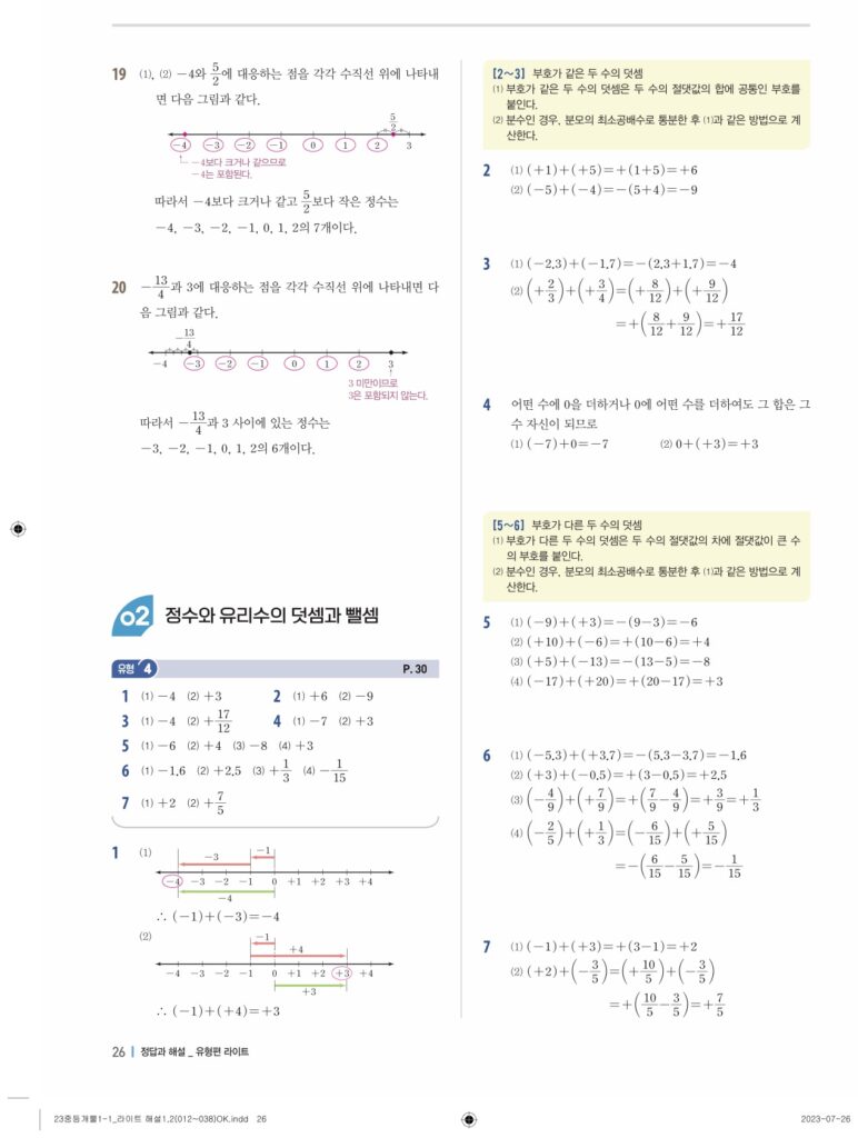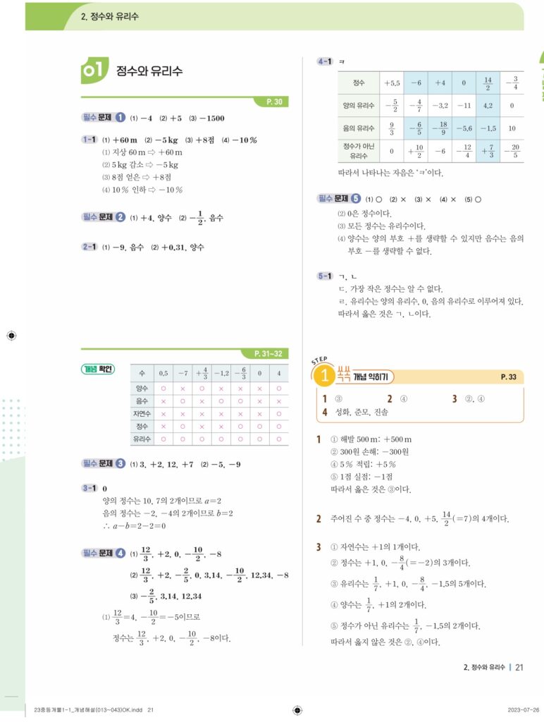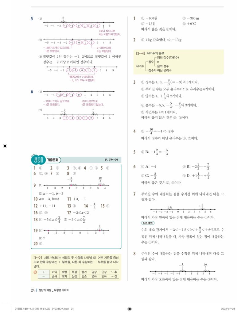 개념플러스유형라이트중1-1답지 02 정수와유리수(p30-p60)