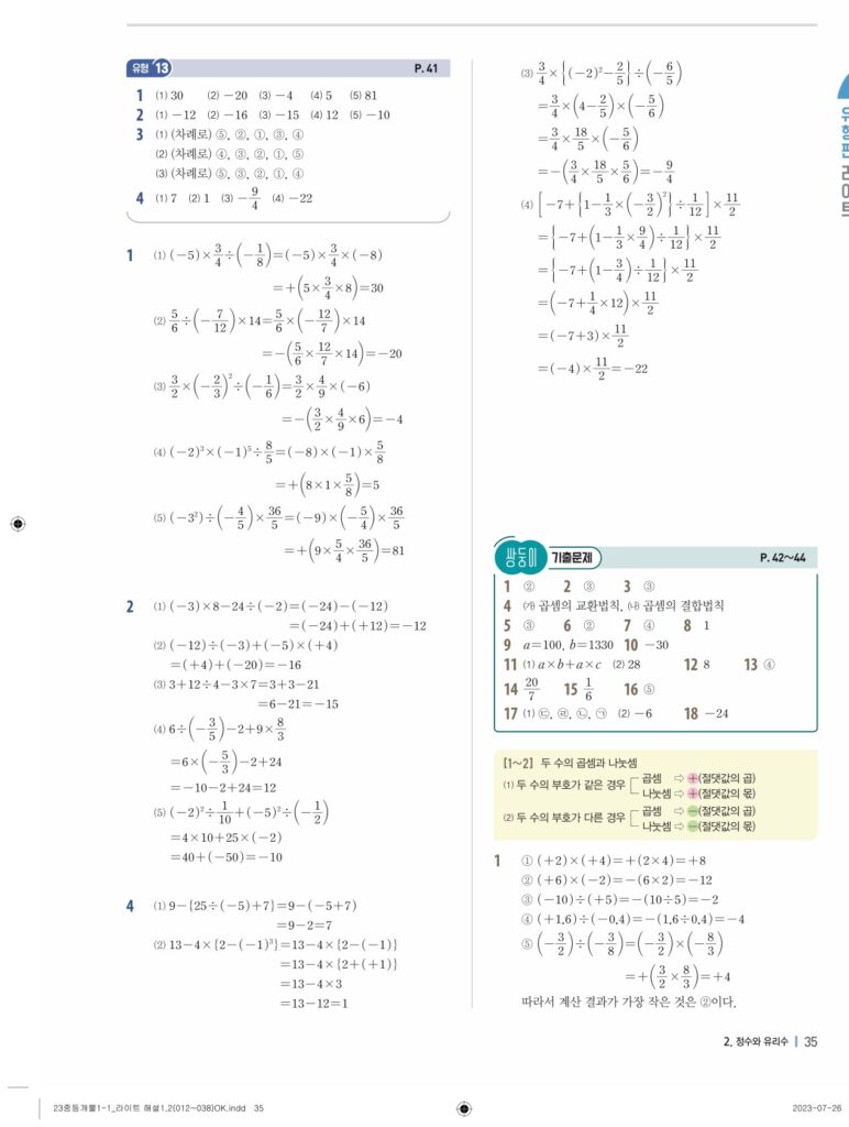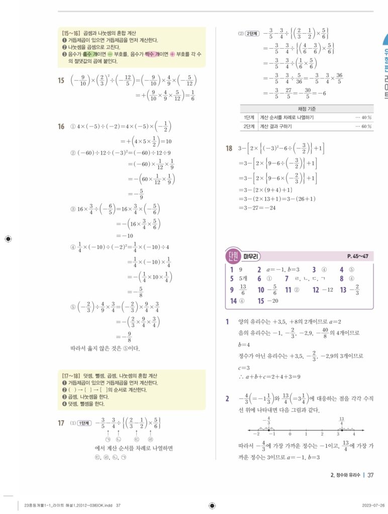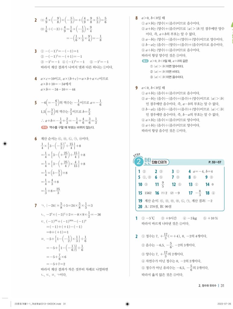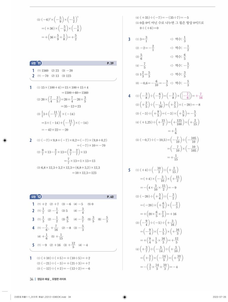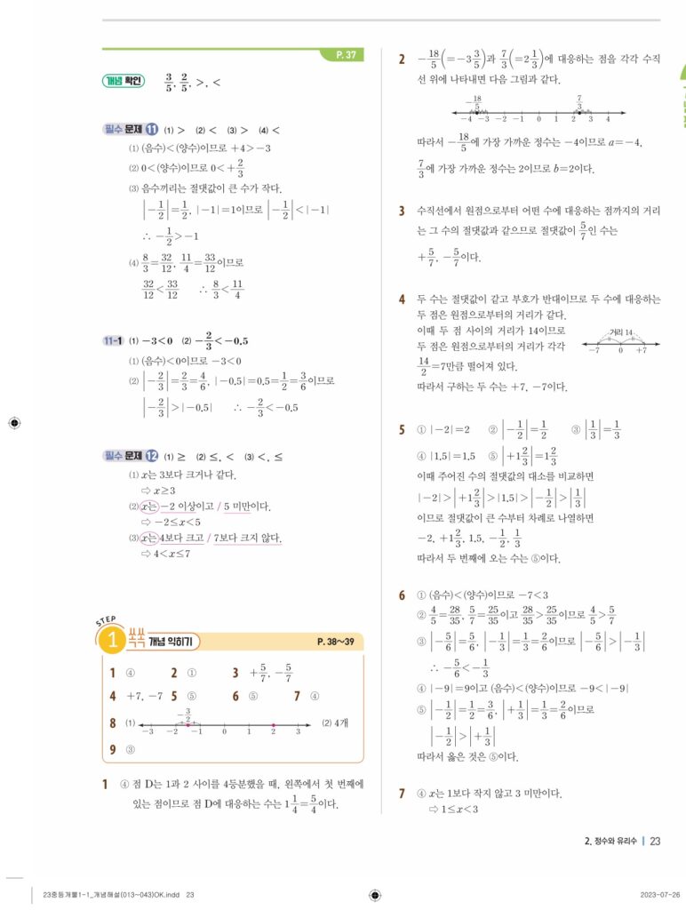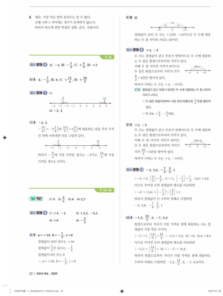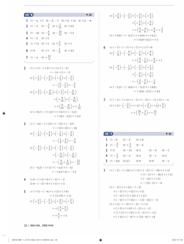 개념플러스유형라이트중1-1답지 02 정수와유리수(p30-p60)