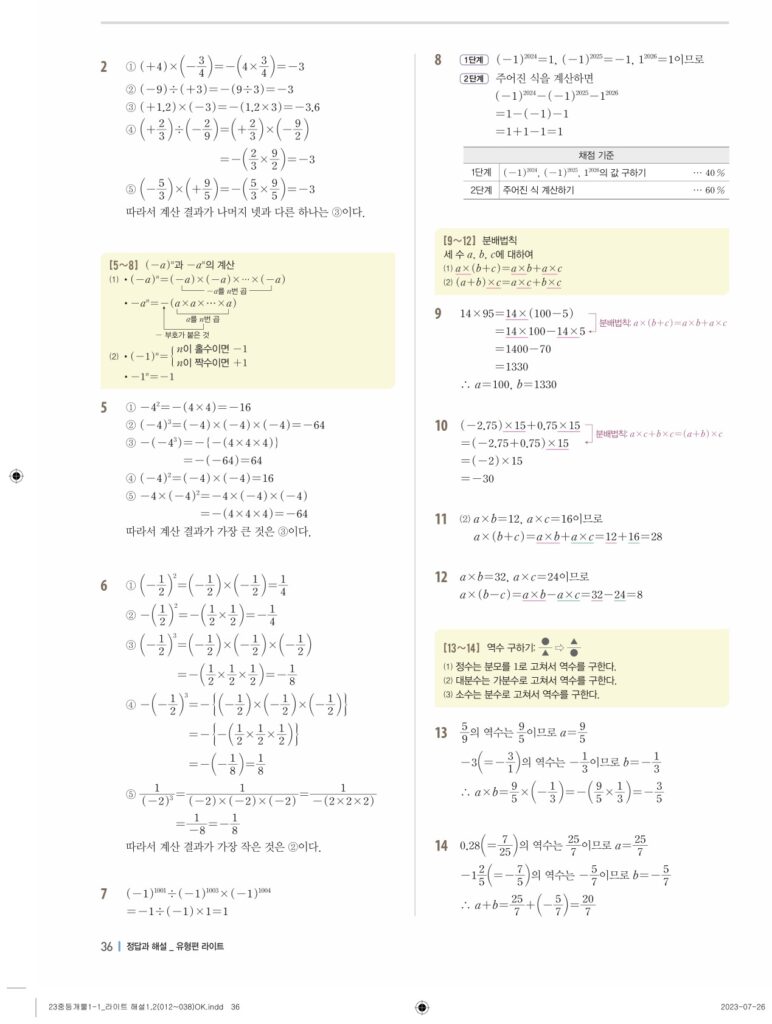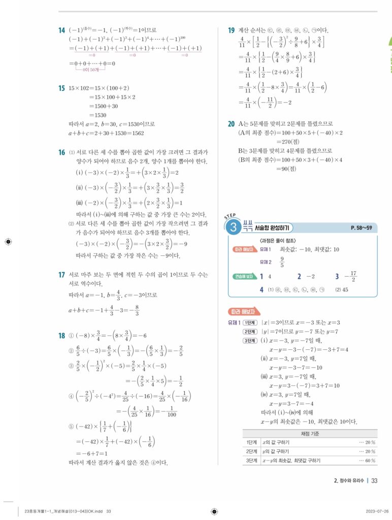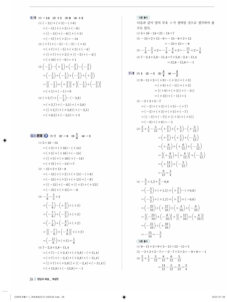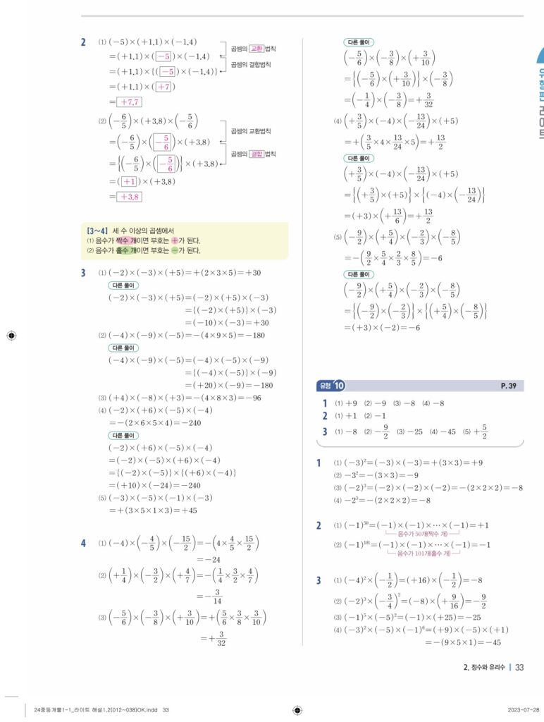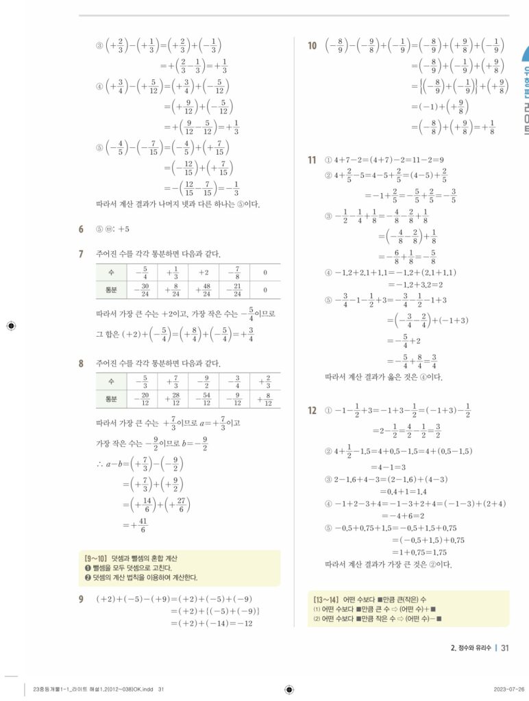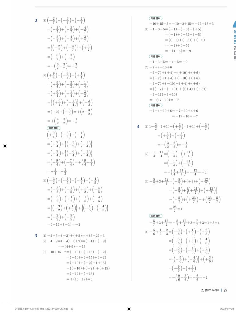 개념플러스유형라이트중1-1답지 02 정수와유리수(p30-p60)