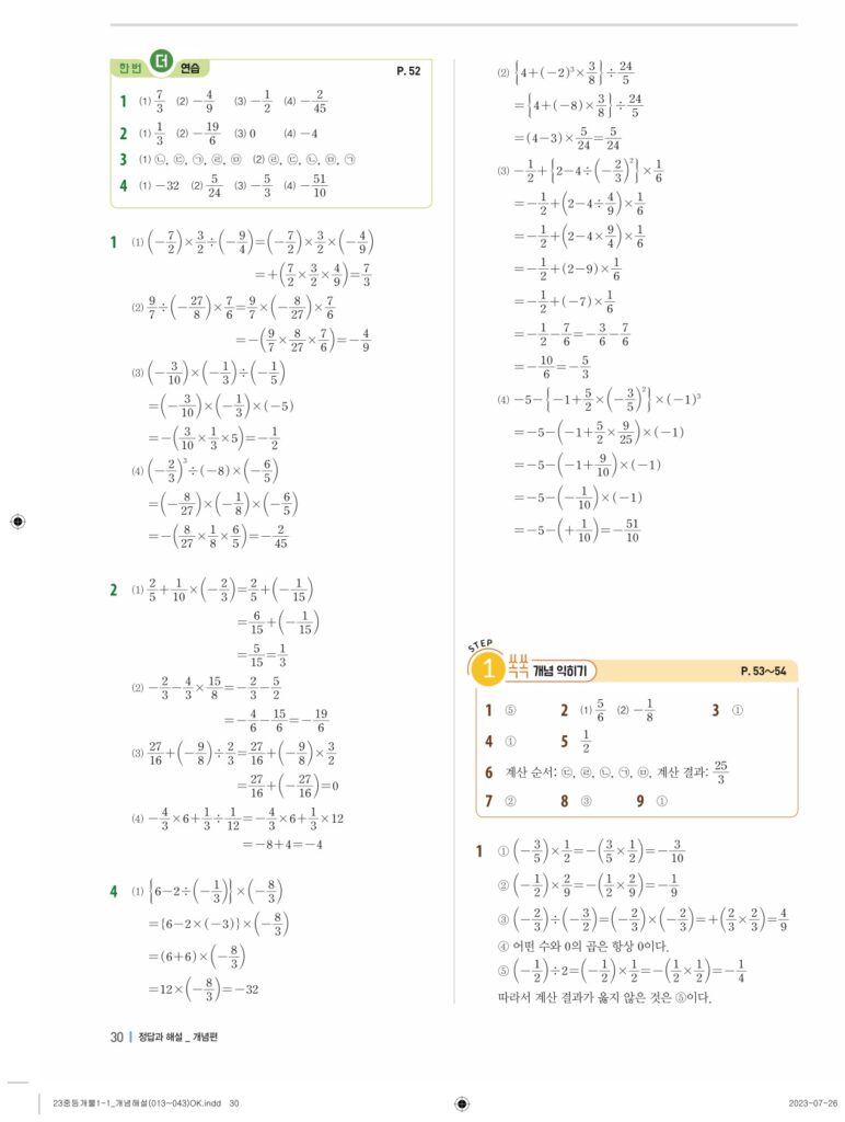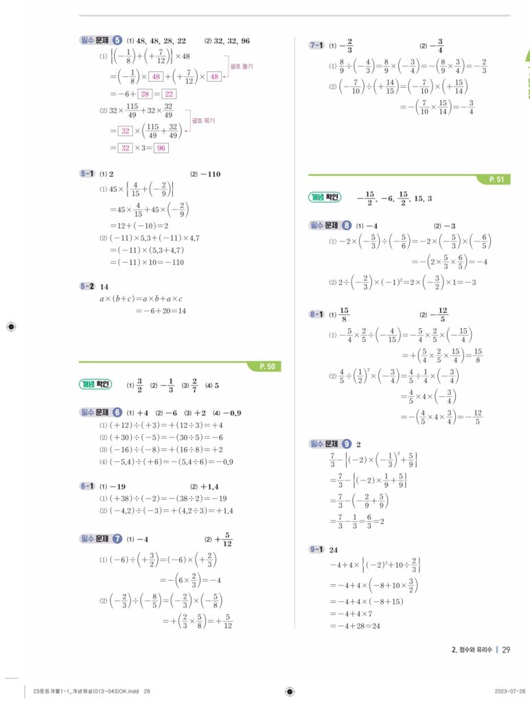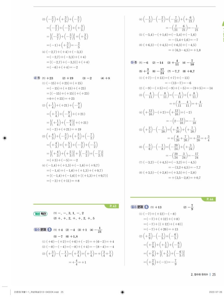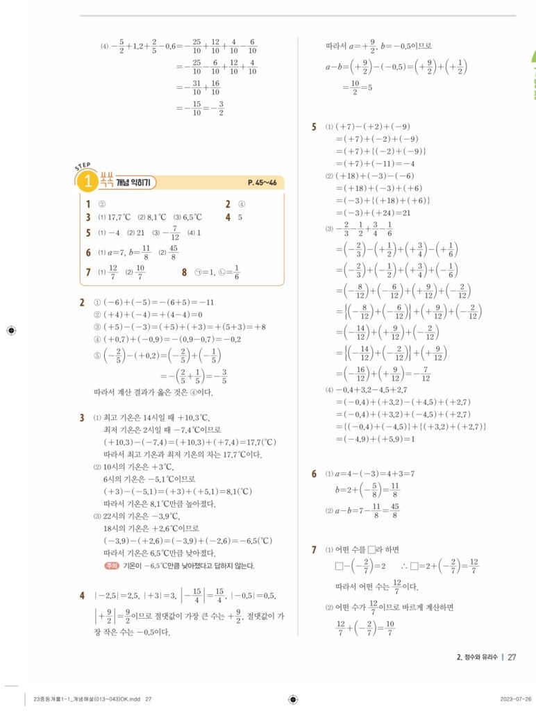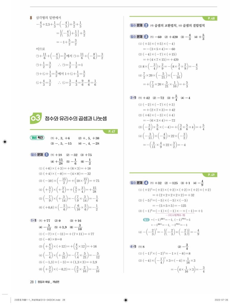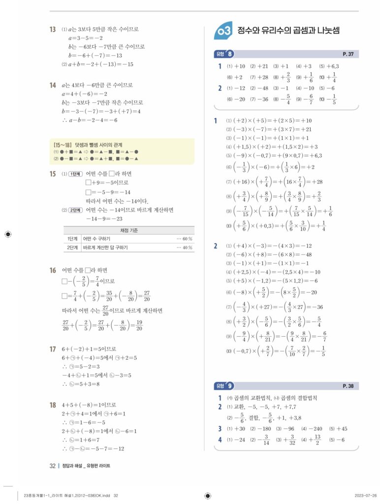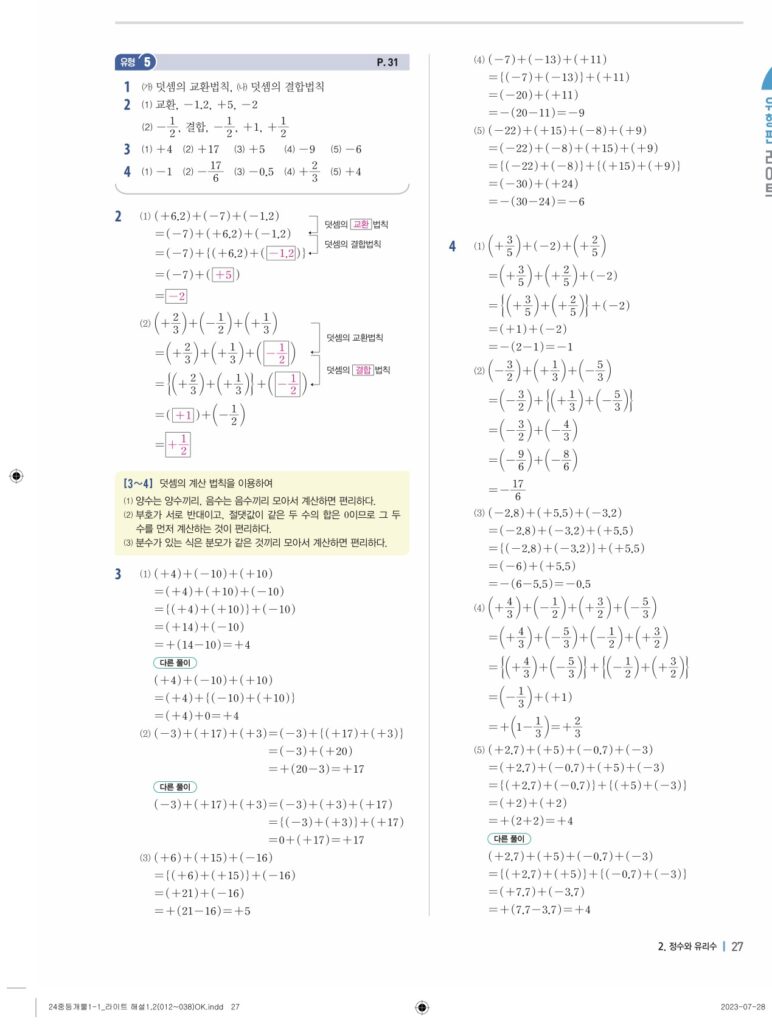 개념플러스유형라이트중1-1답지 02 정수와유리수(p30-p60)