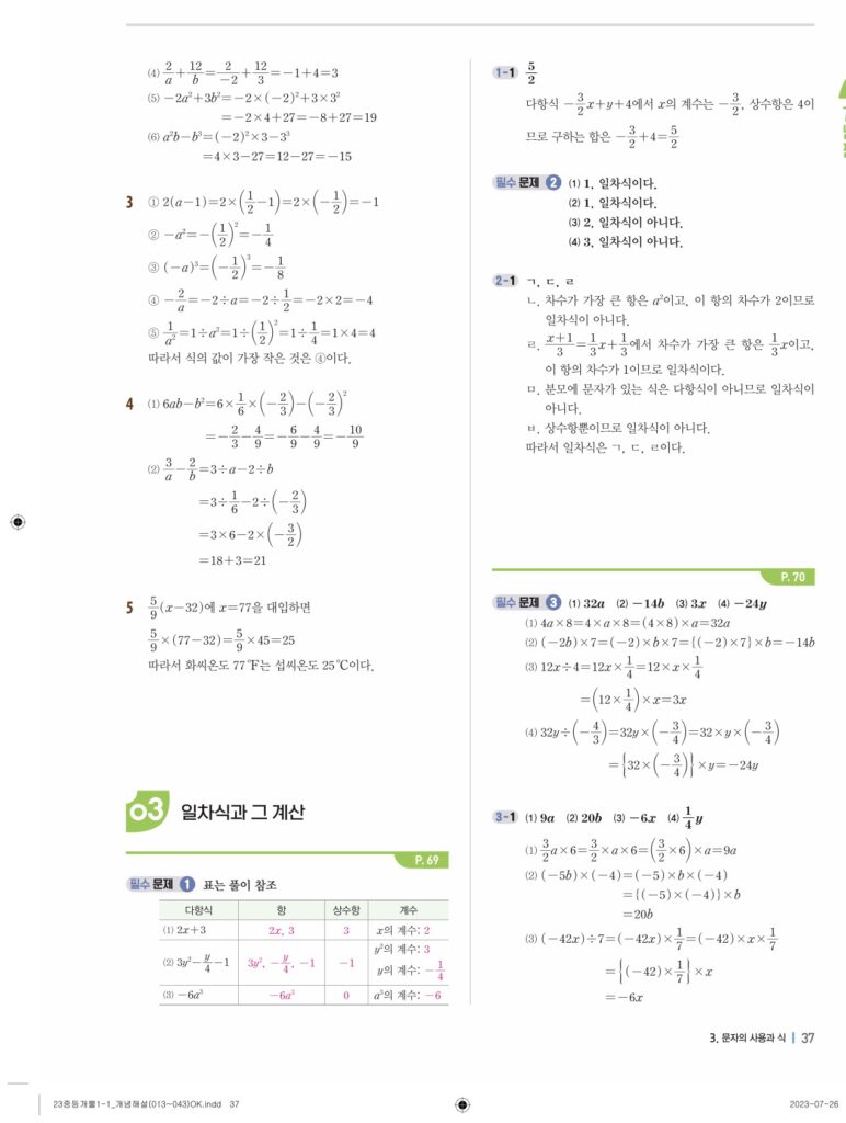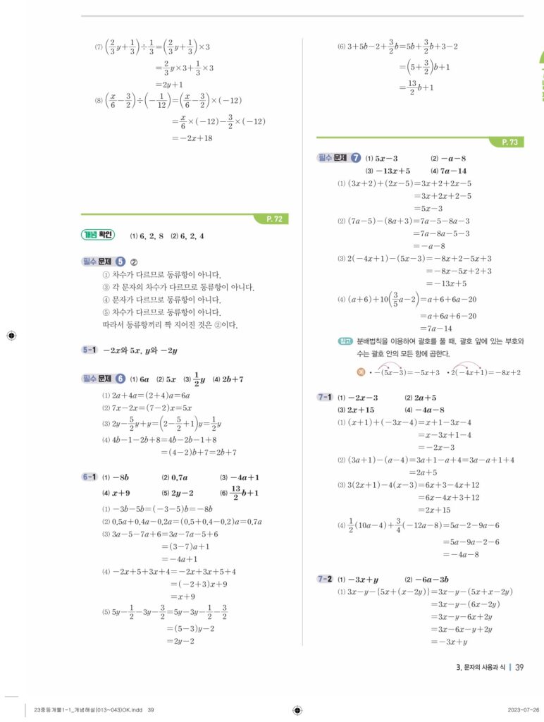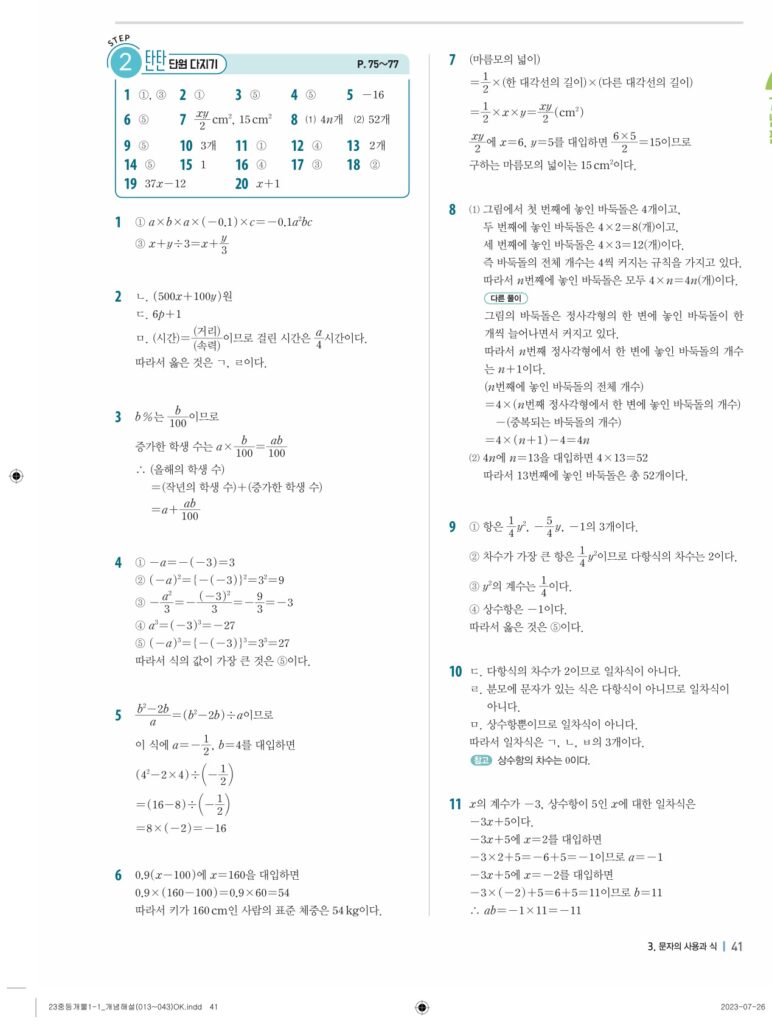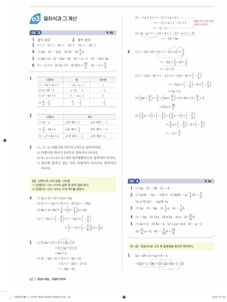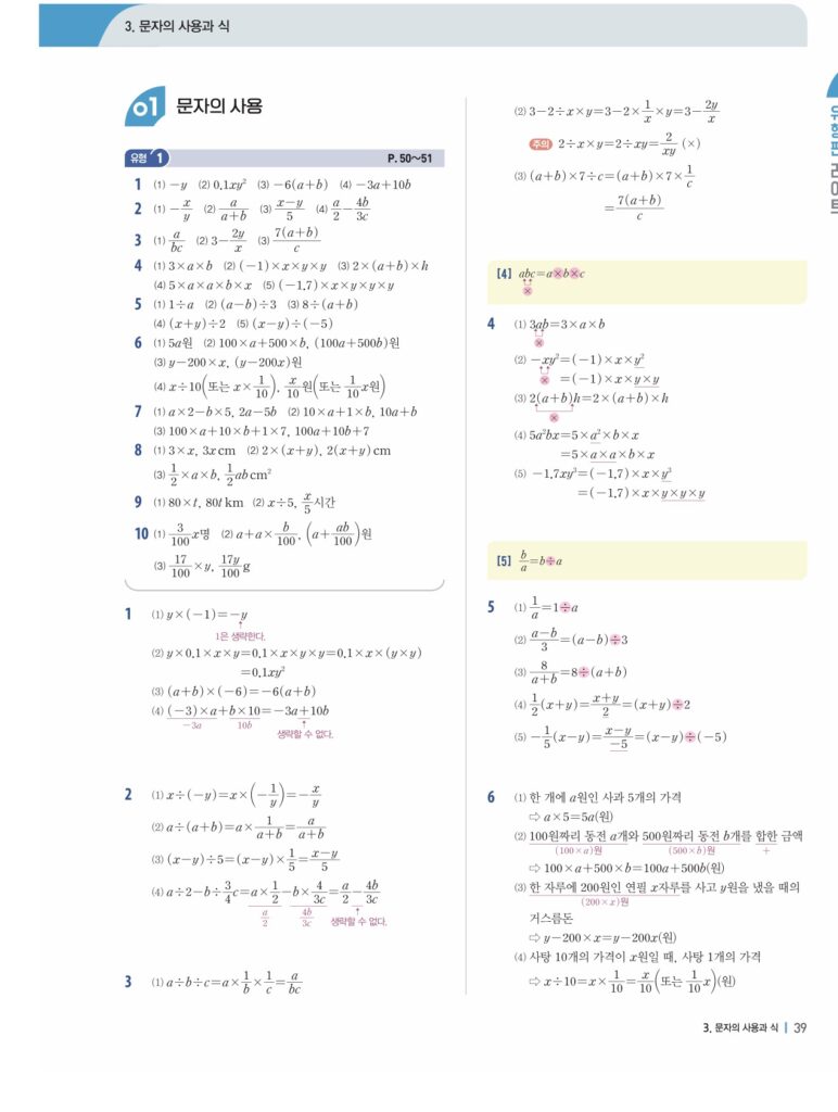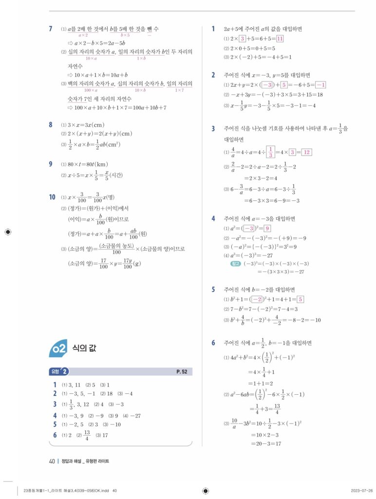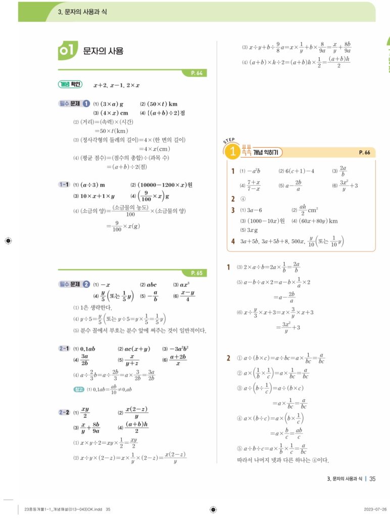 개념플러스유형라이트중1-1답지 03 문자의 사용과 식(p64-p80)
