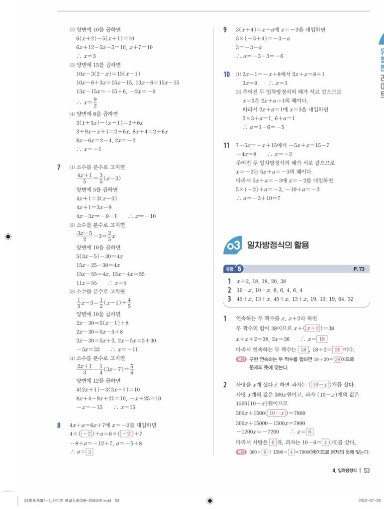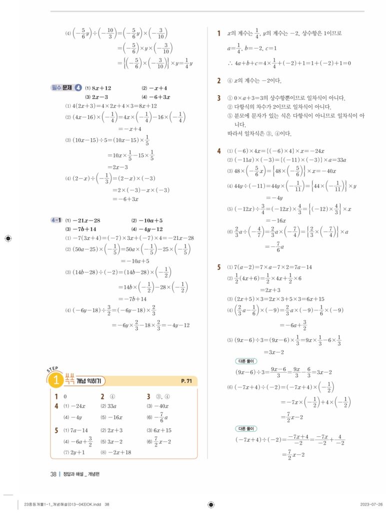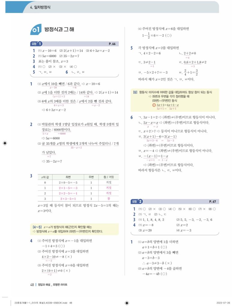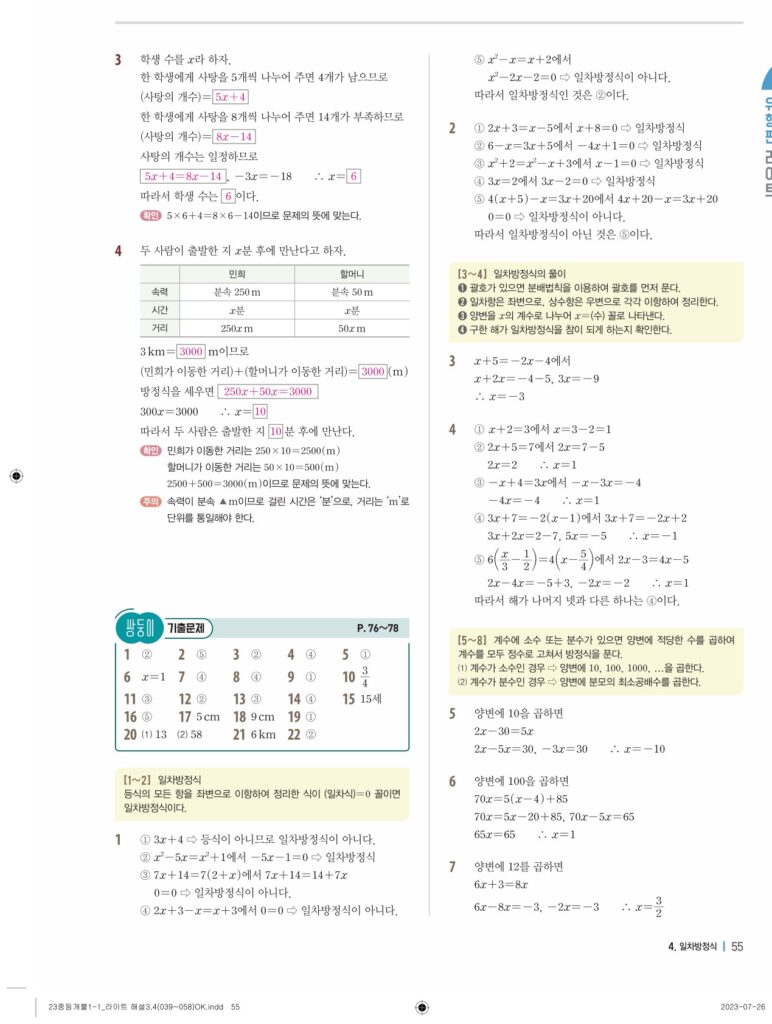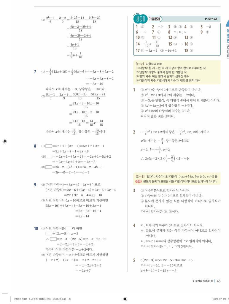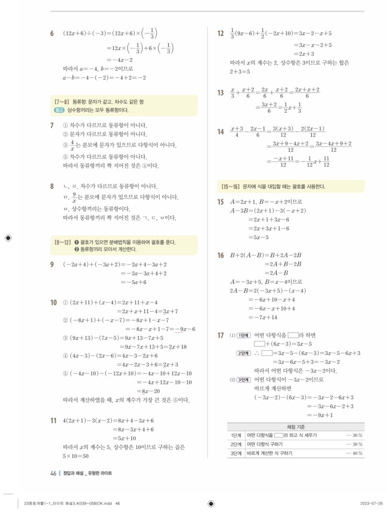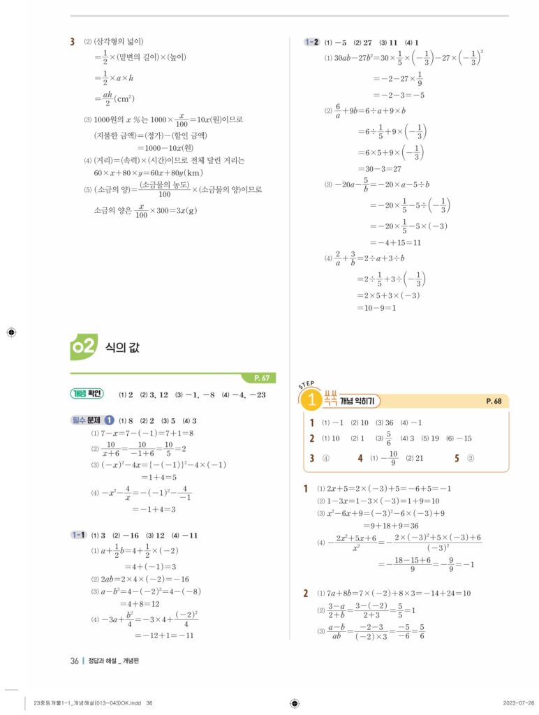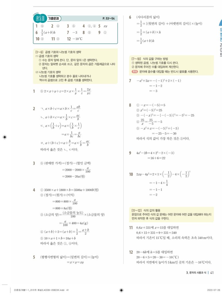 개념플러스유형라이트중1-1답지 03 문자의 사용과 식(p64-p80)