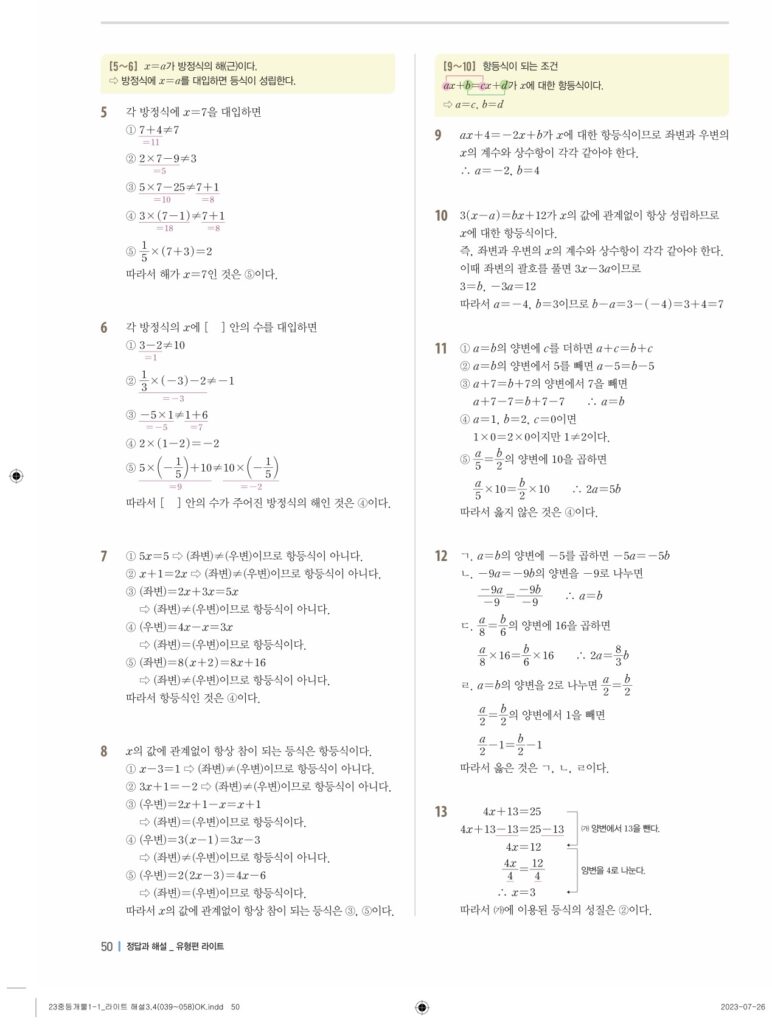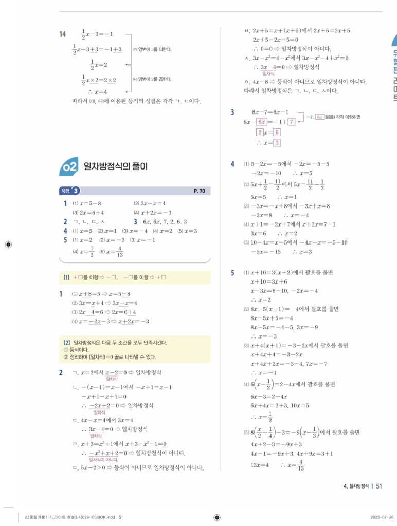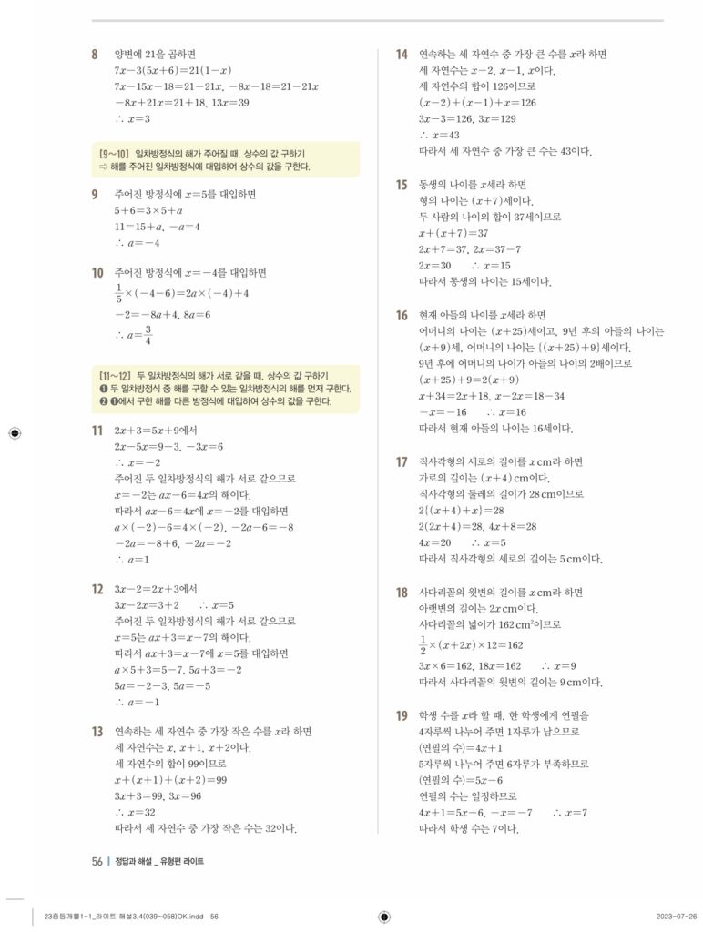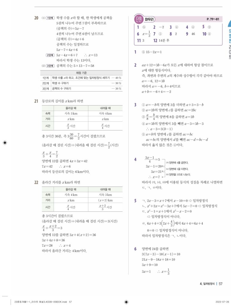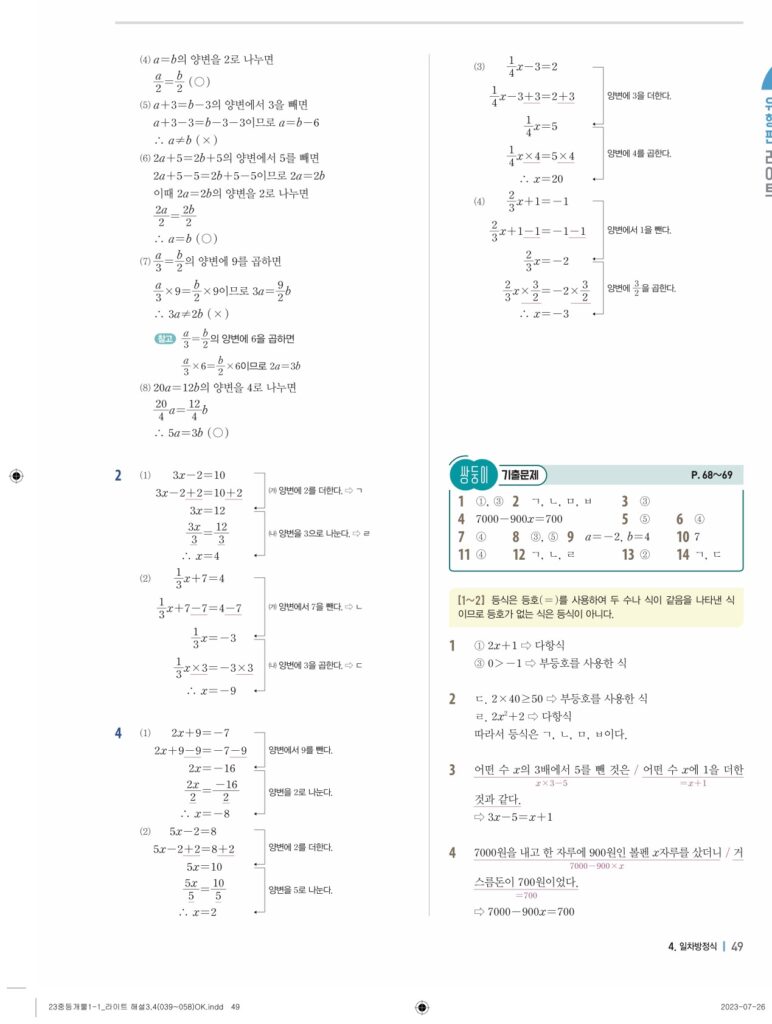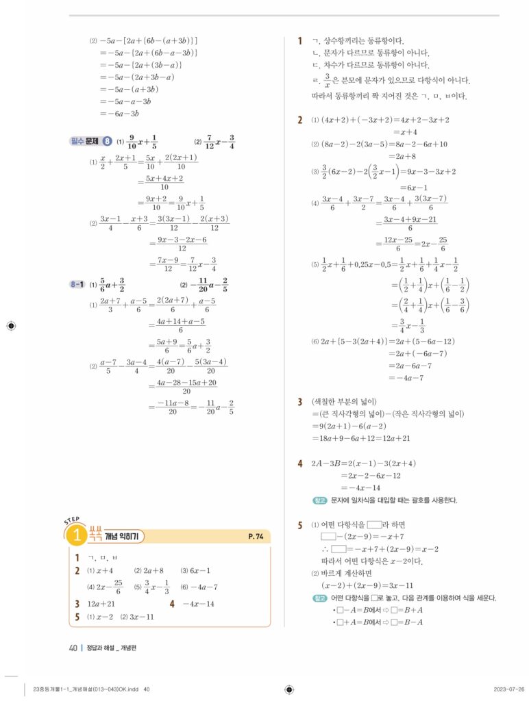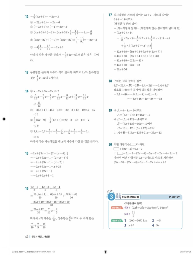 개념플러스유형라이트중1-1답지 03 문자의 사용과 식(p64-p80)