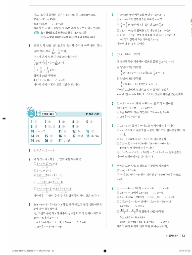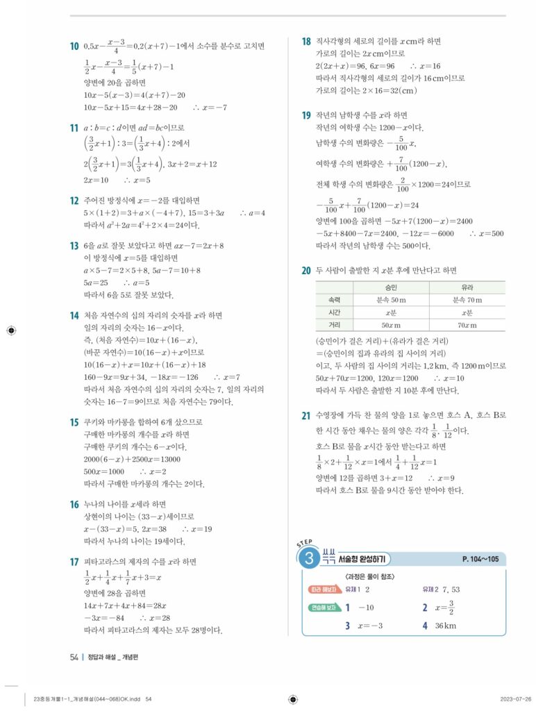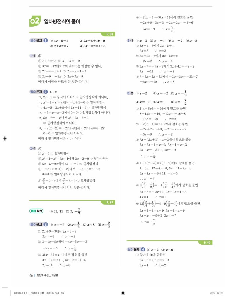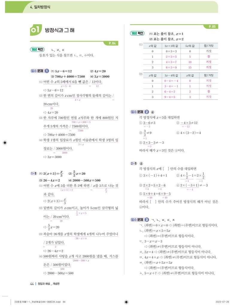 개념플러스유형라이트중1-1답지 04 일차방정식(p84-p106)