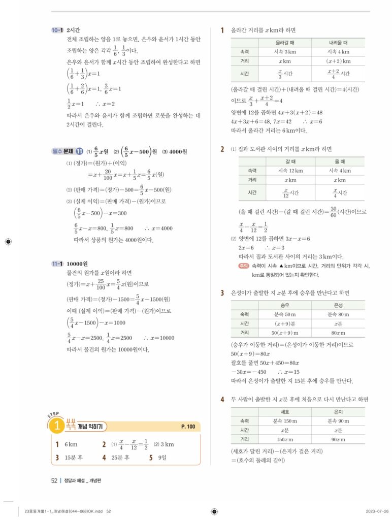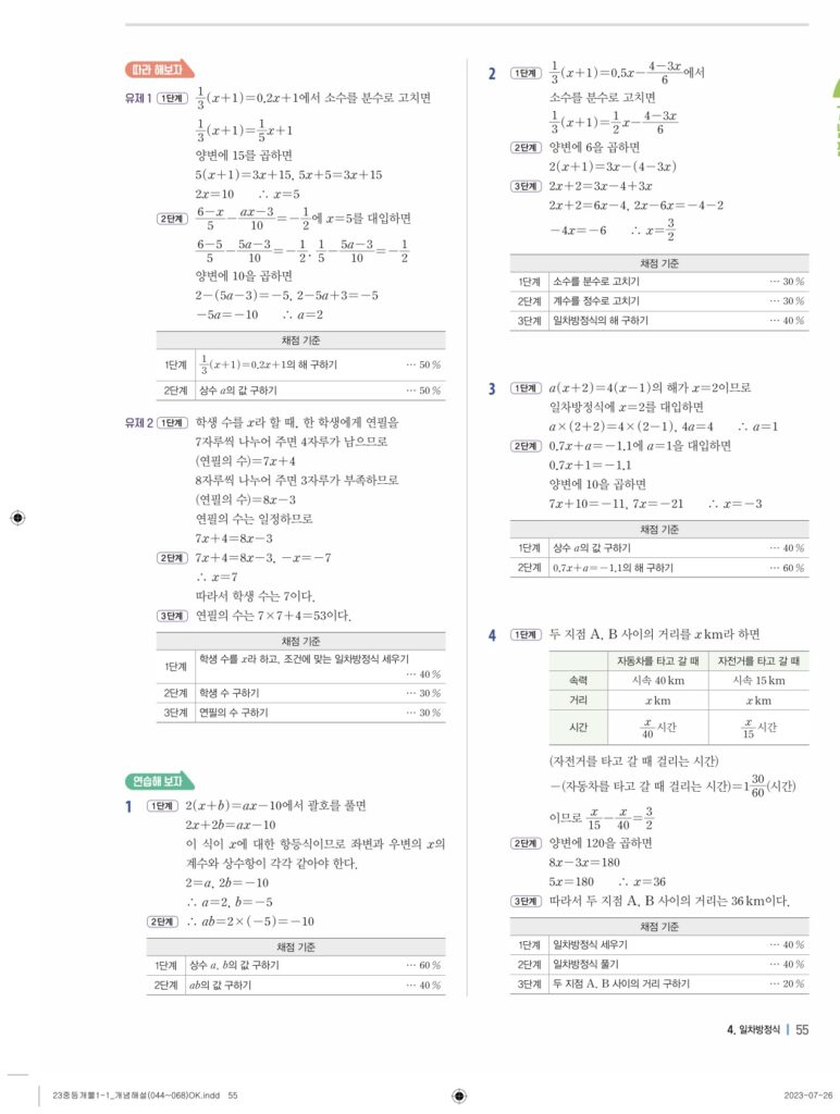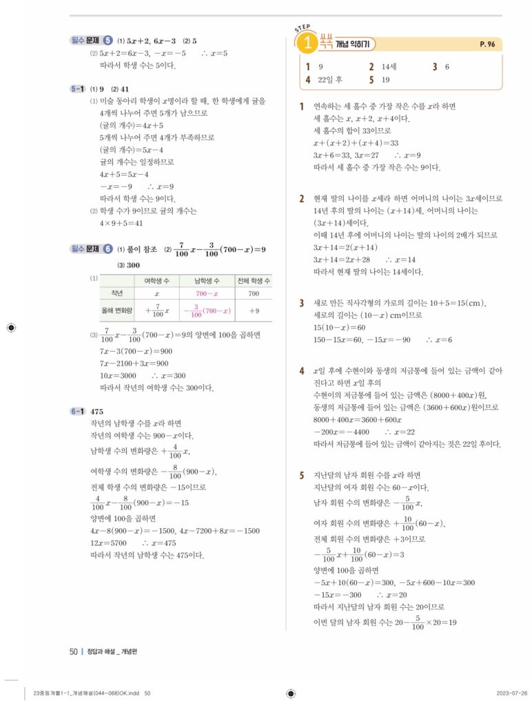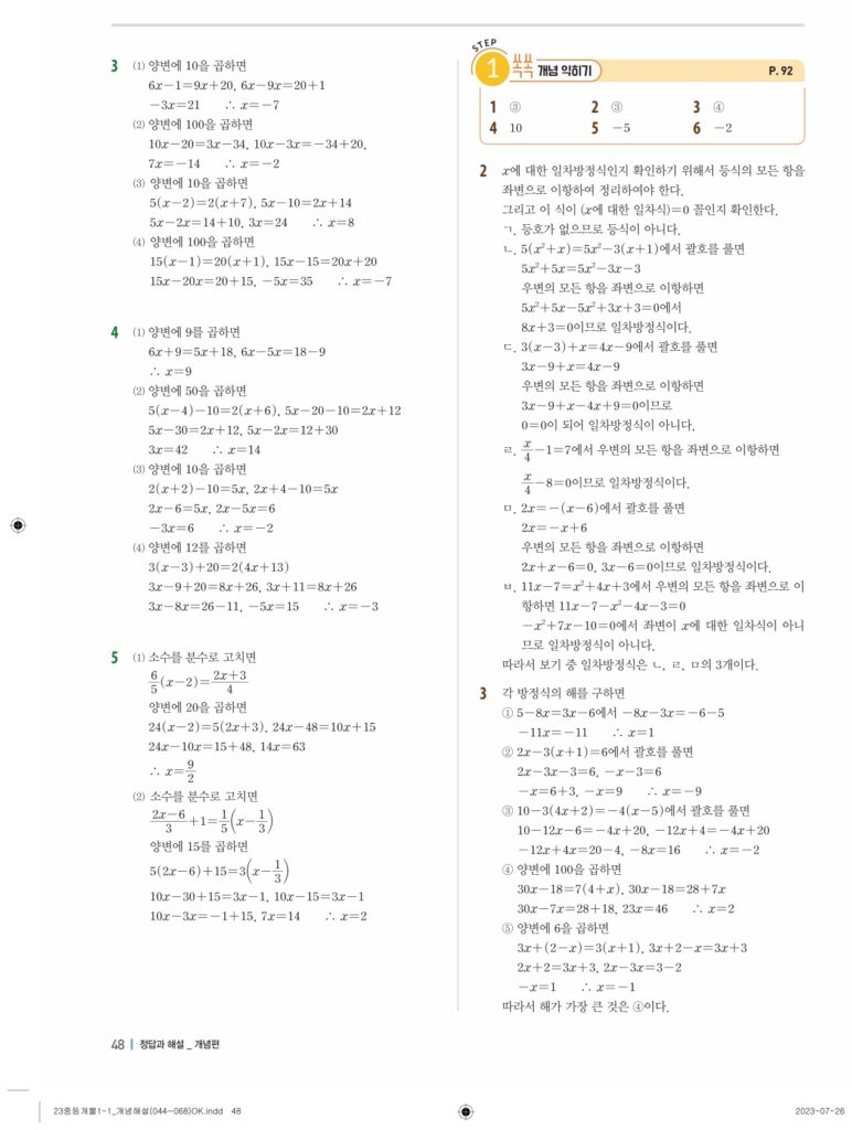 개념플러스유형라이트중1-1답지 04 일차방정식(p84-p106)